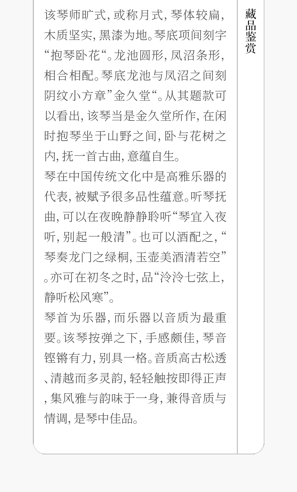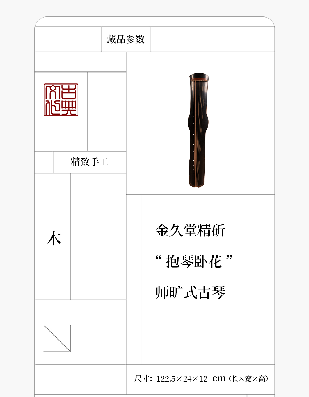 金久堂精斫“抱琴卧花”师旷式古琴