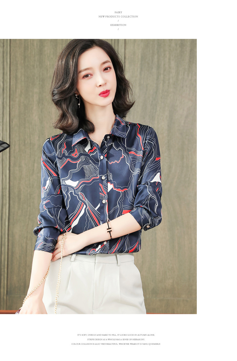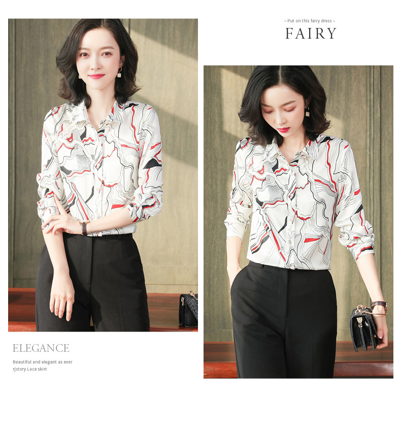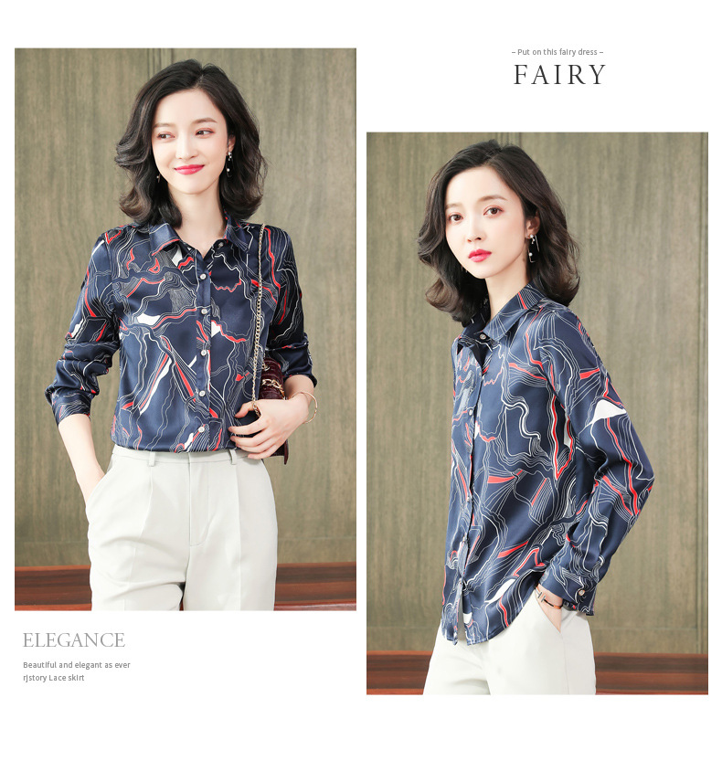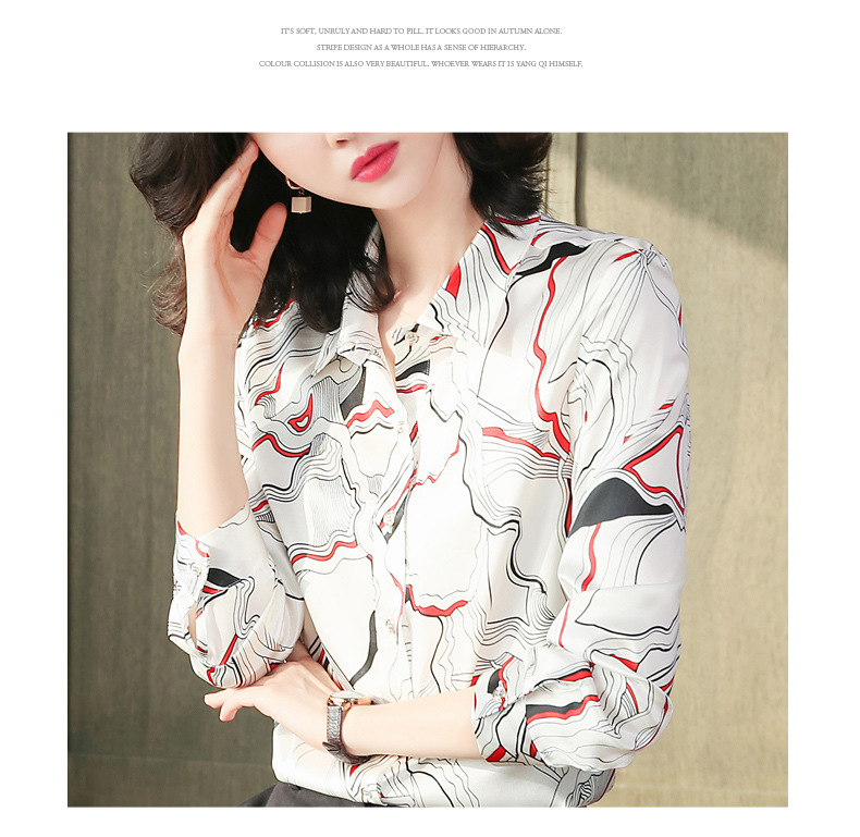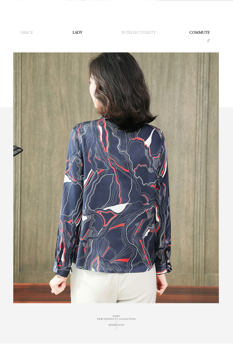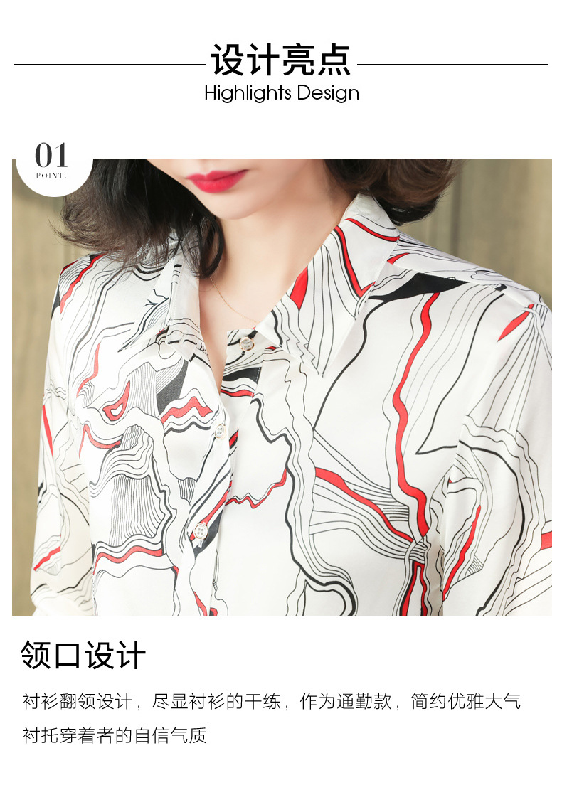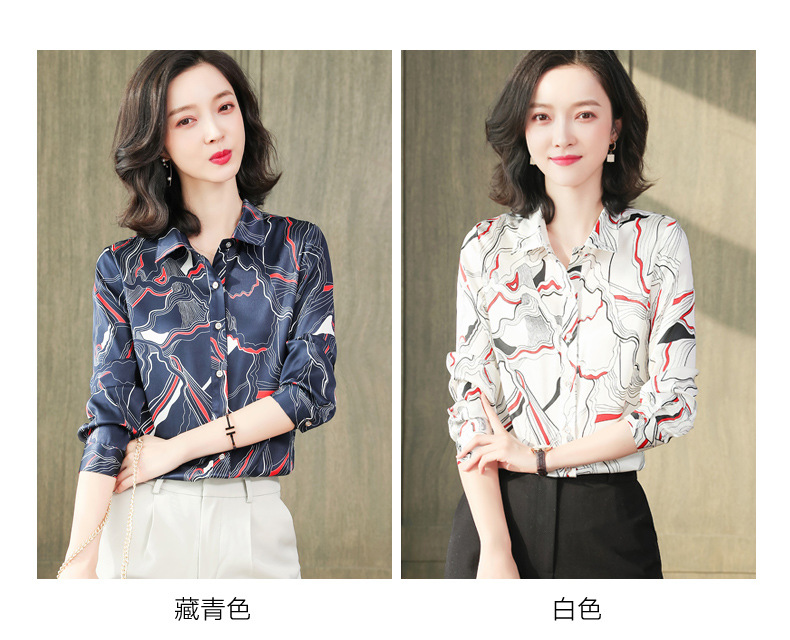 上海旗袍厂ASE-L6605新品时尚气质印花真丝衬衫打底衬衣翻领小衫