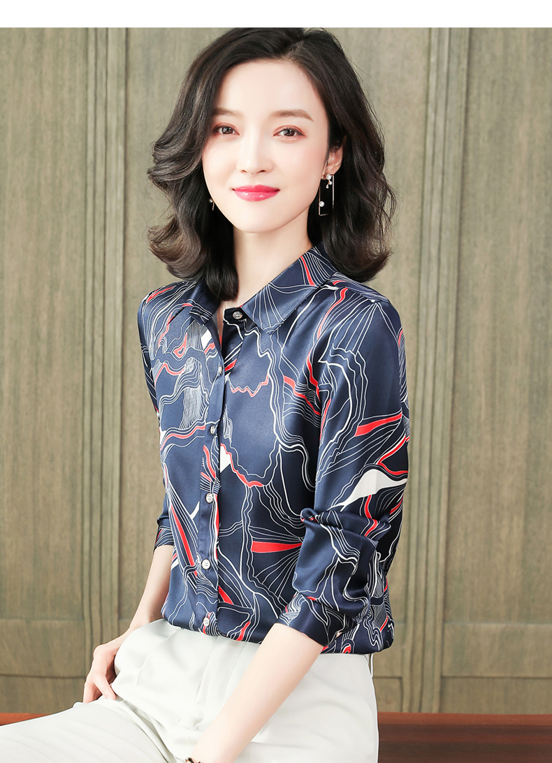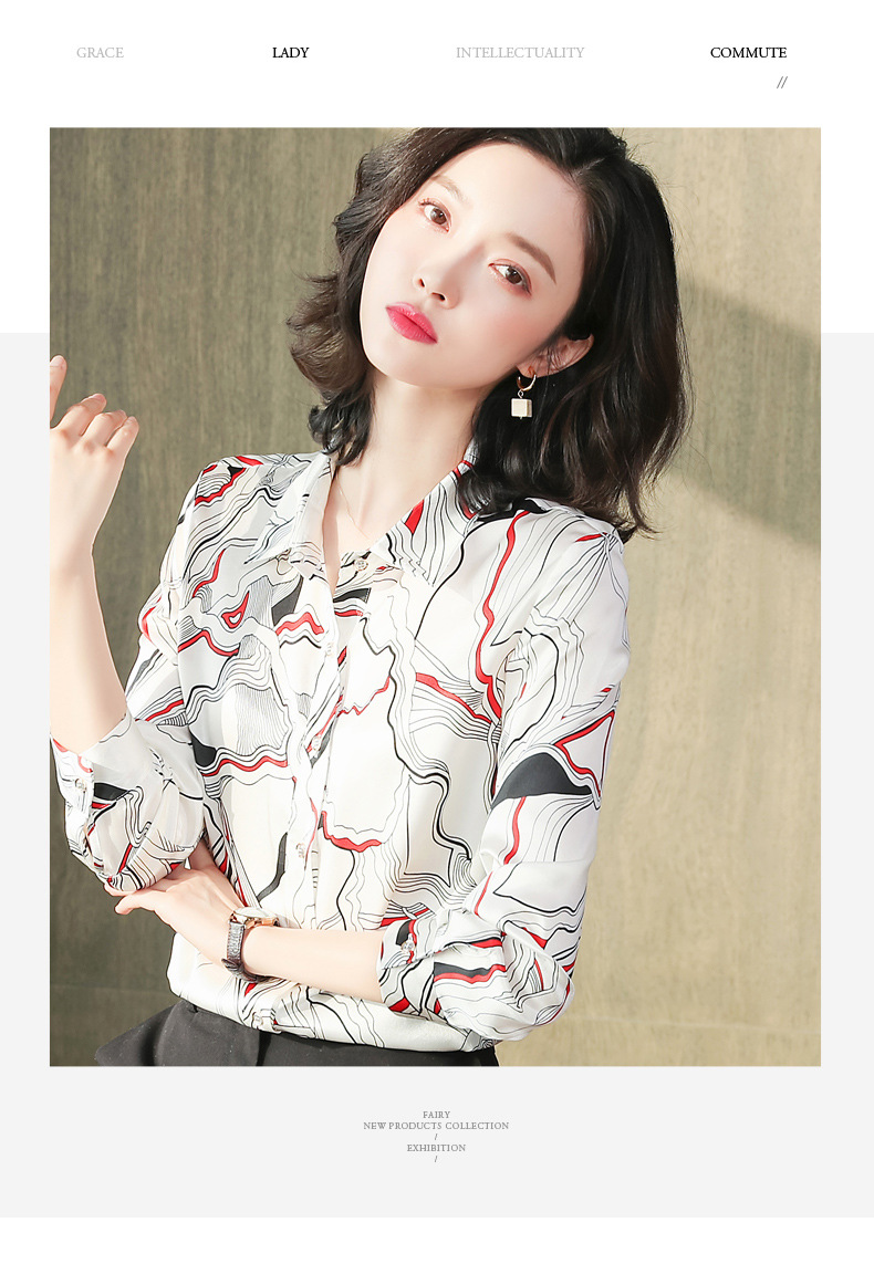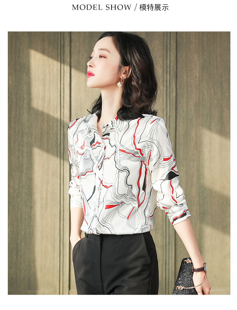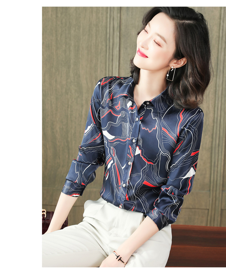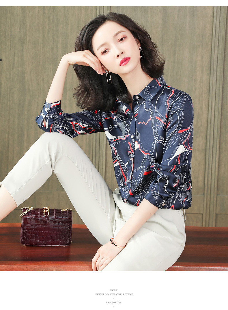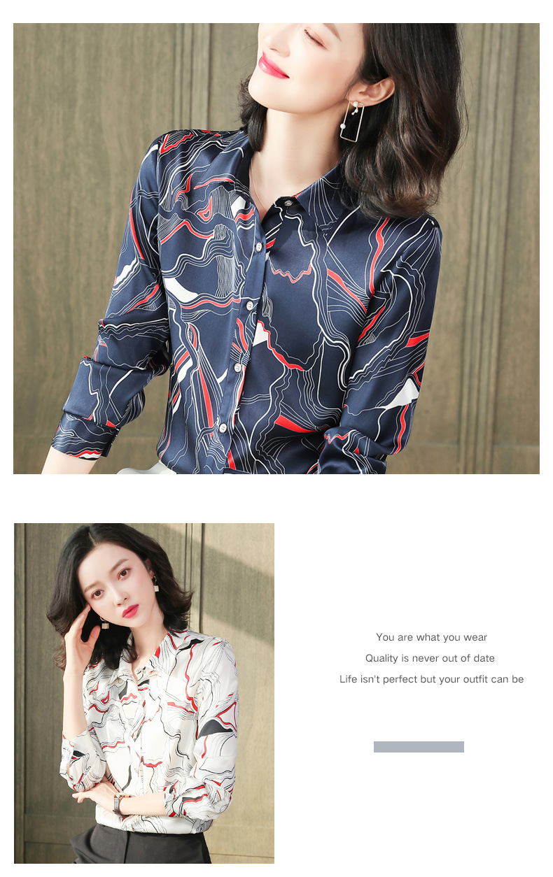 上海旗袍厂ASE-L6605新品时尚气质印花真丝衬衫打底衬衣翻领小衫