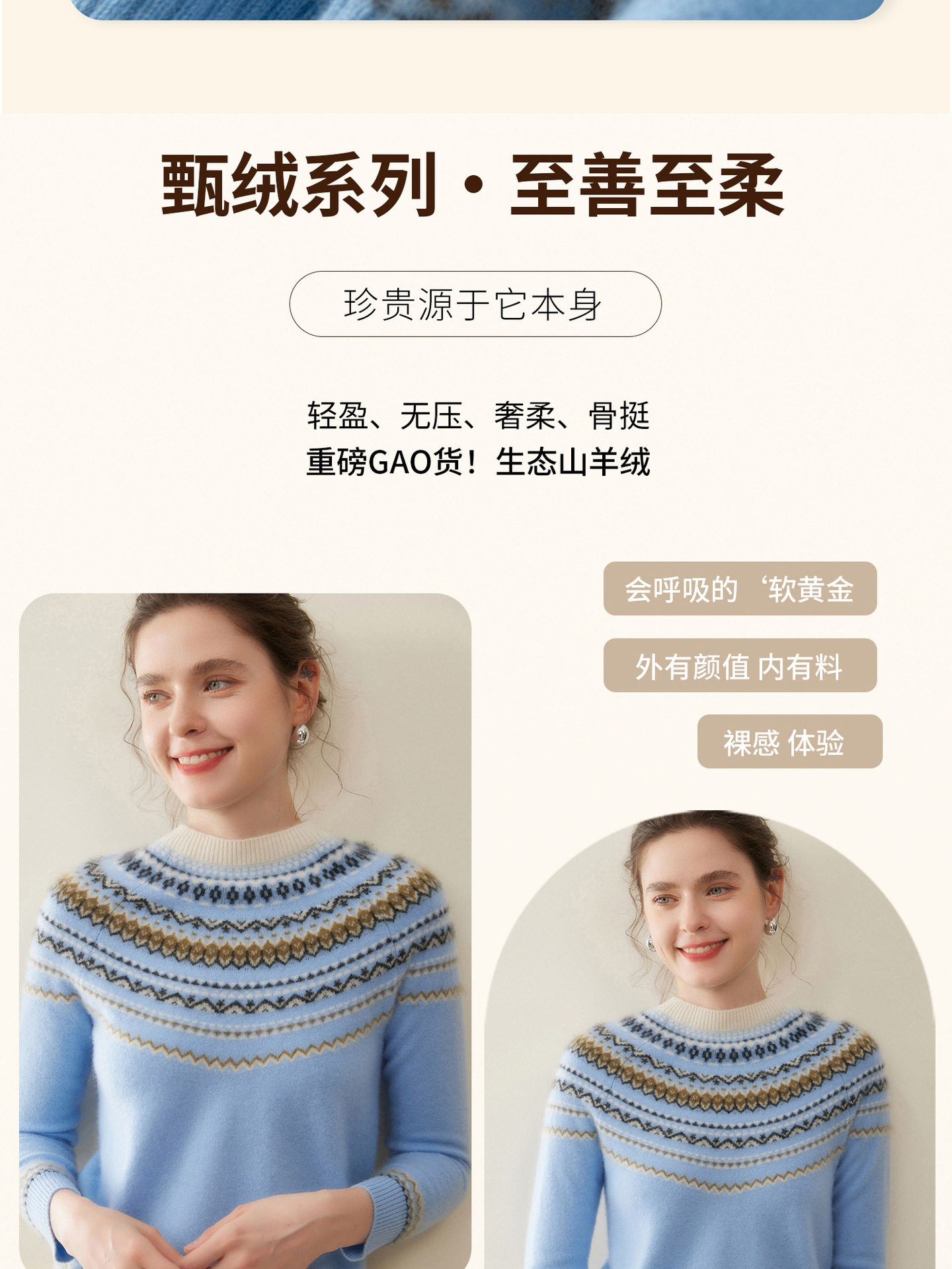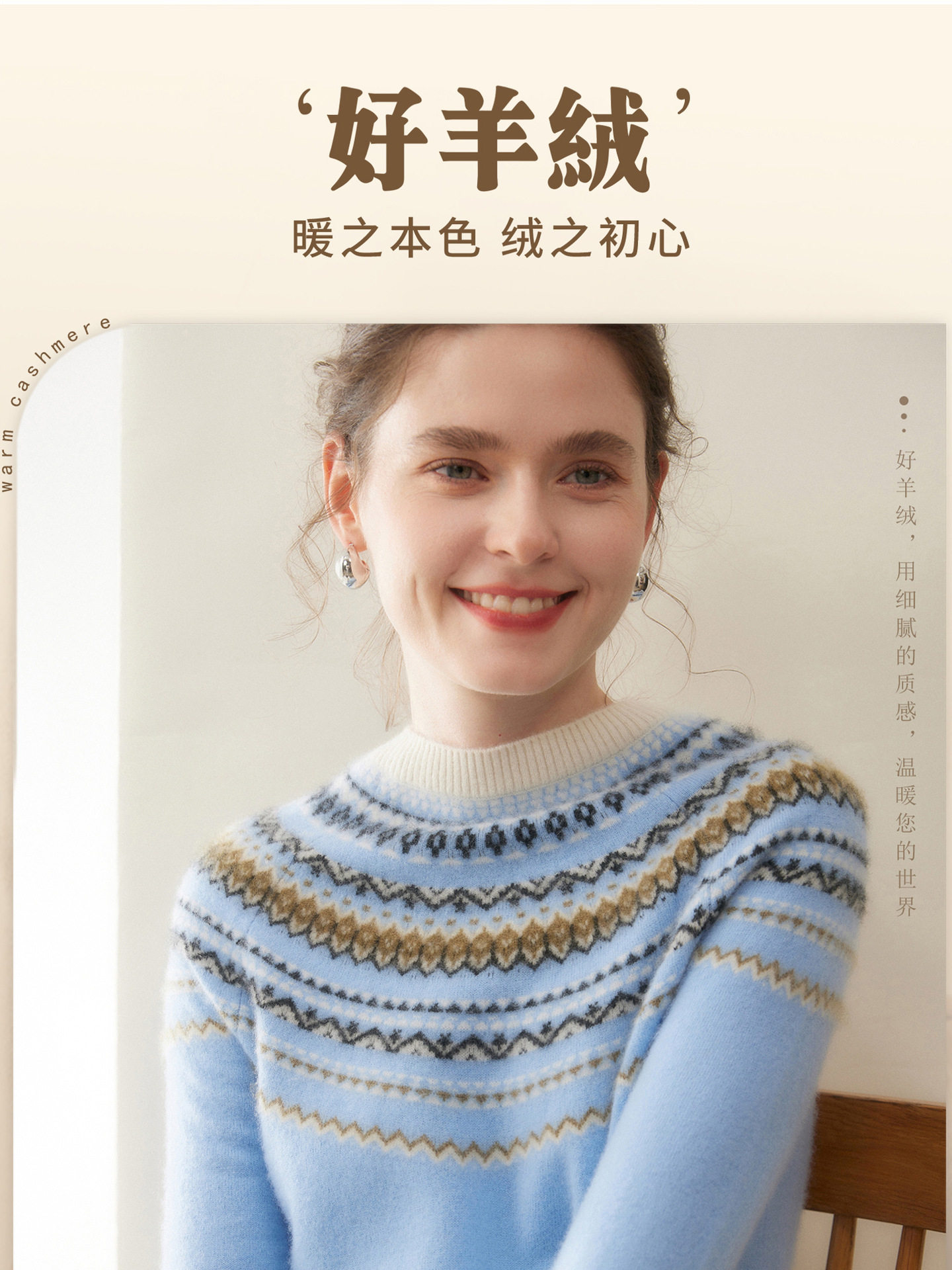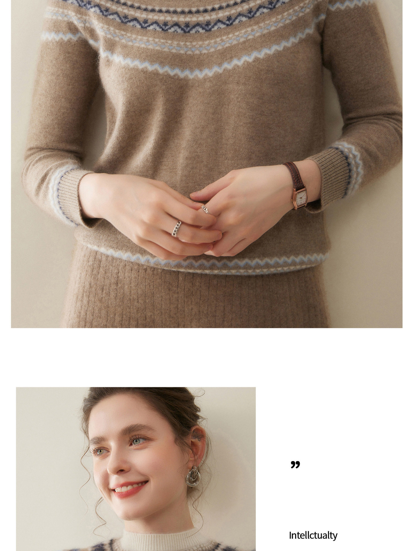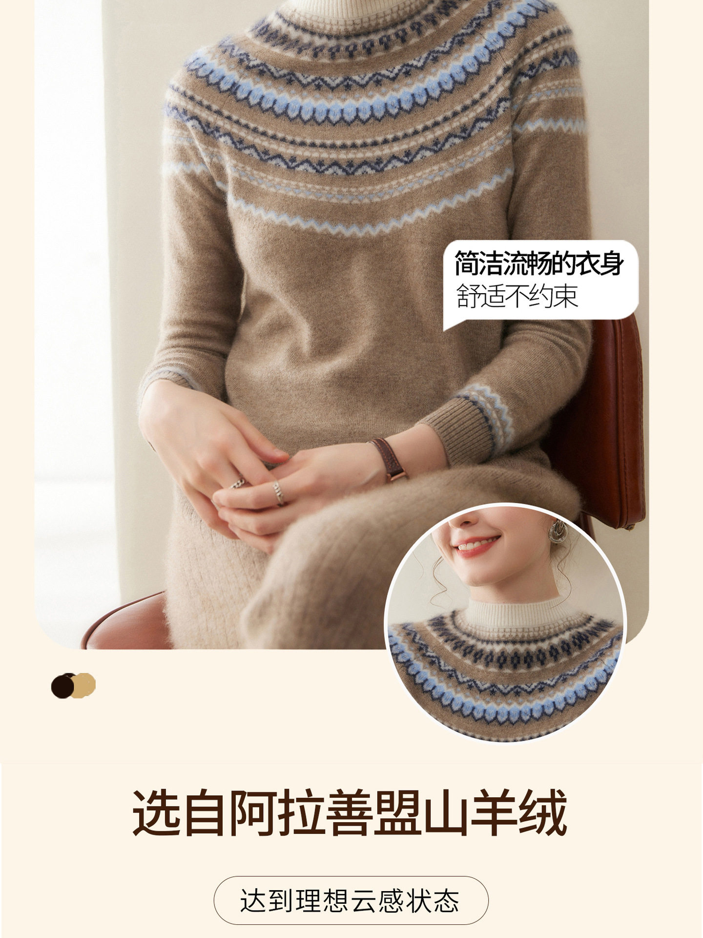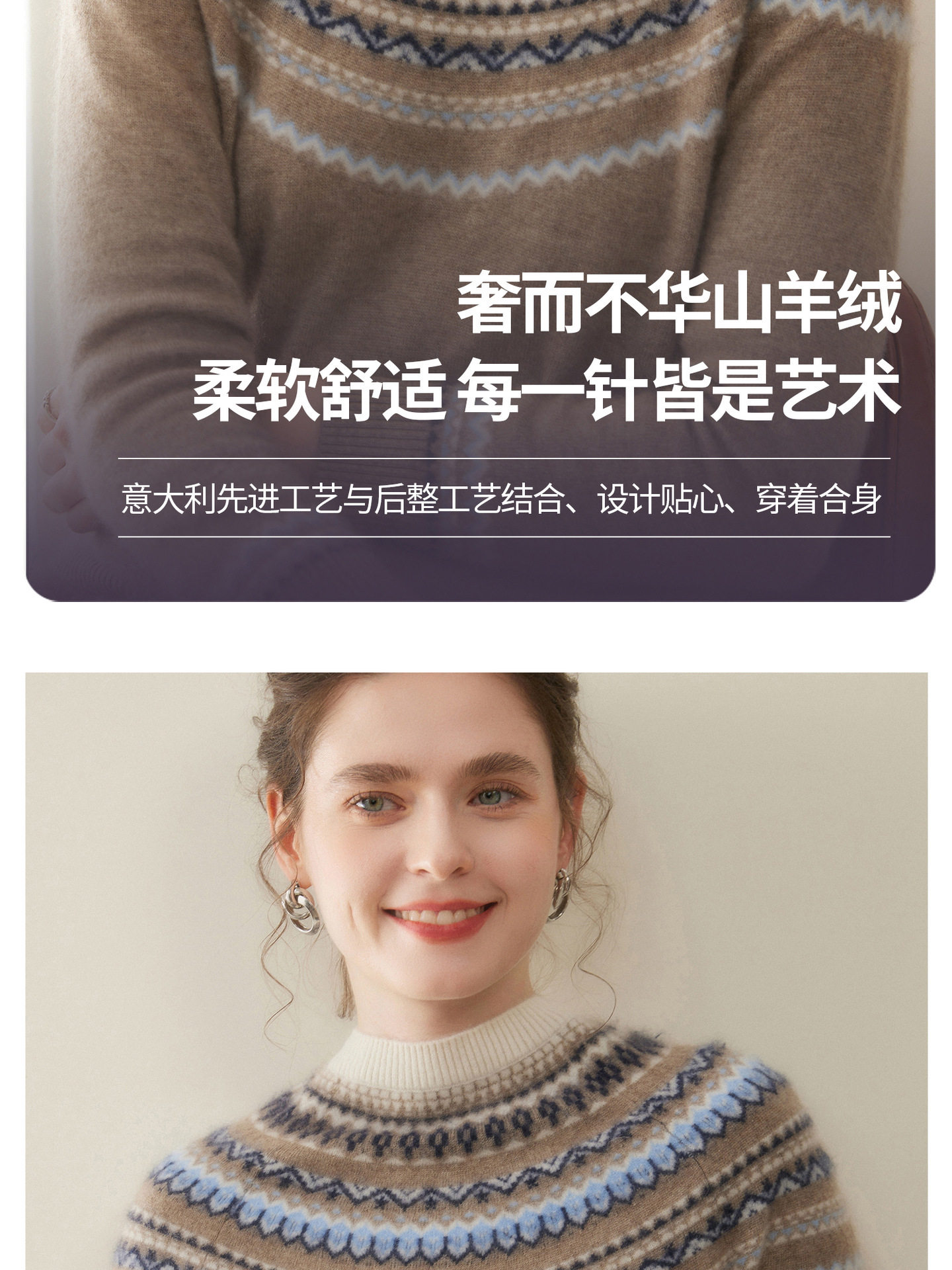 「高货rig」全新升级【铂金会员441/天猫589/差价148】(54015)洛诗琳费尔岛提花羊绒衫2025秋冬新款气质半高领套头毛衣