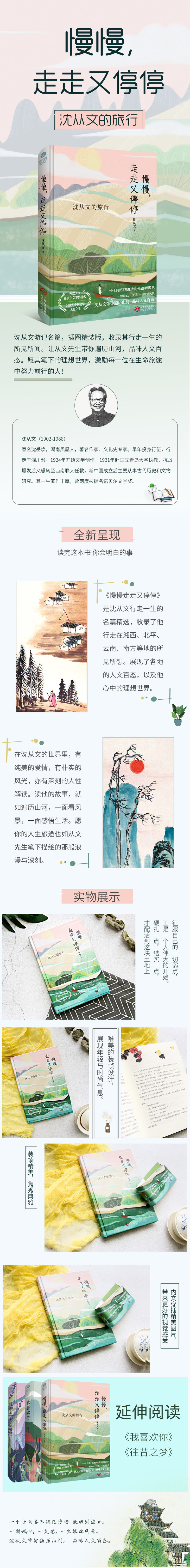 ★推荐1:《慢慢走走又停停》是沈从文行走一生的名篇,收录了他行走在湘西、北平、云南、南方等地的所见所想。展现了各地的人文百态,以及他心中的理想世界。