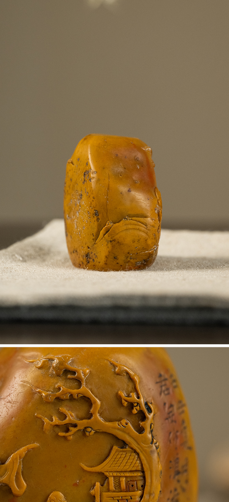 清 青金石嵌绿松石莲花盖盒(红木座)