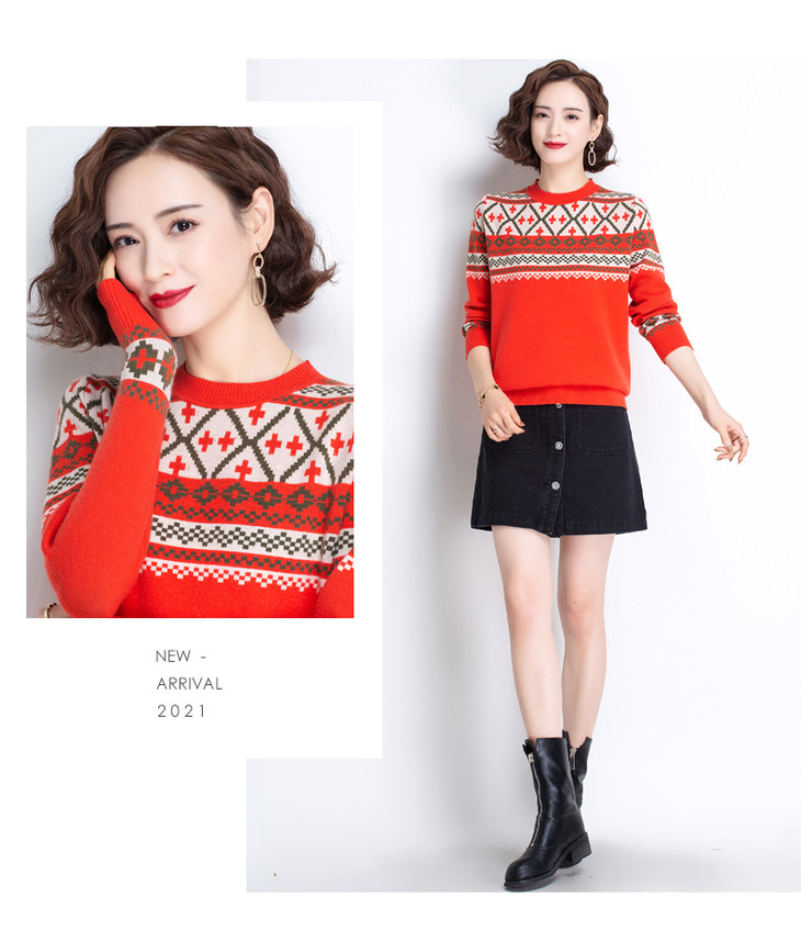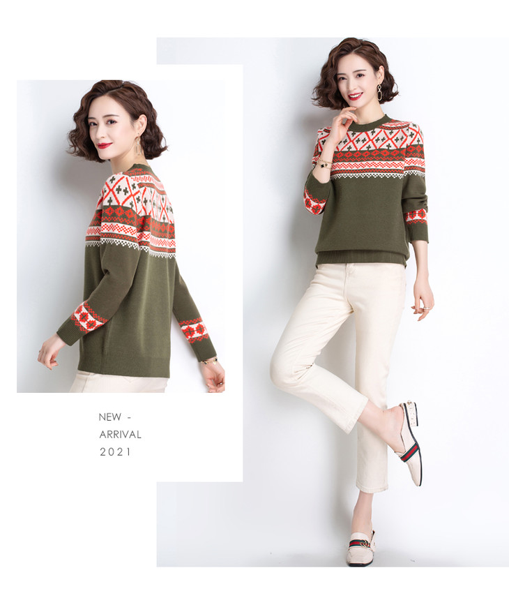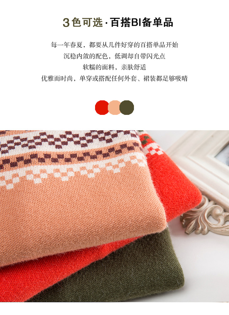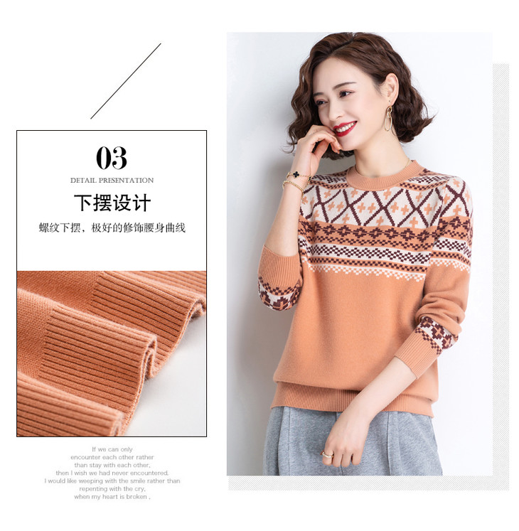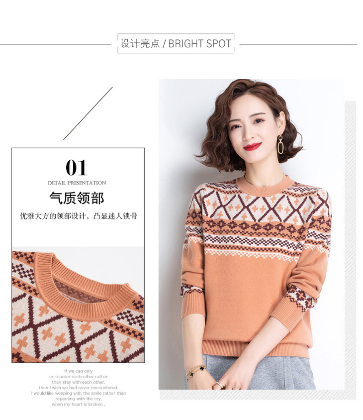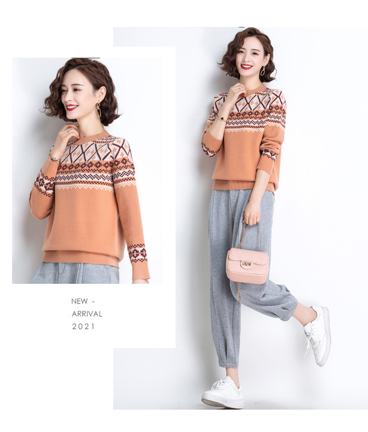 MD-B1947 圆领提花毛衣女洋气外穿2021春装新款韩版宽松短款针织羊毛衫秋冬