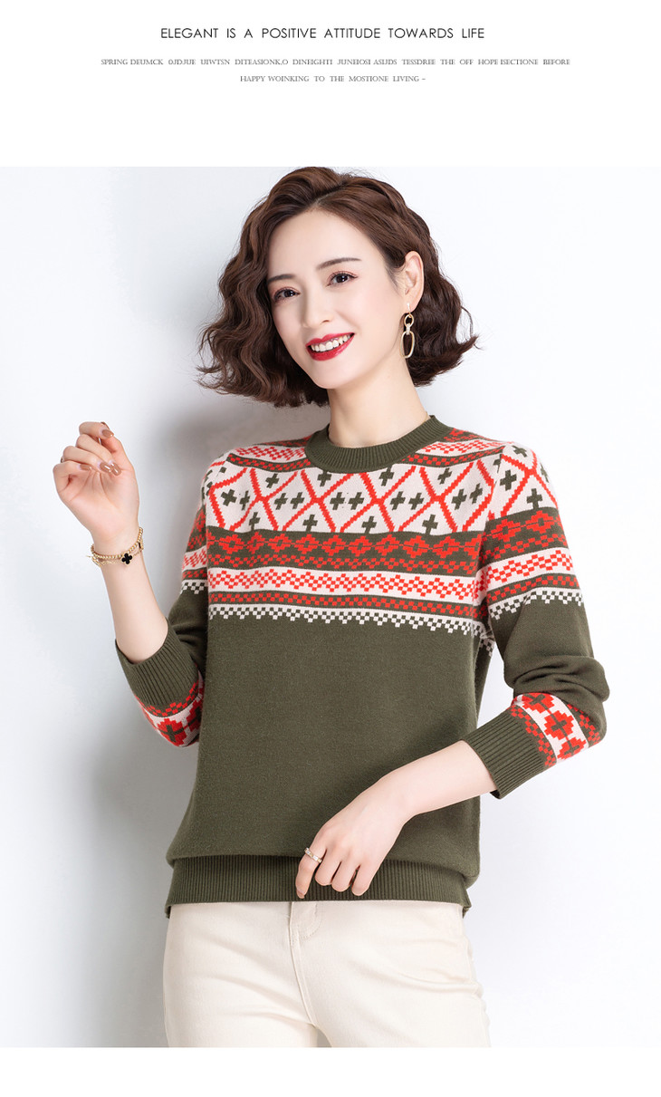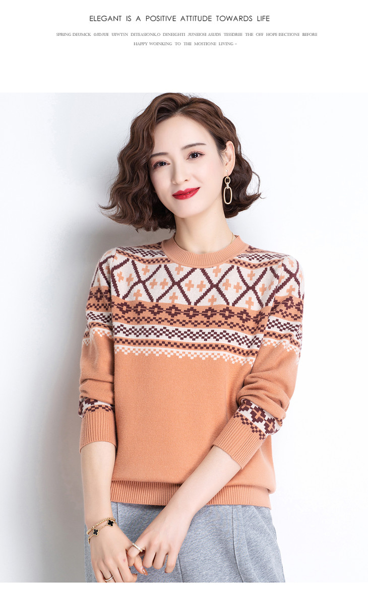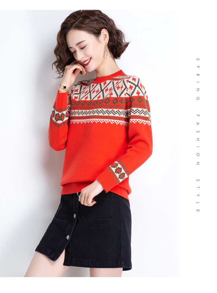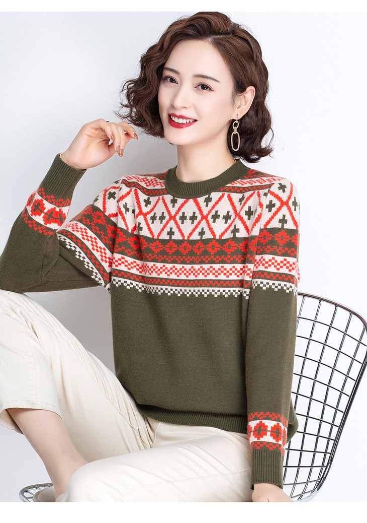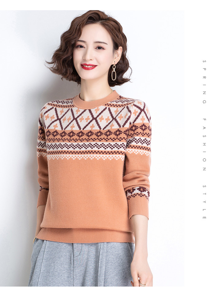MD-B1947 圆领提花毛衣女洋气外穿2021春装新款韩版宽松短款针织羊毛衫秋冬