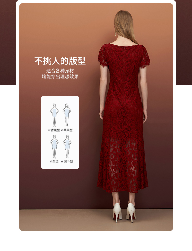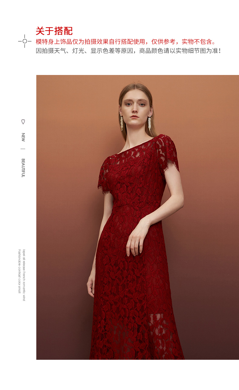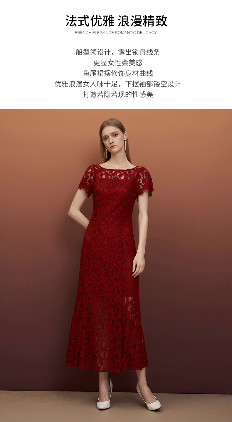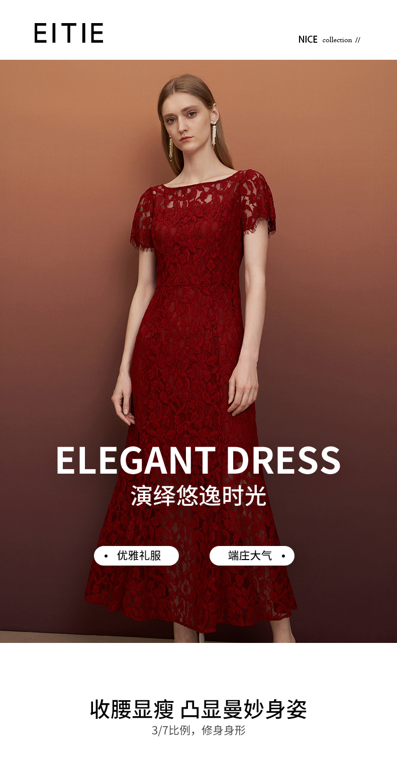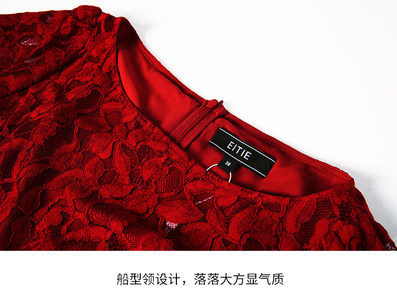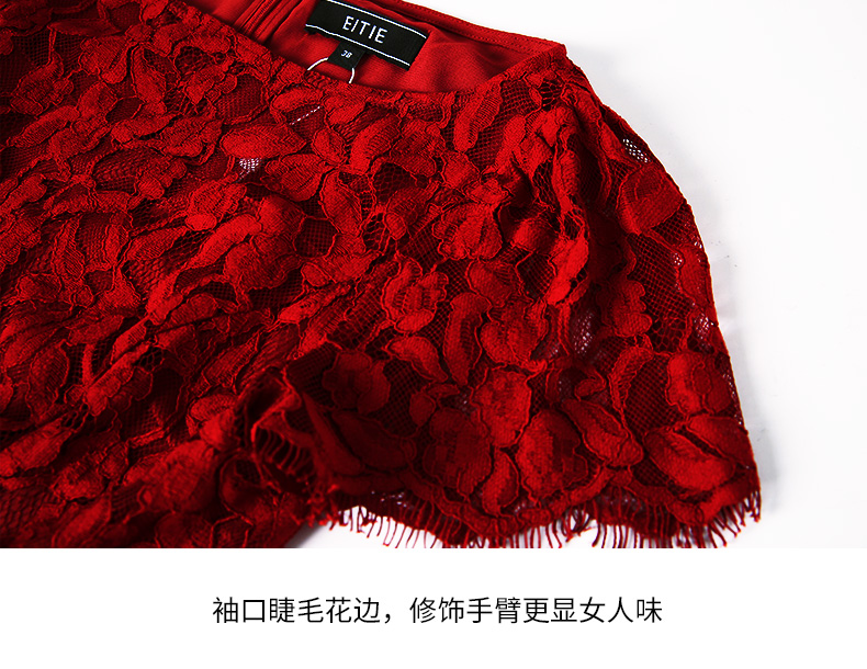 EITIE爱特爱秋季新款女装小飞袖名媛气质蕾丝连衣裙6777411