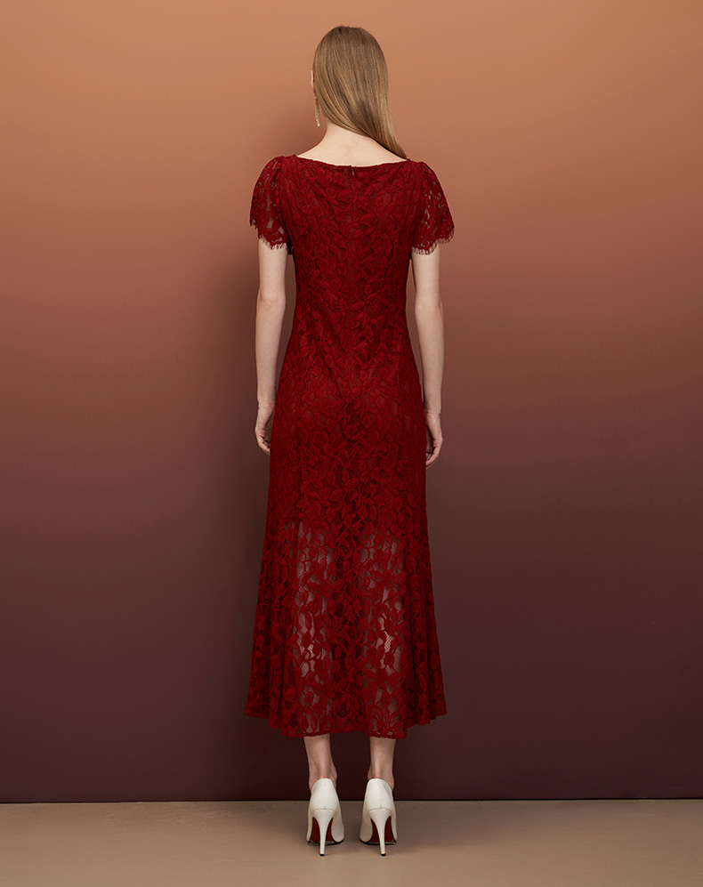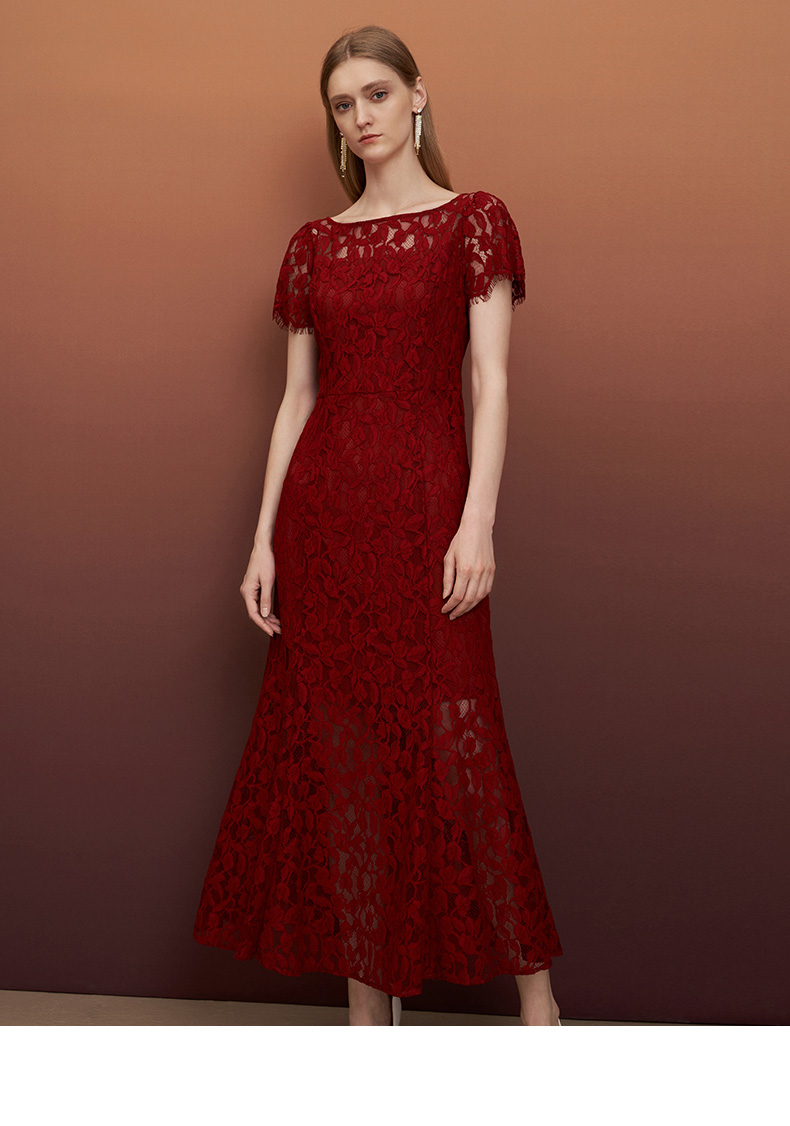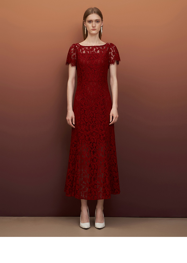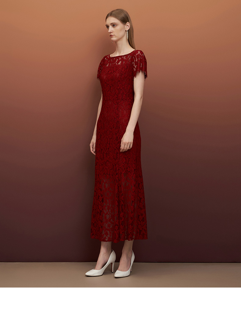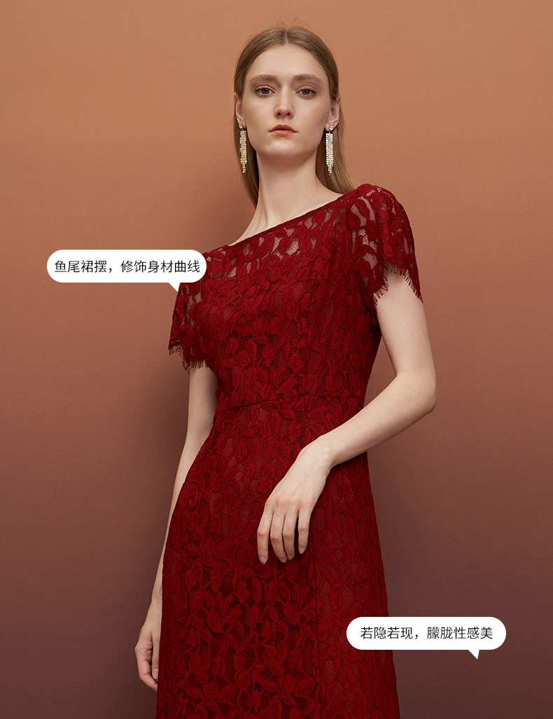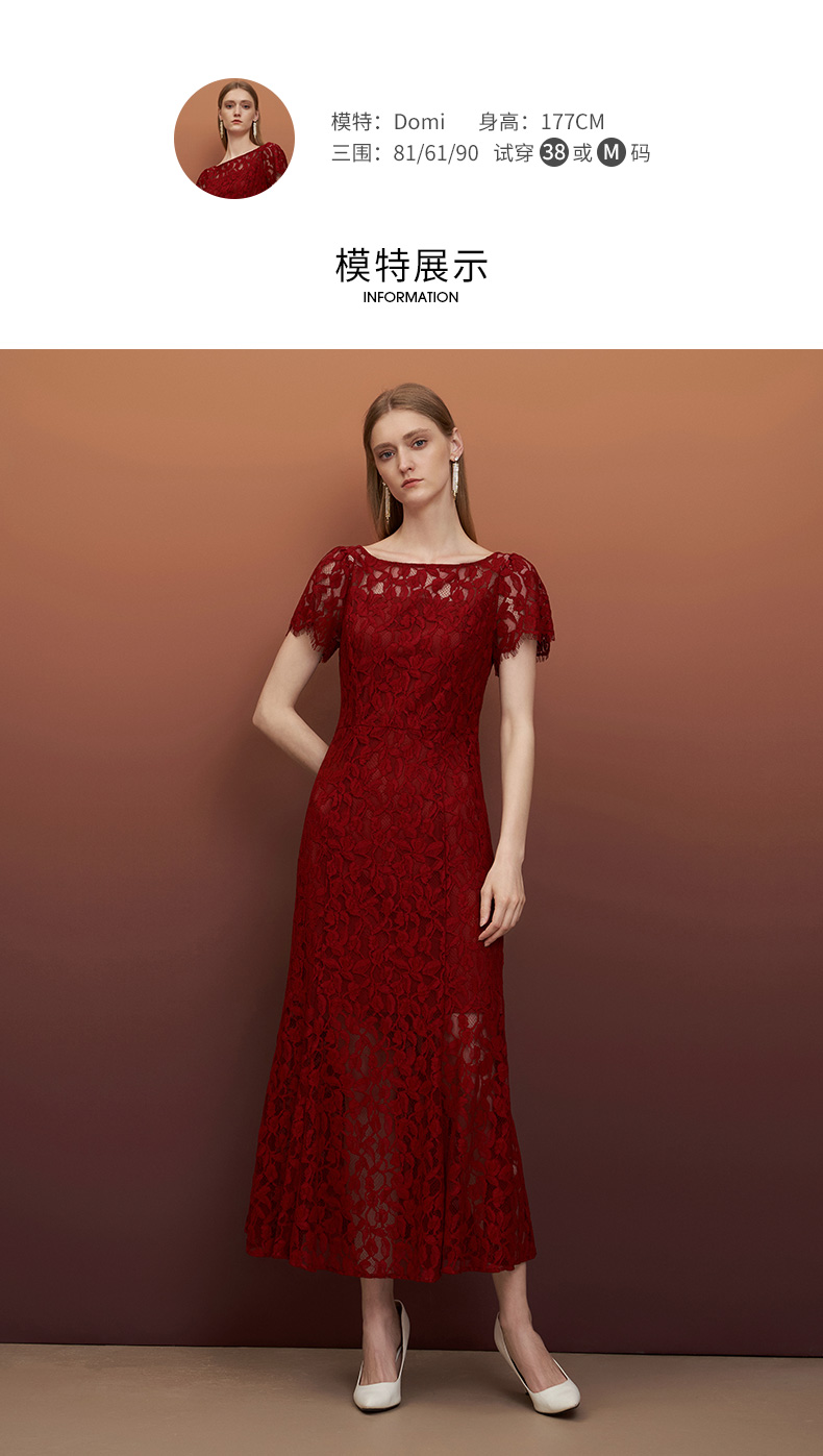 EITIE爱特爱秋季新款女装小飞袖名媛气质蕾丝连衣裙6777411