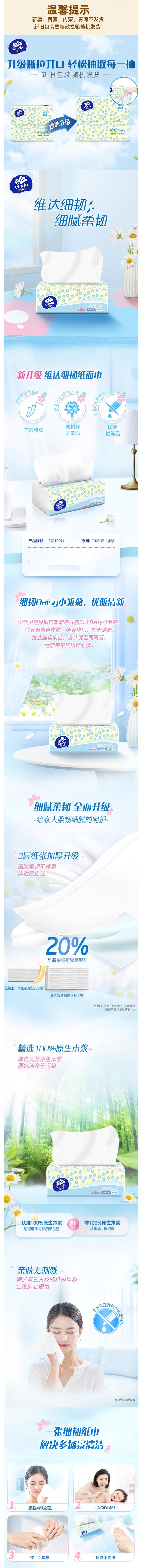 维达 细韧抽纸3层100抽*8包(新旧款式随机) VW100XR-8B