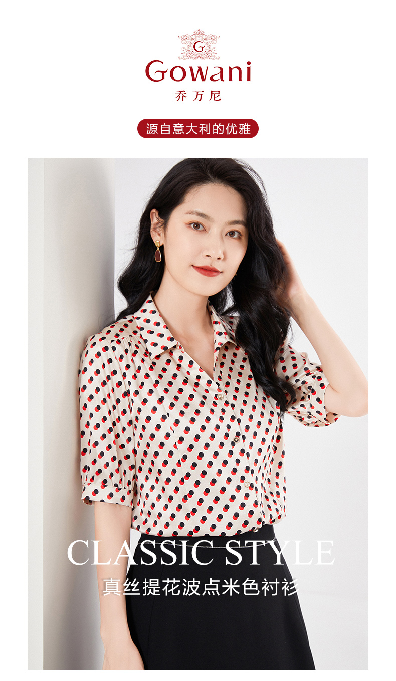 乔万尼新款真丝衬衫女重磅桑蚕丝复古提花设计感EF2C391