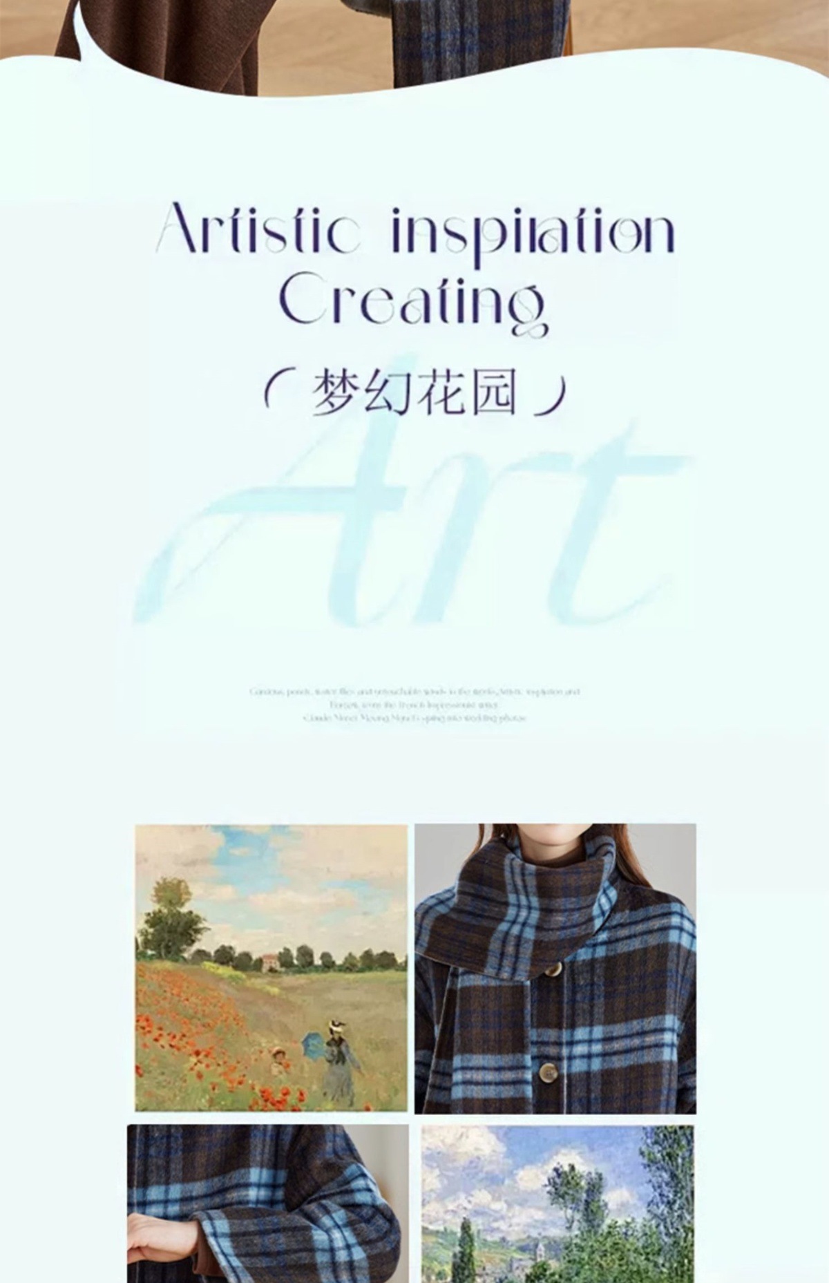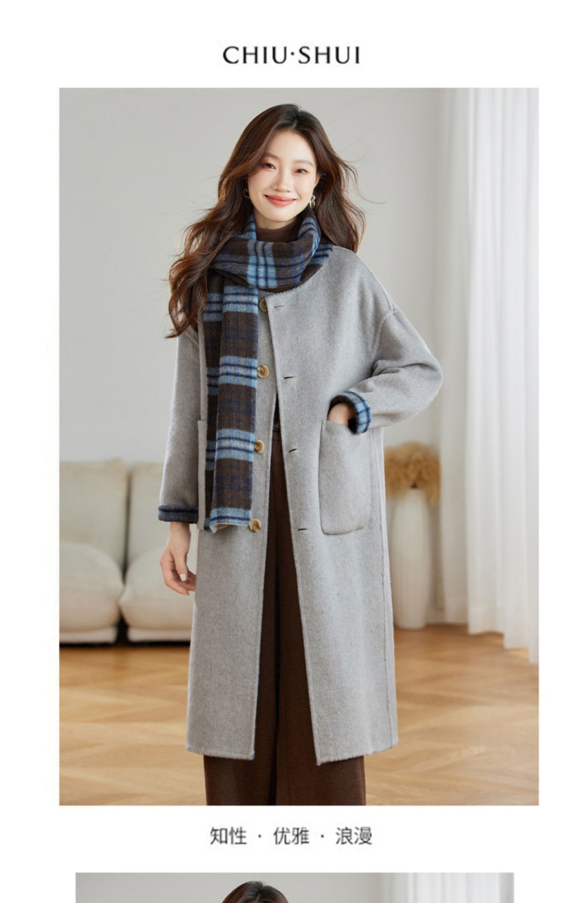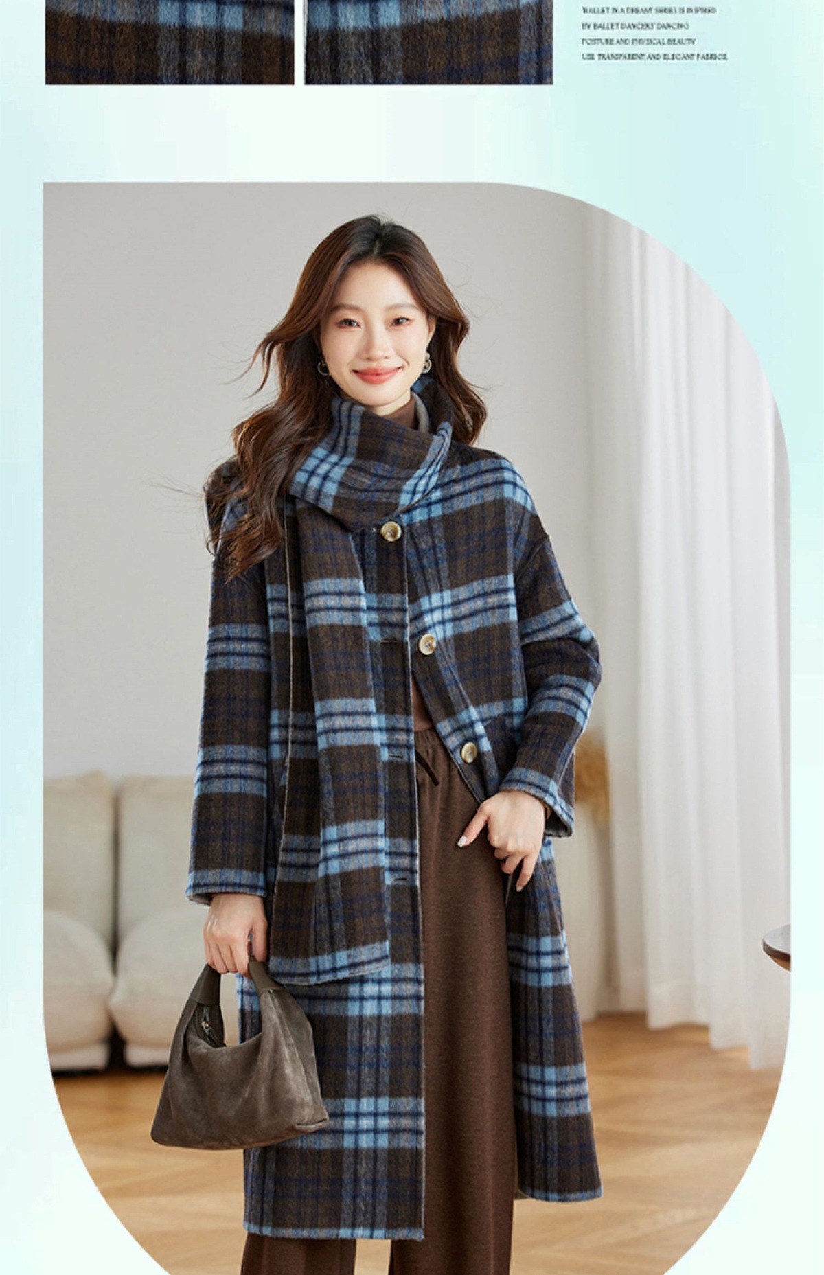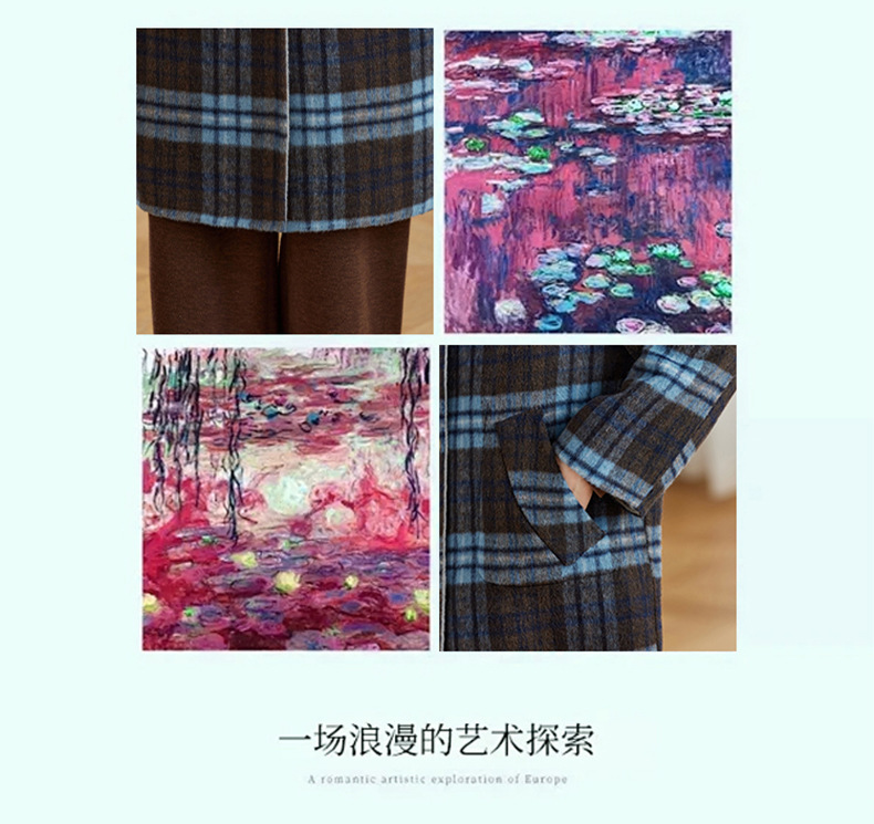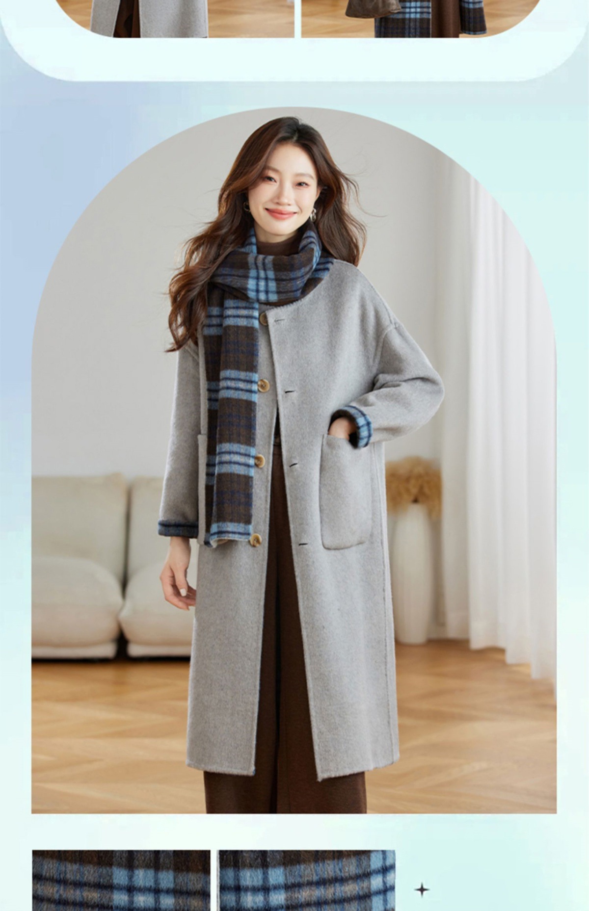 两面穿蓝色格纹羊毛大衣,设计感休闲中长款毛呢外套QIXFS248826-1