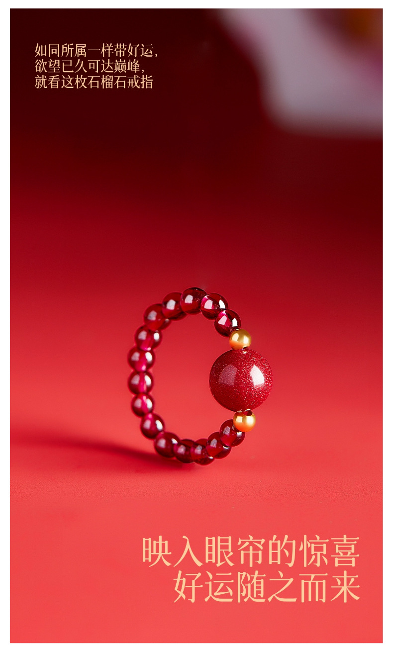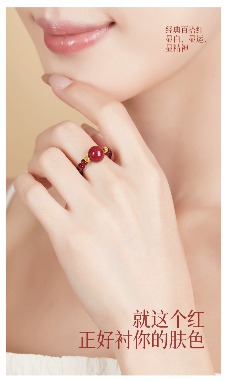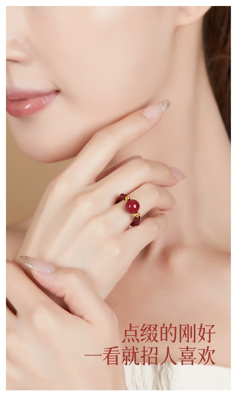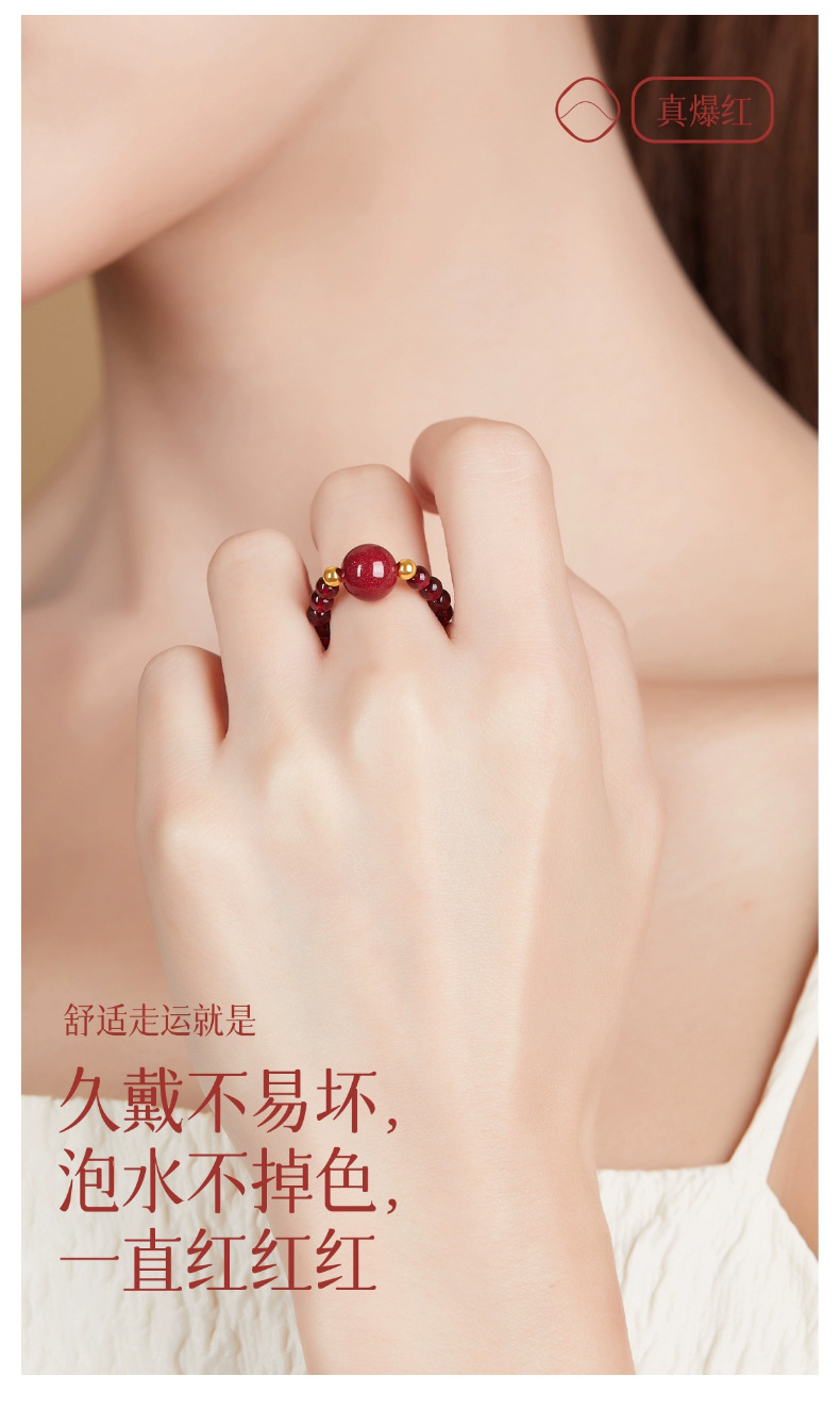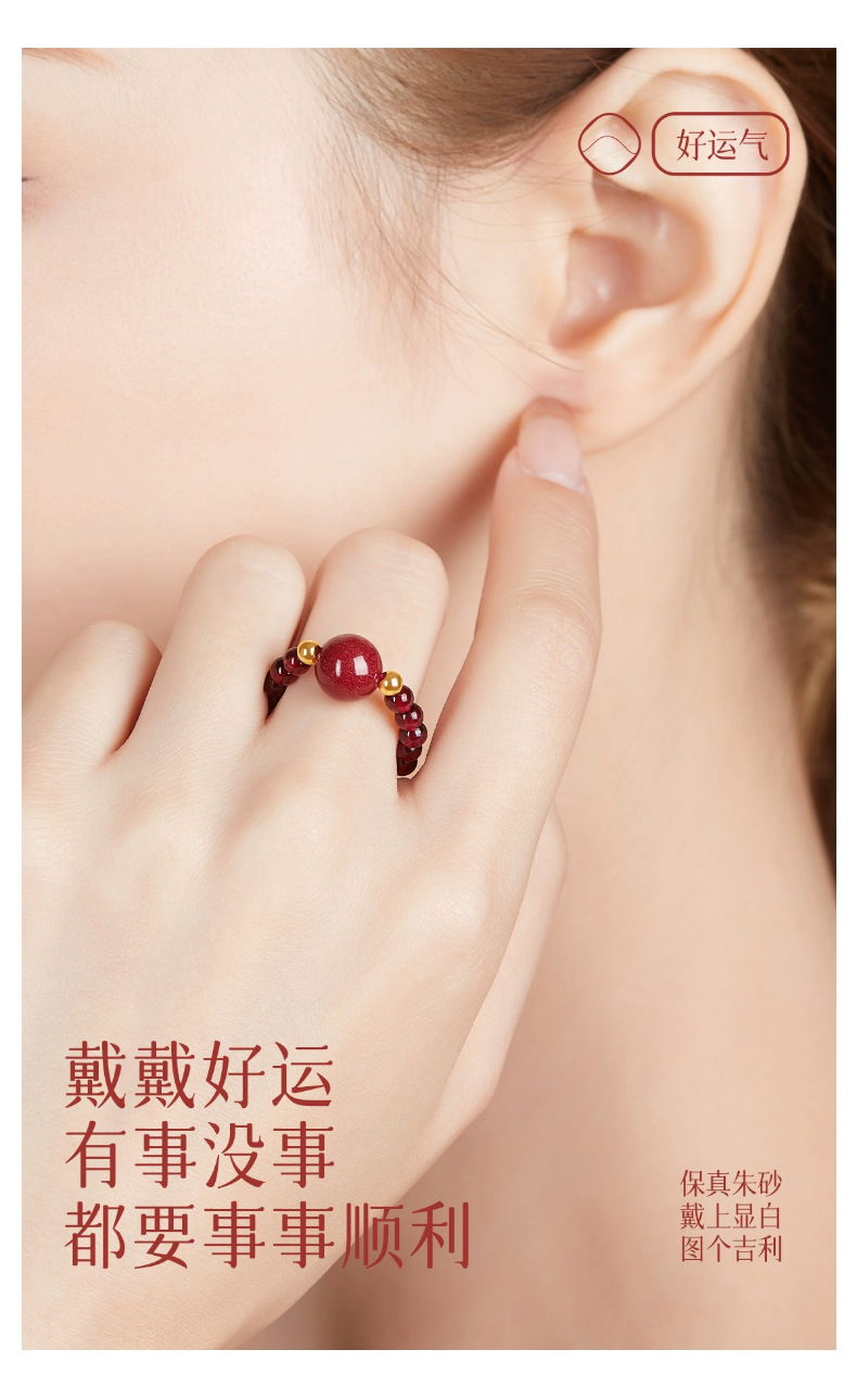 丁摩 天然朱砂戒指女款天然石榴石转运珠貔貅食指戒指女四叶草小众设计尾戒高级感5ZF-11229