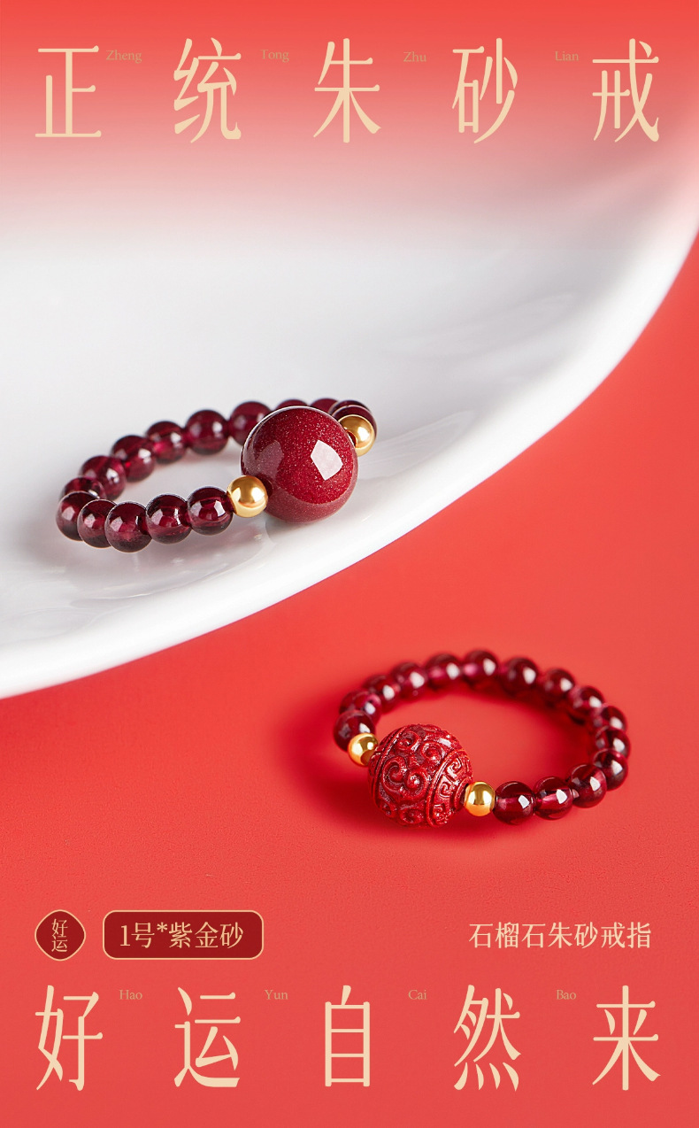 面料:天然朱砂+天然石榴石