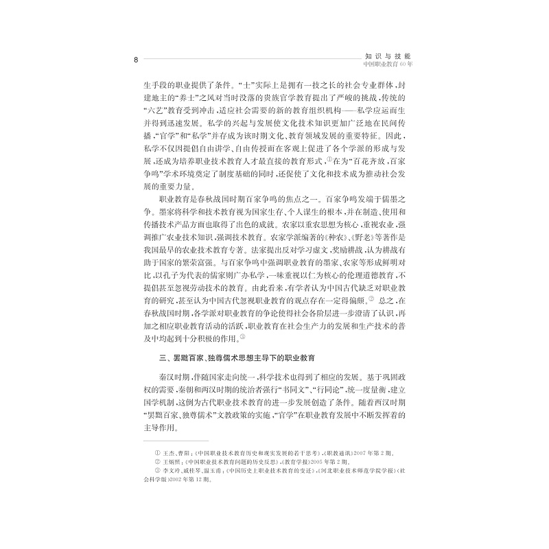 本书对我国职业教育发展历史及现状进行系统的分析与疏理,先介绍起源(建国前),然后前功尽弃六十年职教发展分成个阶段(章),即建国后至“文革”结束、三中全会后到90年代初、至世纪之交、至2002年,至今,最后再就中国职业教育的成绩、问题及展望作一全面阐述。 本书在理论框架上体现“三主线五阶段”:“三主线”即不同历史时期有不同的价值诉求,文革前的主线是政治、世纪之交之前的主线是知识,当下的主线是职业,“五阶段”则是指建国后职业教育发展的五个不同阶段。这一分析框架是全新的。