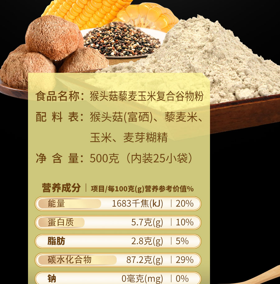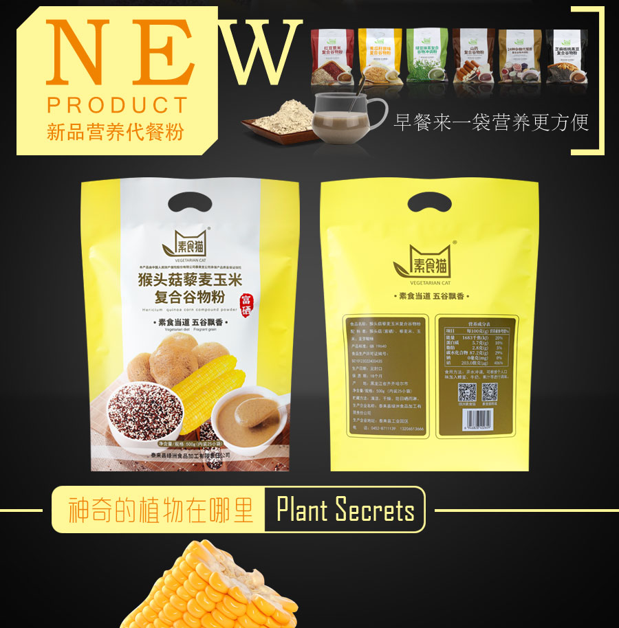 泰来县 素食猫品牌猴头菇藜麦玉米复合谷物粉500克