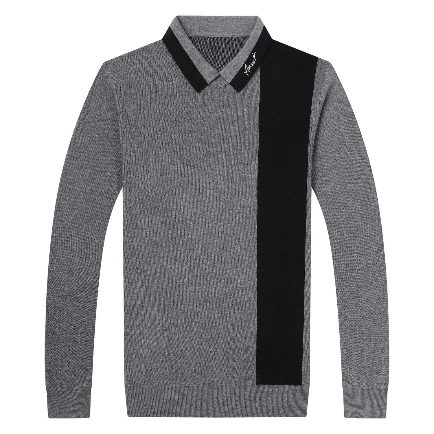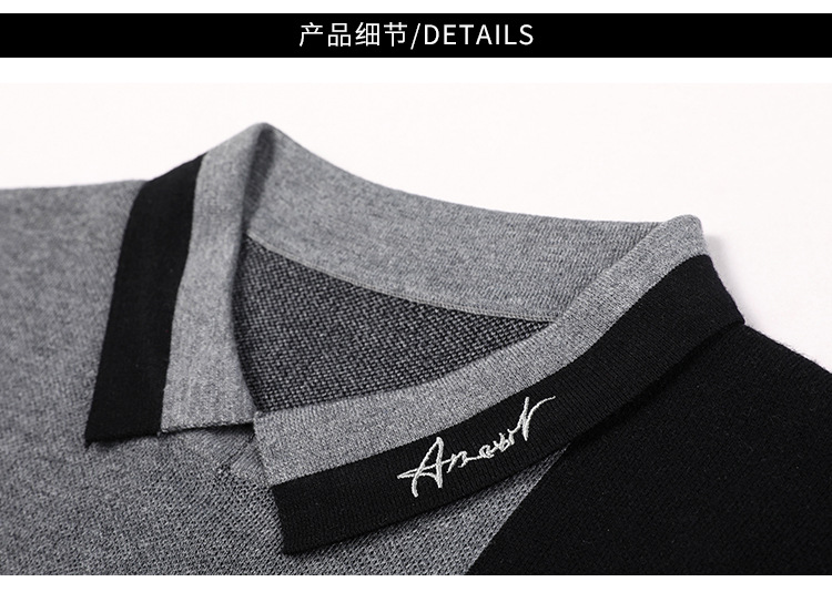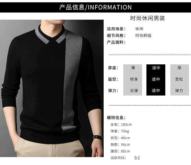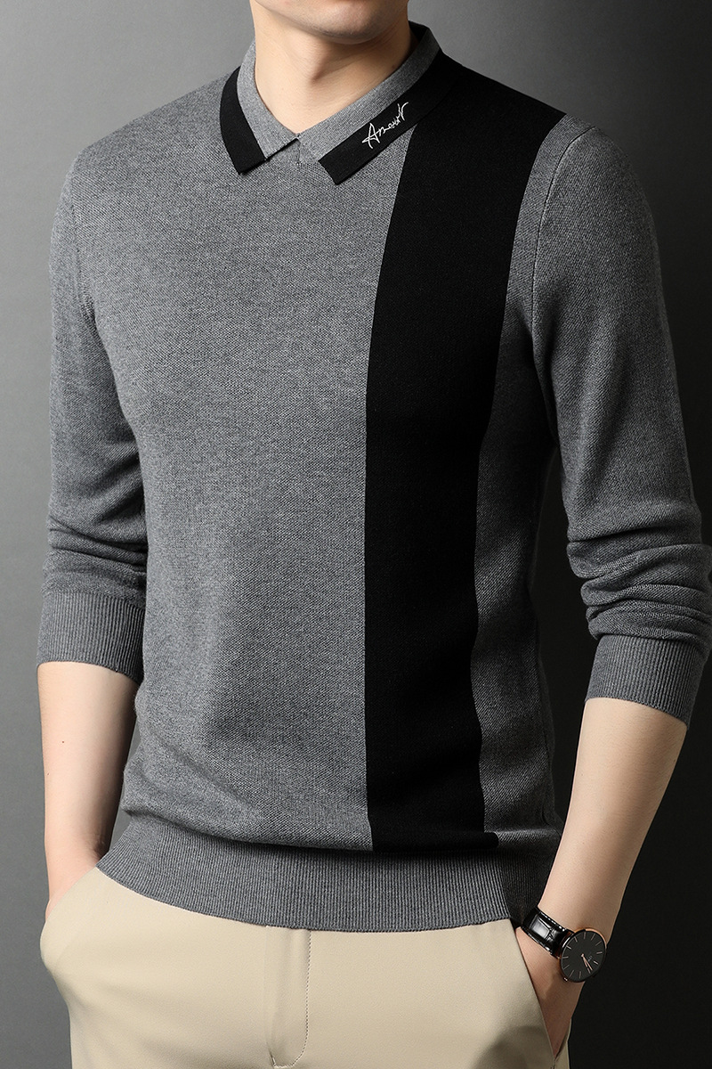 BP-1970 羊毛衫男假两件秋季新款时尚撞色长袖翻领毛衣中年上衣打底衫男装