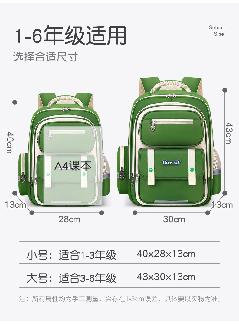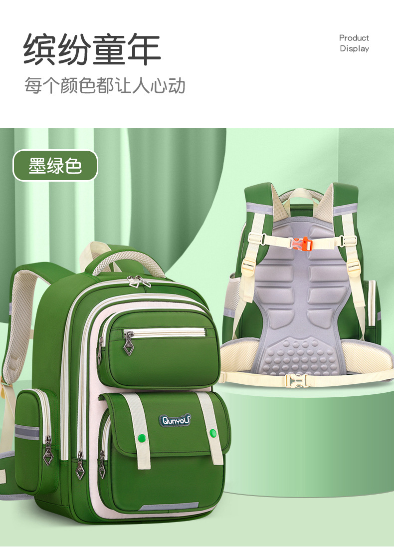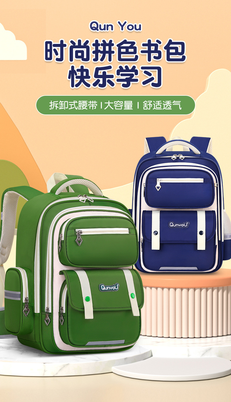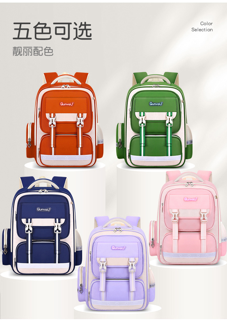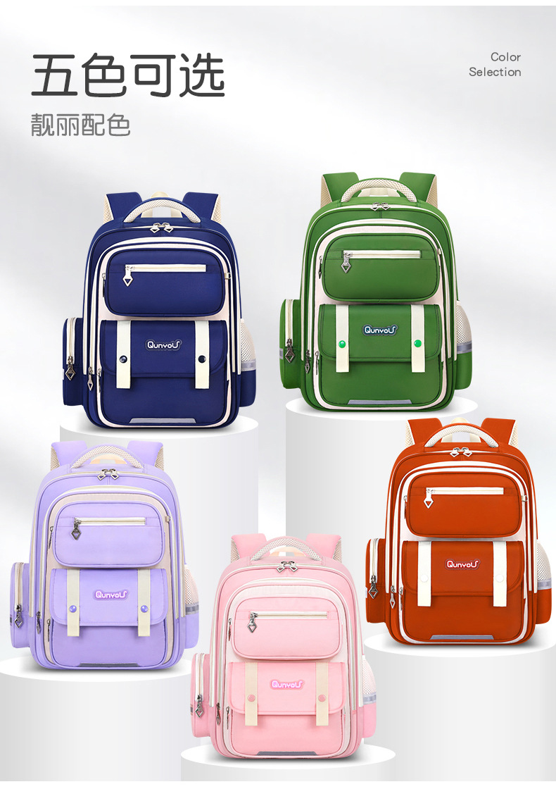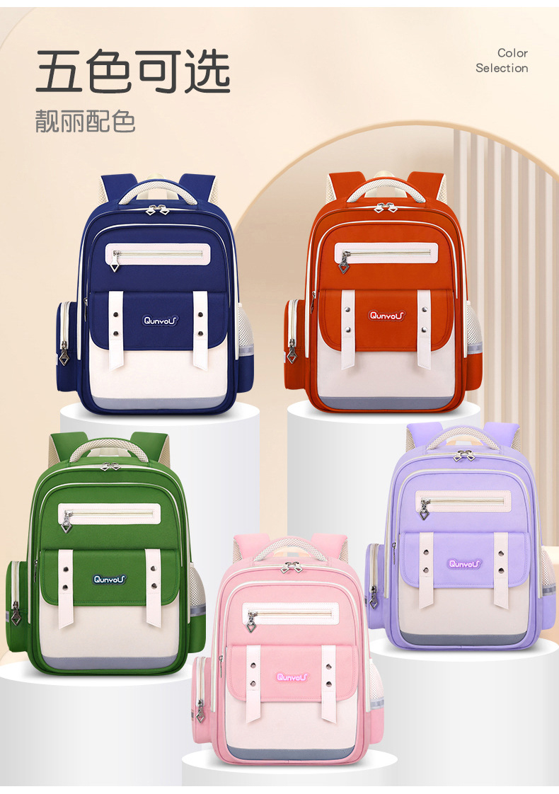 【时尚拼色书包,快乐学习】小学生书包英伦风 减负背垫耐磨儿童书包 3-6年级小学生书包 拆卸式腰带|大容量|舒适透气-QQ