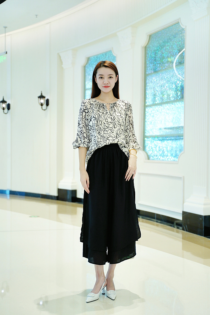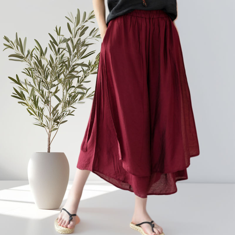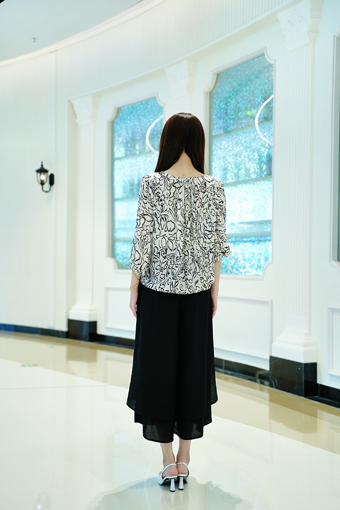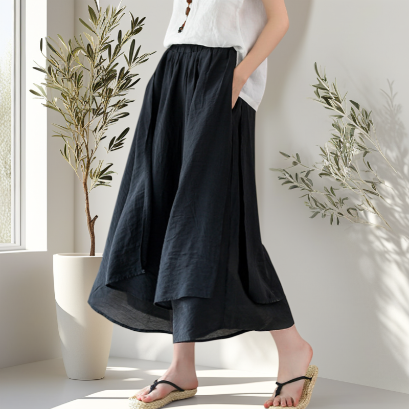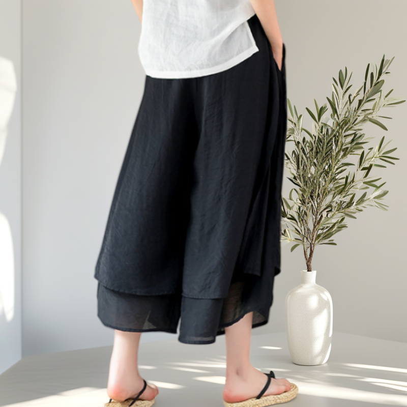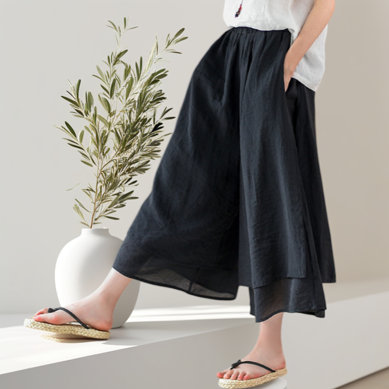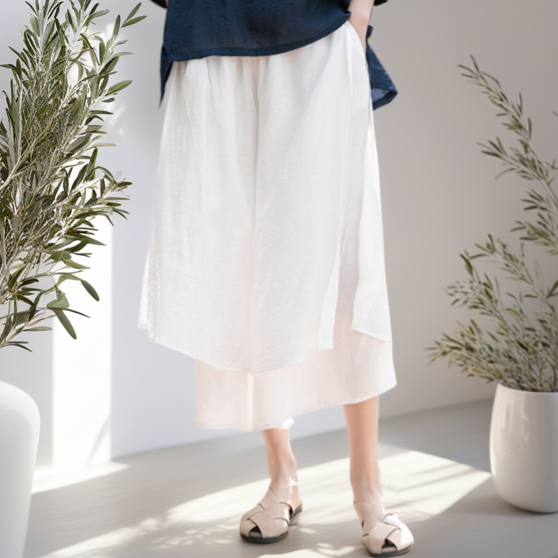 松紧高腰 ➕ 九分阔腿裤型 ➕ 裙裤开口设计