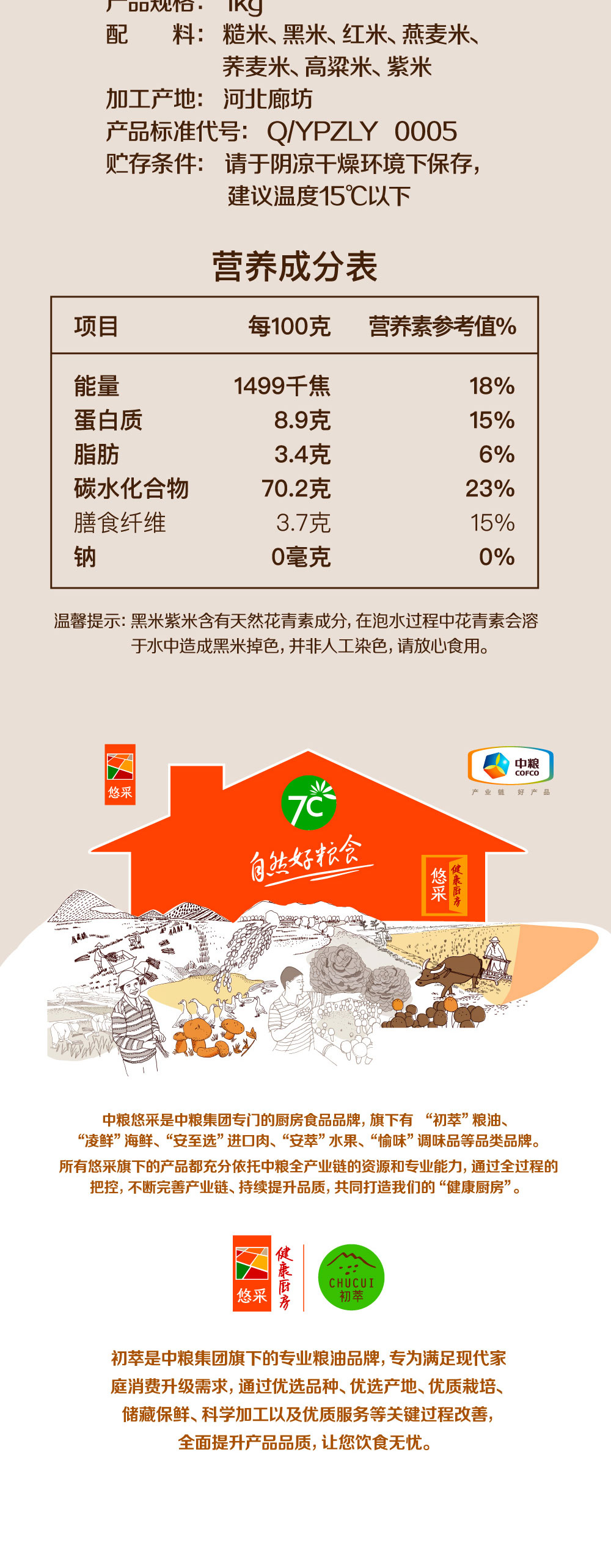 中粮初萃 七色糙米混合杂粮米五谷杂粮 组合粗粮 糙米饭 代餐杂粮粥
