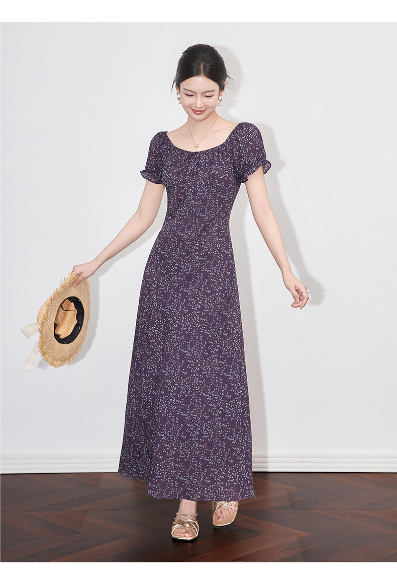「高货wl」全新升级【铂金会员339/天猫459/差价120】(14120)洛诗琳法式浪漫文艺印花裙2025夏季领口系带气质连衣裙女