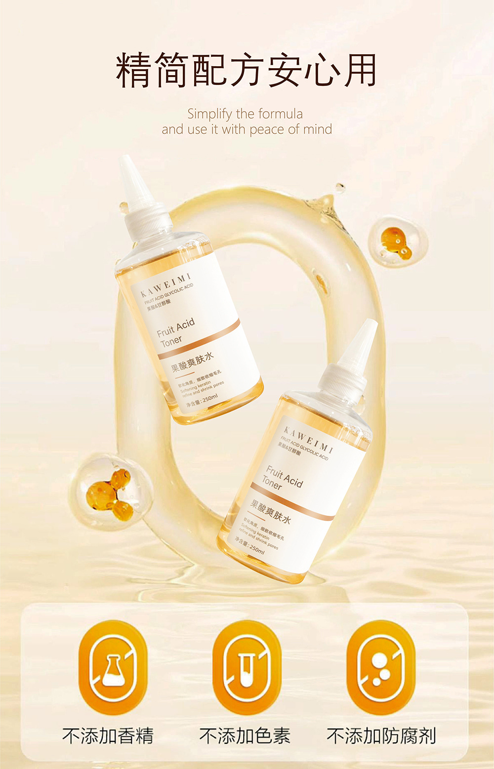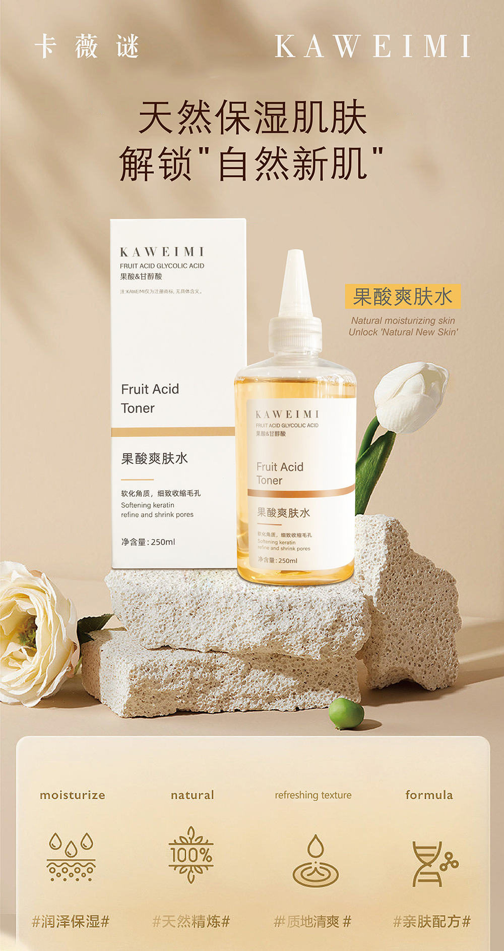 【天然保湿肌肤,解锁自然新肌~】甘醇酸果酸水爽肤水250ml 补水保湿去角质 收缩毛孔改善闭口 湿敷水-QQ