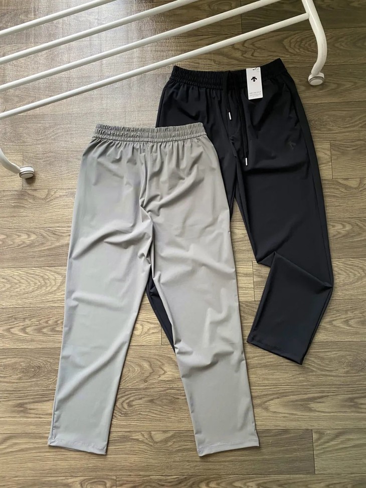 松紧腰围搭配品牌LOGO抽绳,裤脚平口设计减少束缚。
