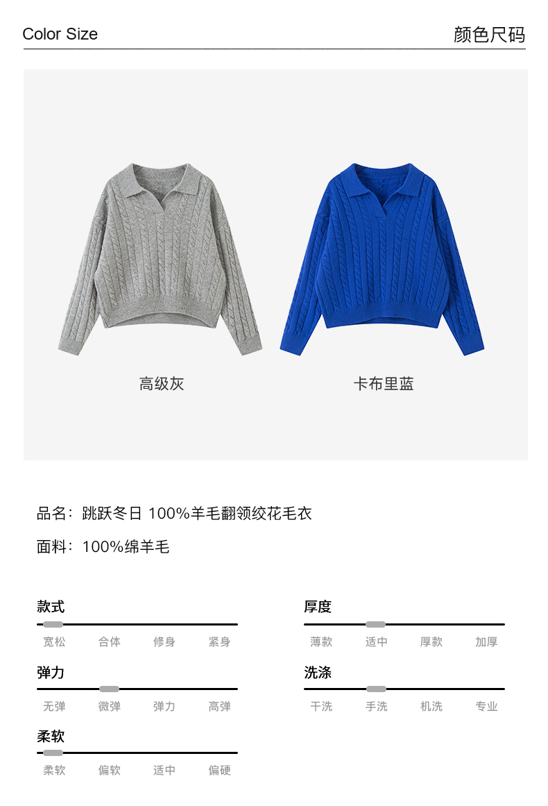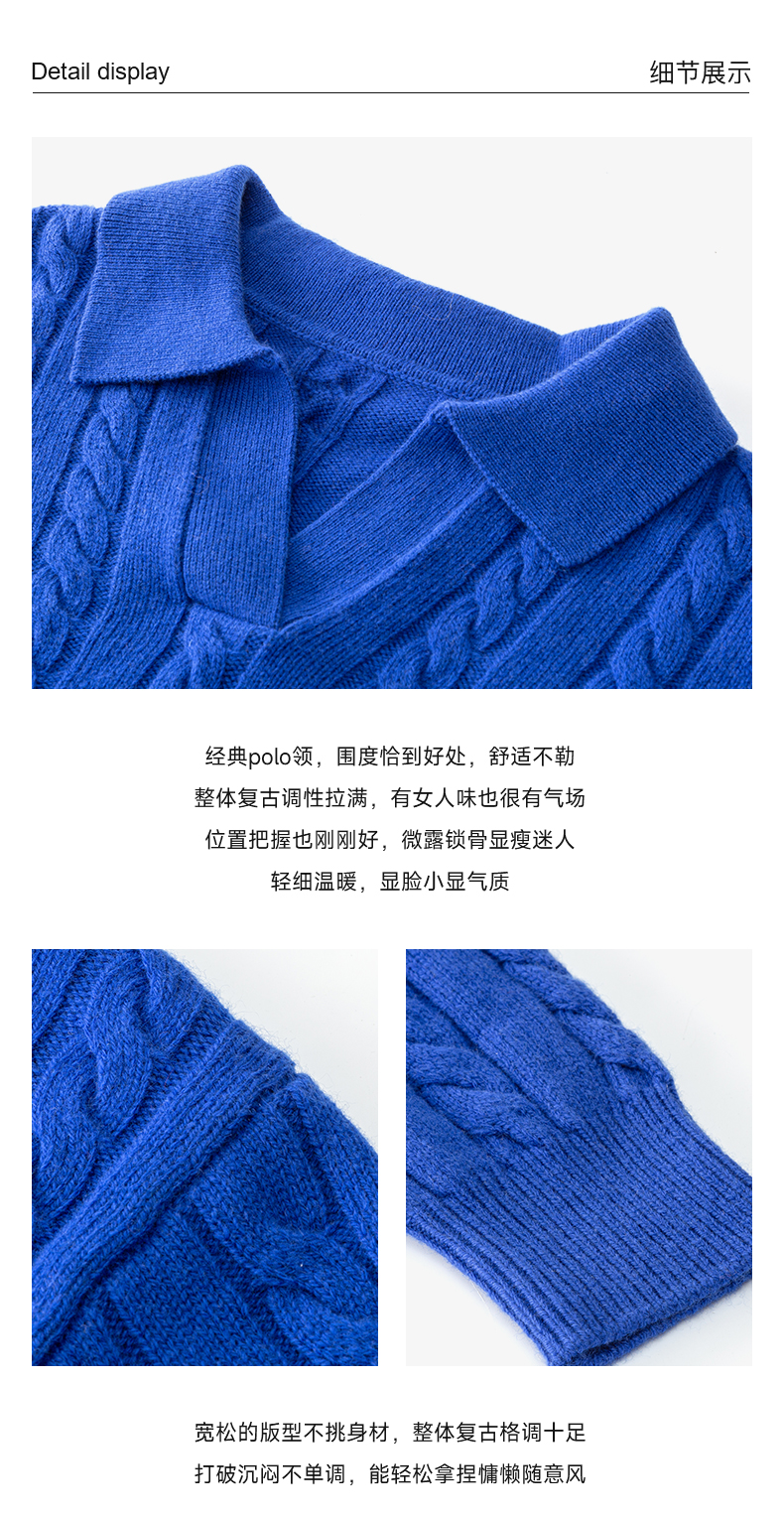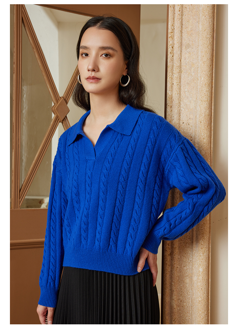 自然宠溺 100%羊毛V领翻领绞花毛衣