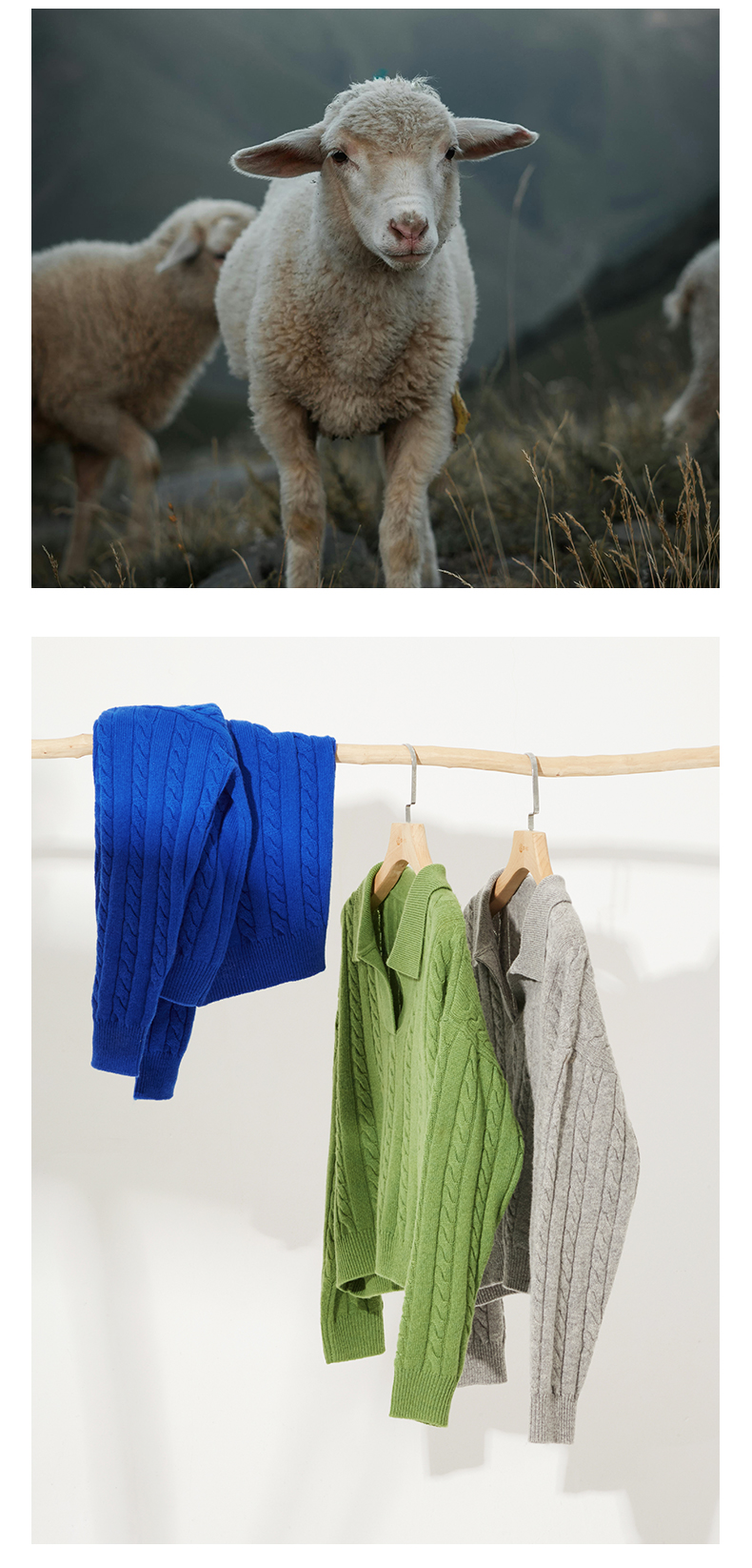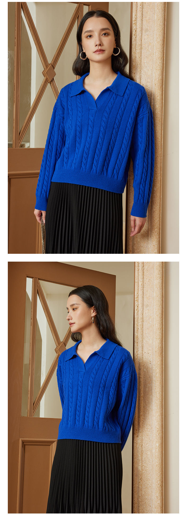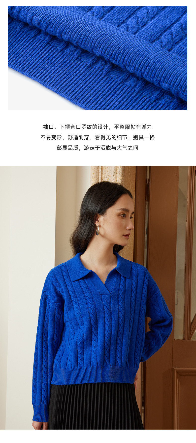 自然宠溺 100%羊毛V领翻领绞花毛衣