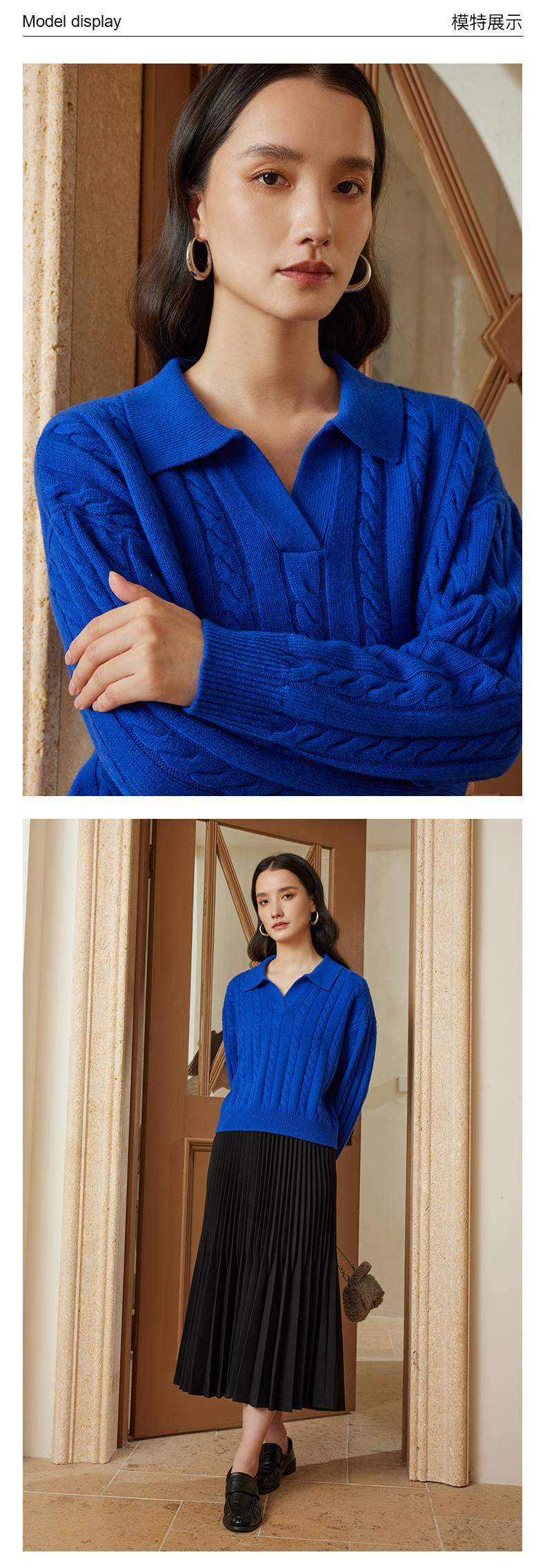 54681 璞宿PUSU 优雅永恒 羊绒绵羊毛浪漫钩花袖口针织上衣