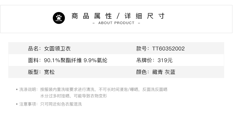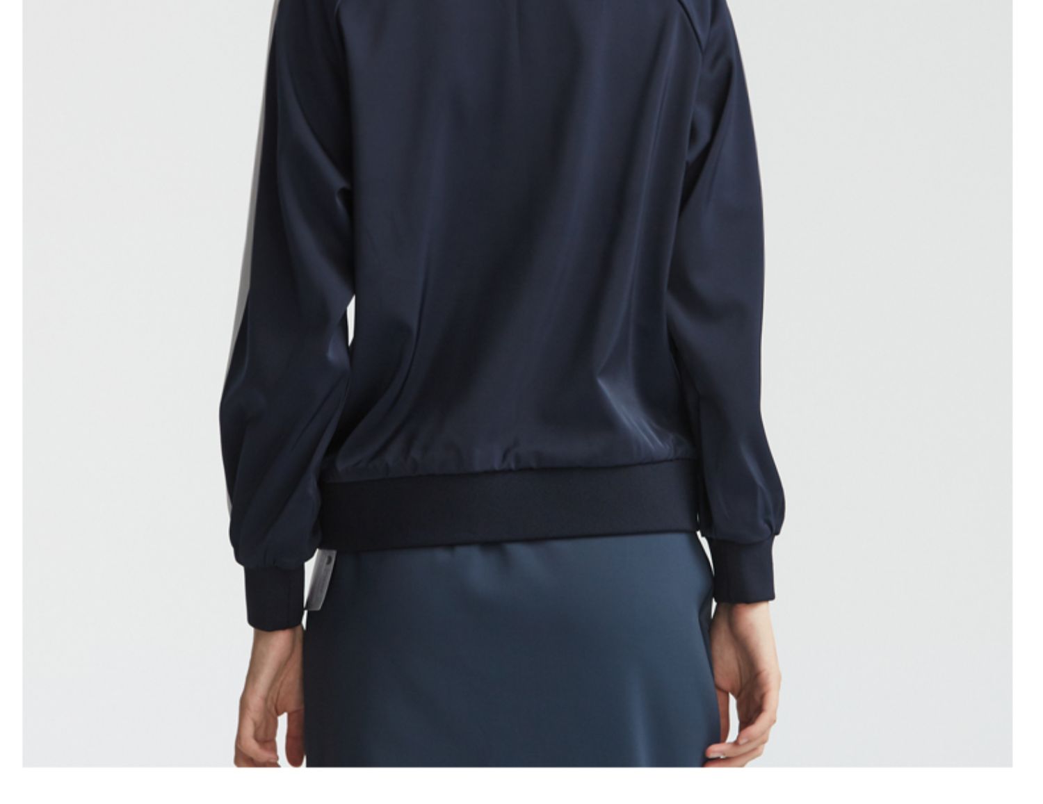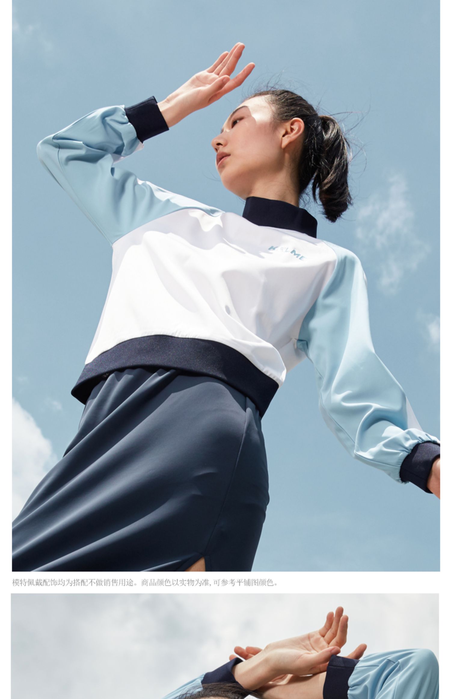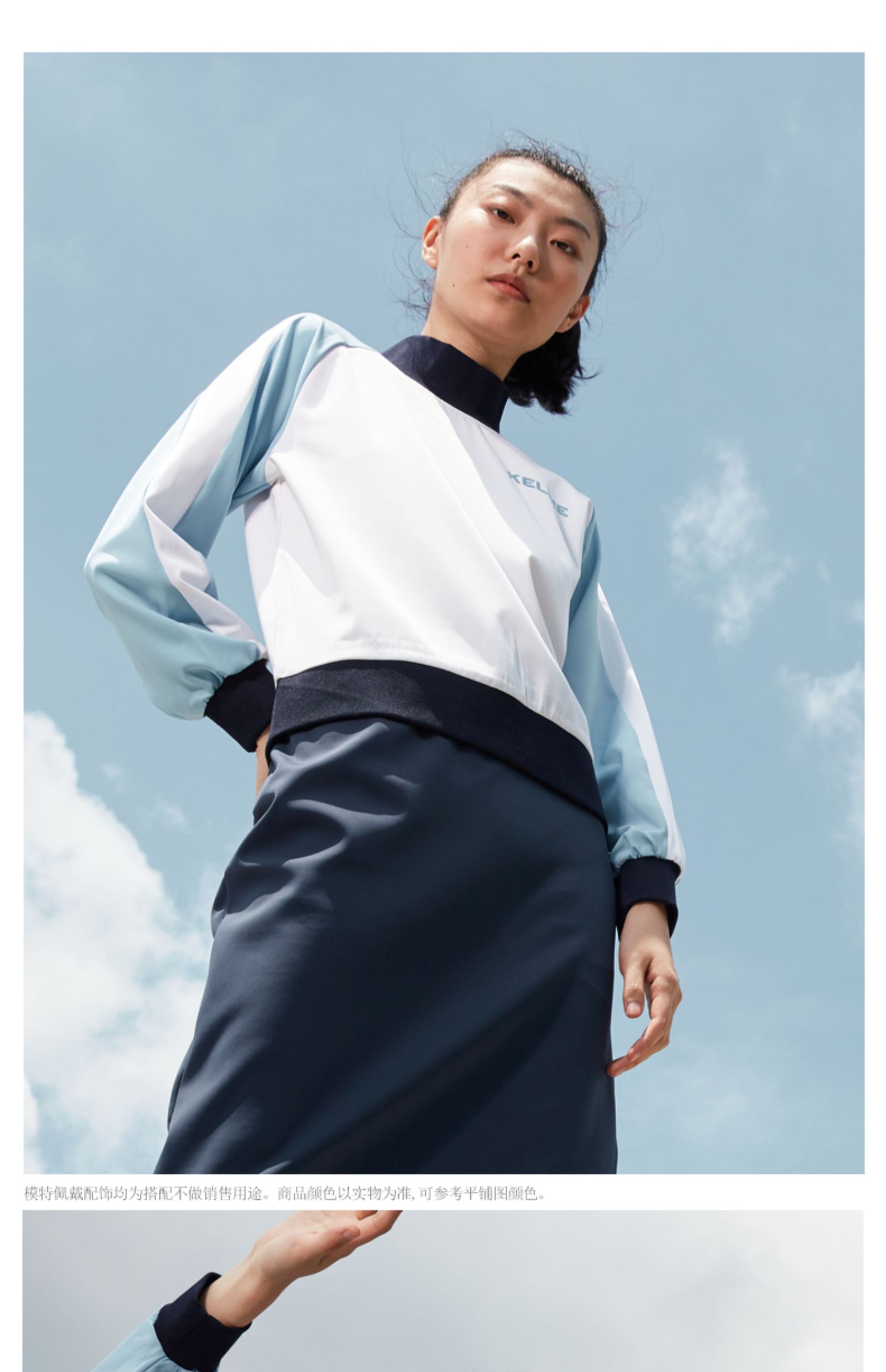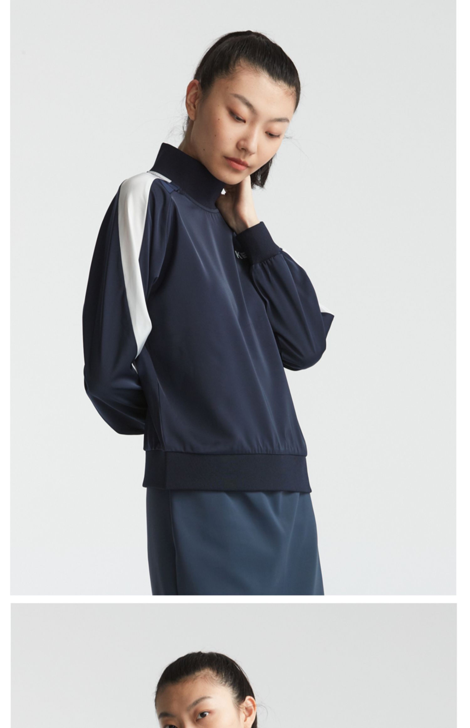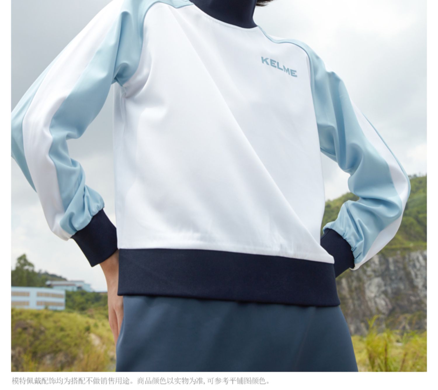 卡尔美新款插肩袖撞色条纹卫衣女清爽梭织高领休闲上衣
