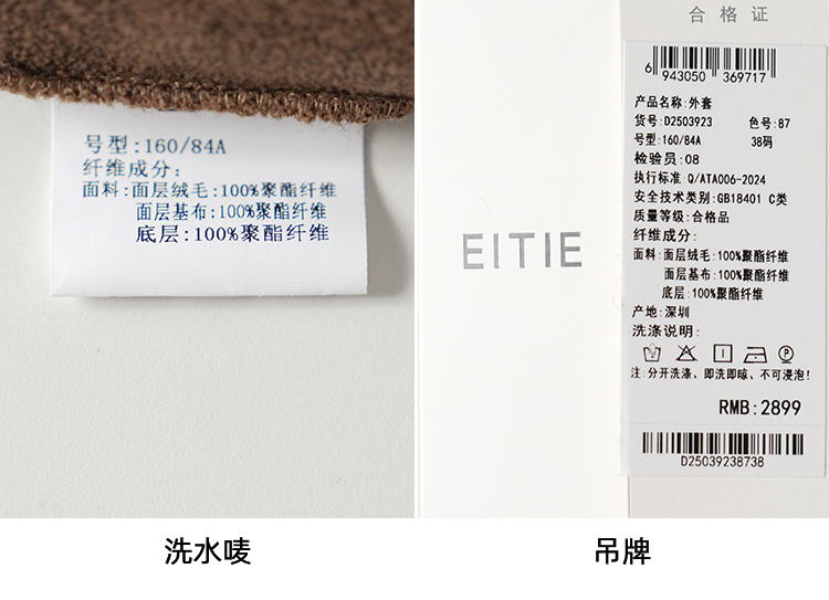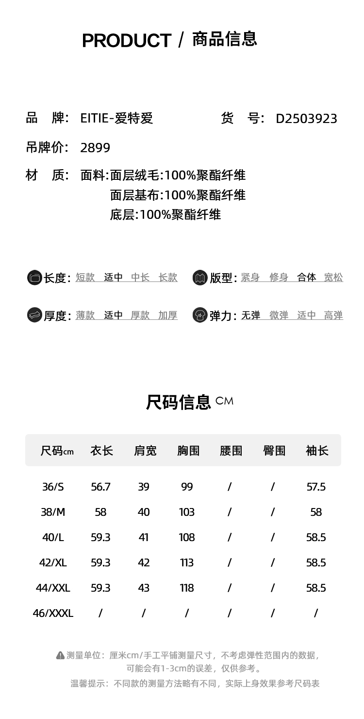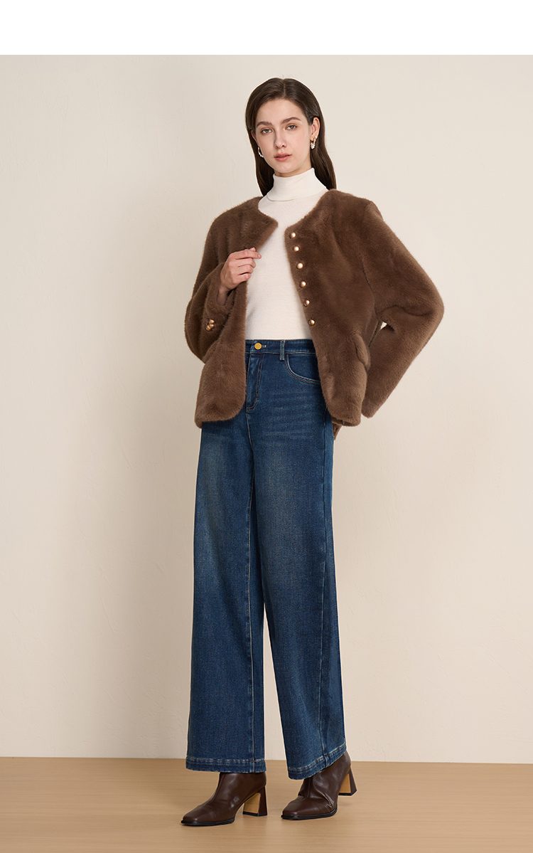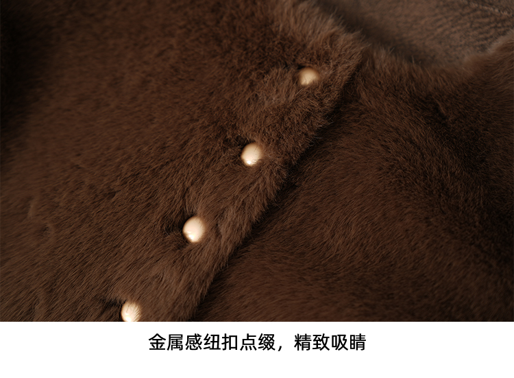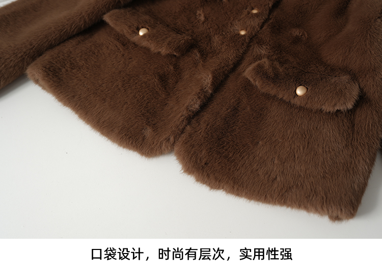 EITIE爱特爱巧克力色秋冬氛围感圆领短款环保皮草外套D2503923
