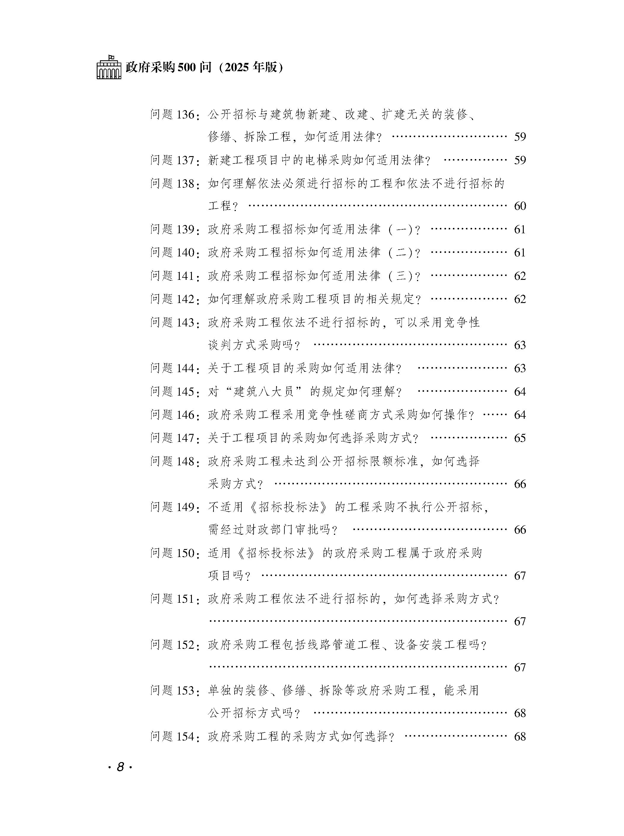 本书以《中华人民共和国政府采购法》及其实施条例为纲领,立足支持中小企业发展、促进绿色采购、优化营商环境等政策导向,针对政府采购实践中600余个高频问题,由权威部门专家依据政府采购当事人权责、采购程序、合同管理、质疑投诉等制度框架逐条解析。全书通过“问题-解答”体例,精准阐释采购方式应用、履约验收标准、政策执行偏差等实务难点,严格援引财政部等官方发布的有效法律法规及案例,提供兼具政府采购政策性和实际操作性指导价值的权威指南,助力规范政府采购市场秩序。