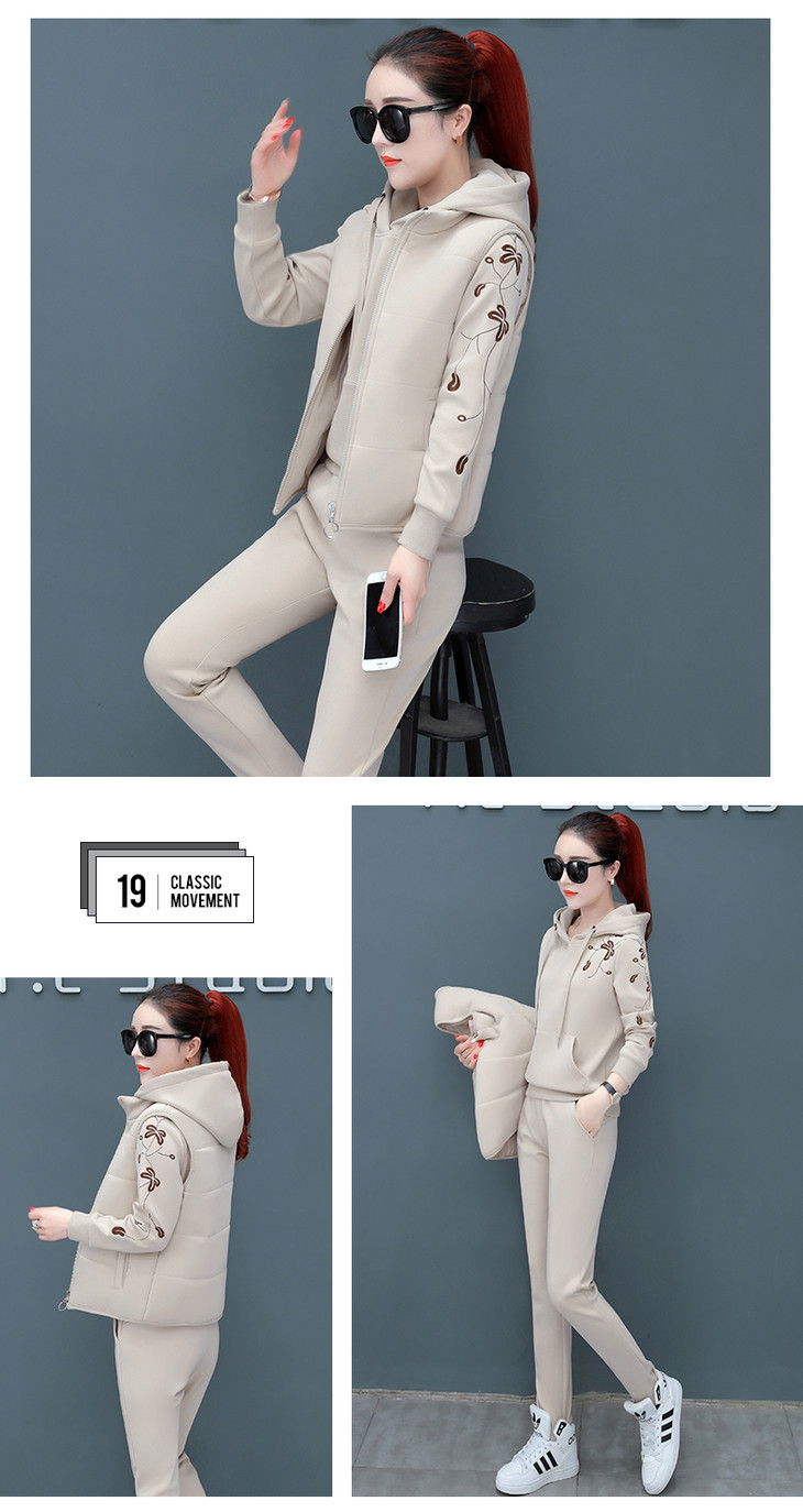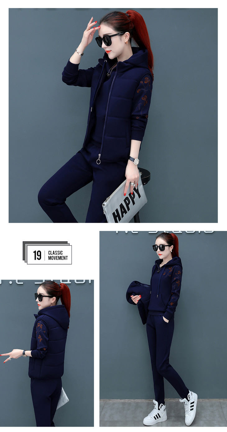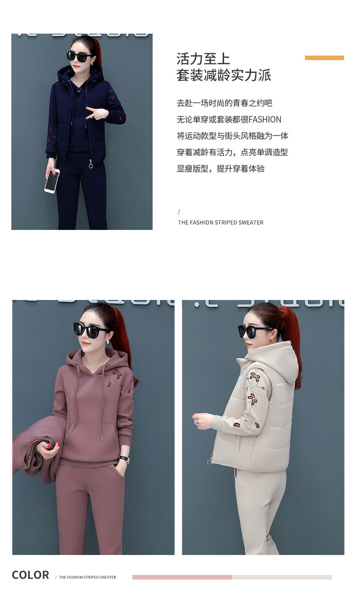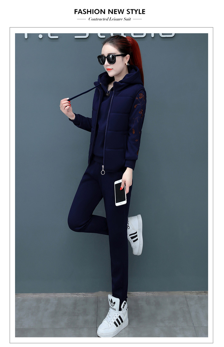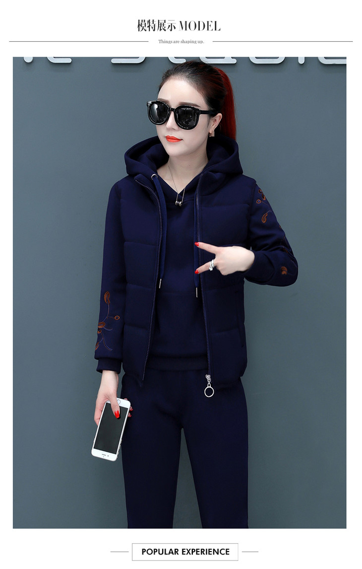 SP-CM662962冬季新款时尚休闲加绒加厚运动套装三件套