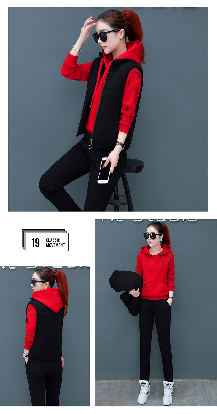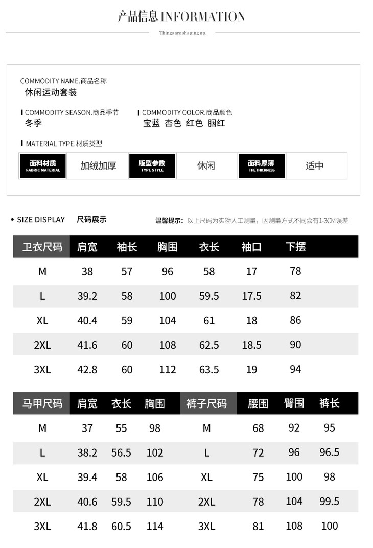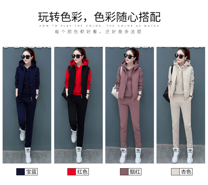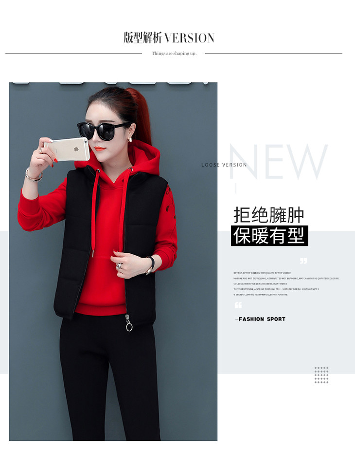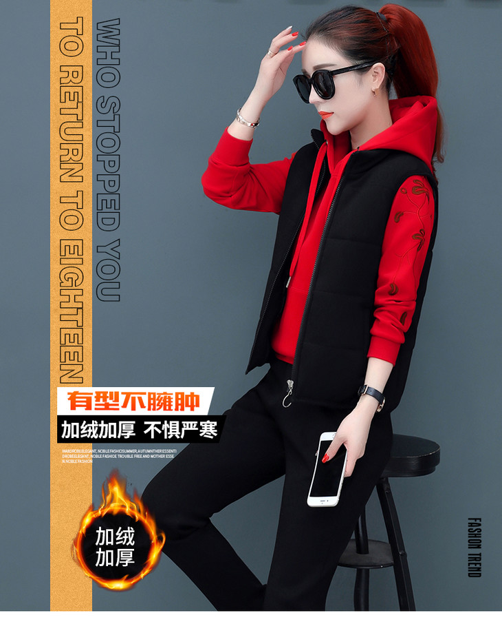 SP-CM662962冬季新款时尚休闲加绒加厚运动套装三件套