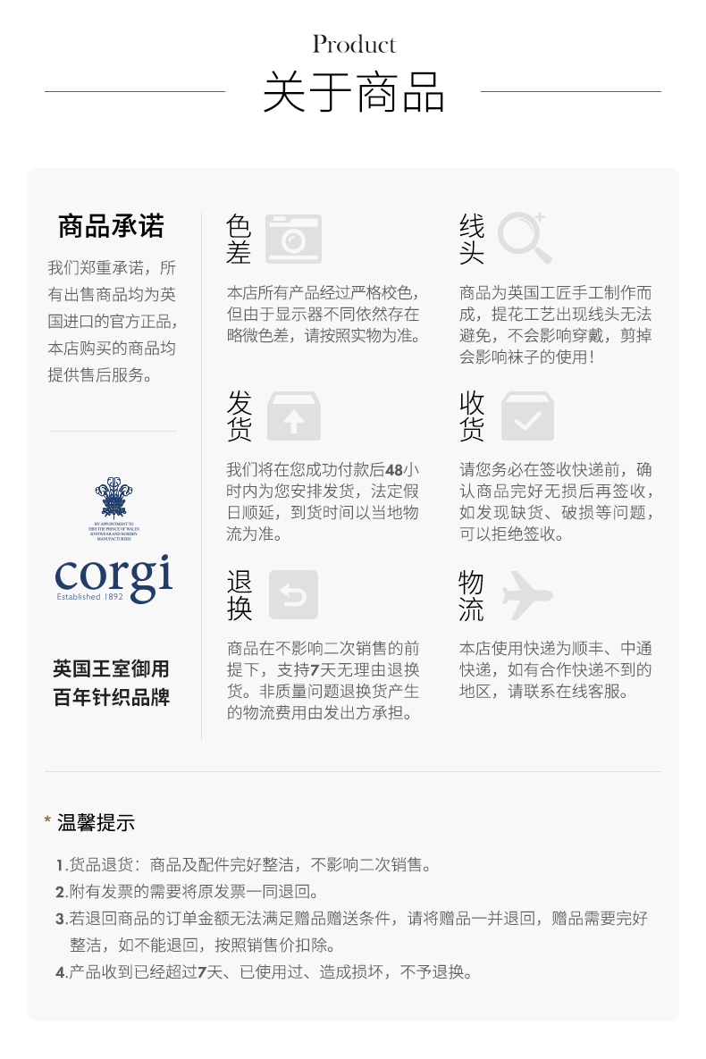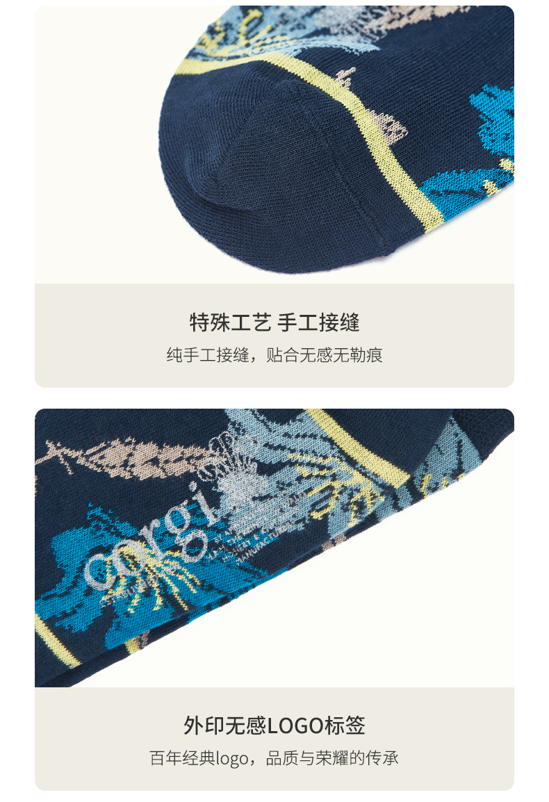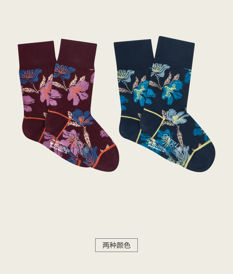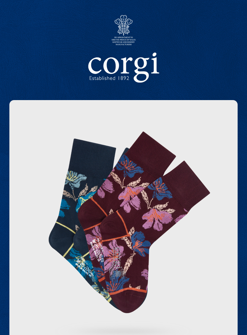 CORGI柯基英国男女同款进口拼色花卉点缀针织中筒袜秋冬季男女同款