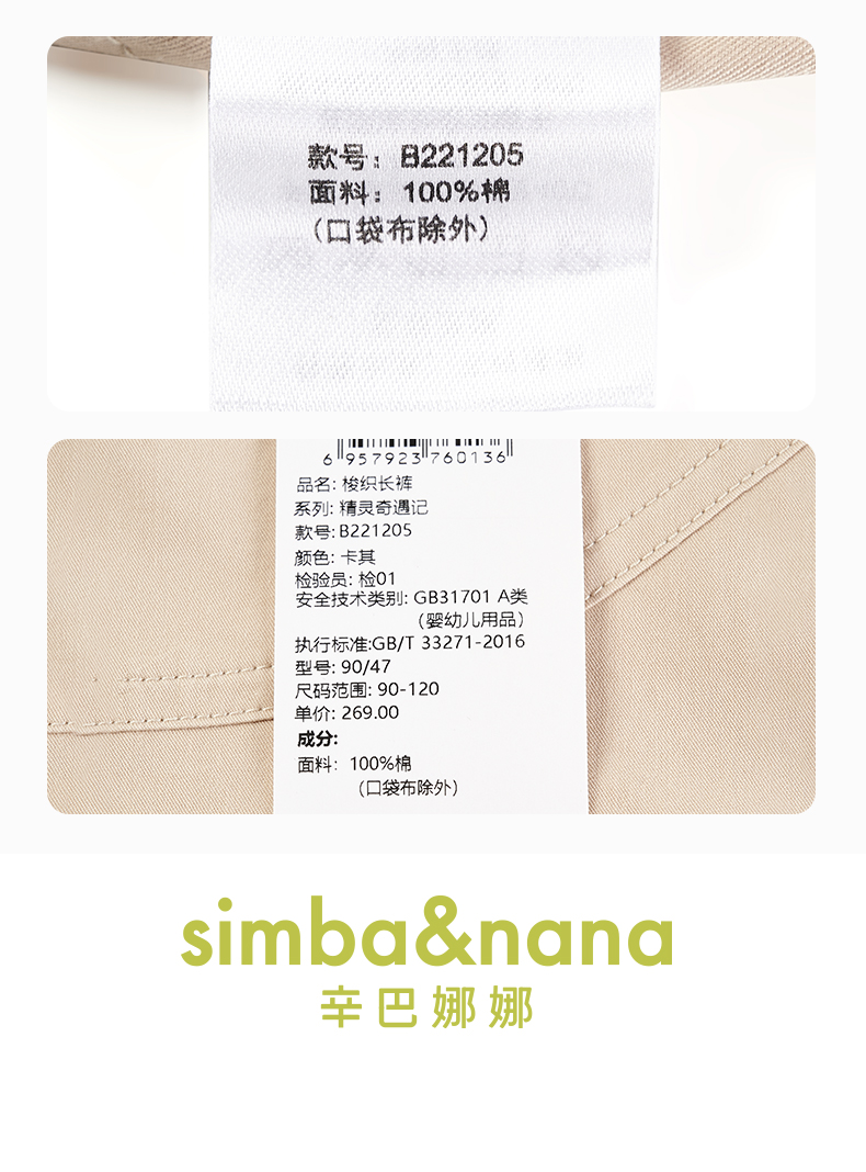【辛巴娜娜】simbanana男孩中小童直筒宝宝宽松长裤裤子休闲裤百搭纯色