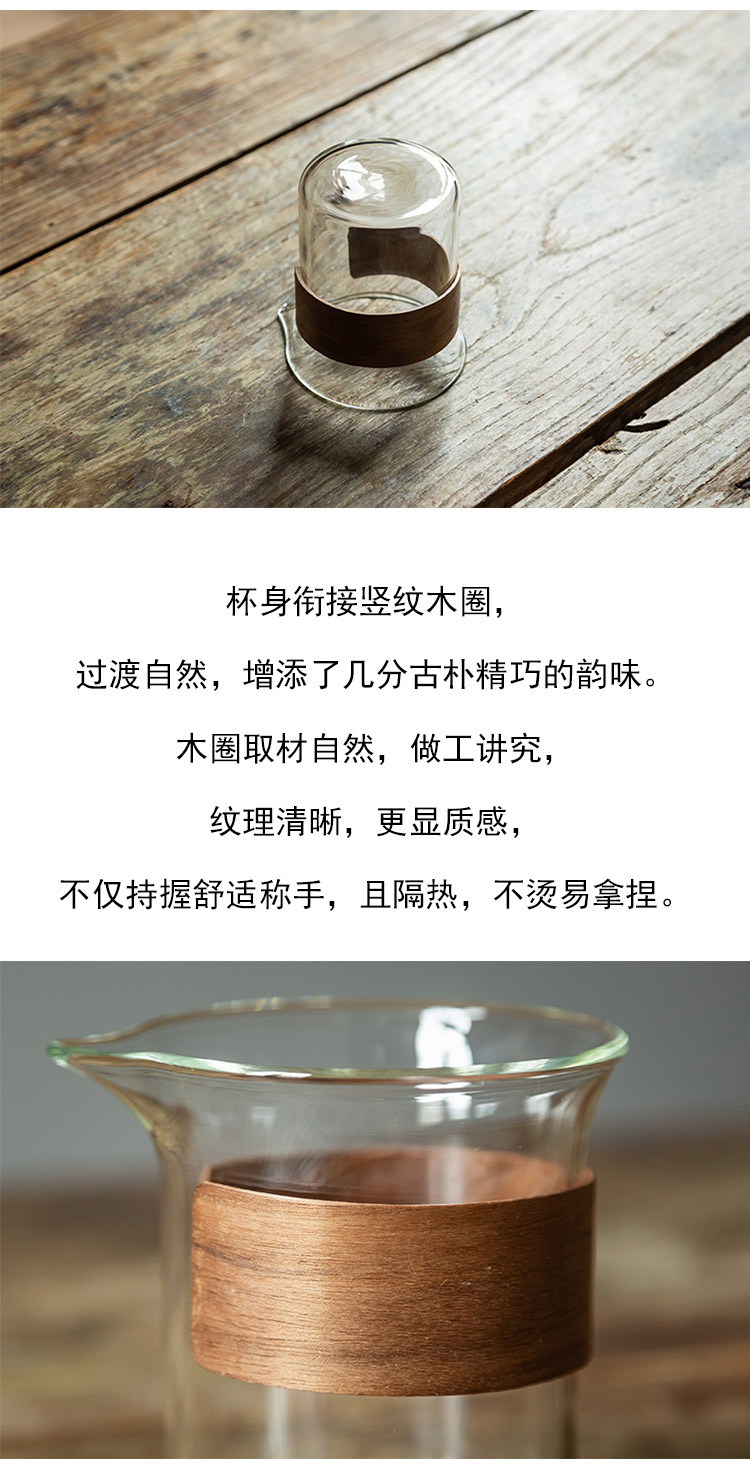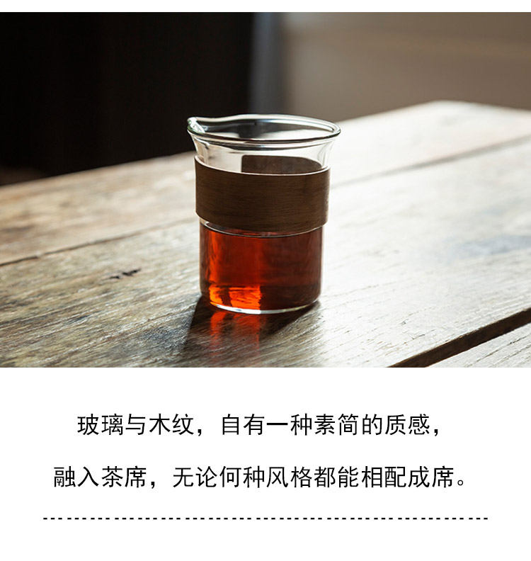 茶香记 竖纹木圈透明玻璃 鹰嘴公道杯 匀杯 茶海 功夫茶具 公杯