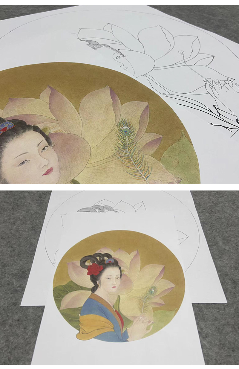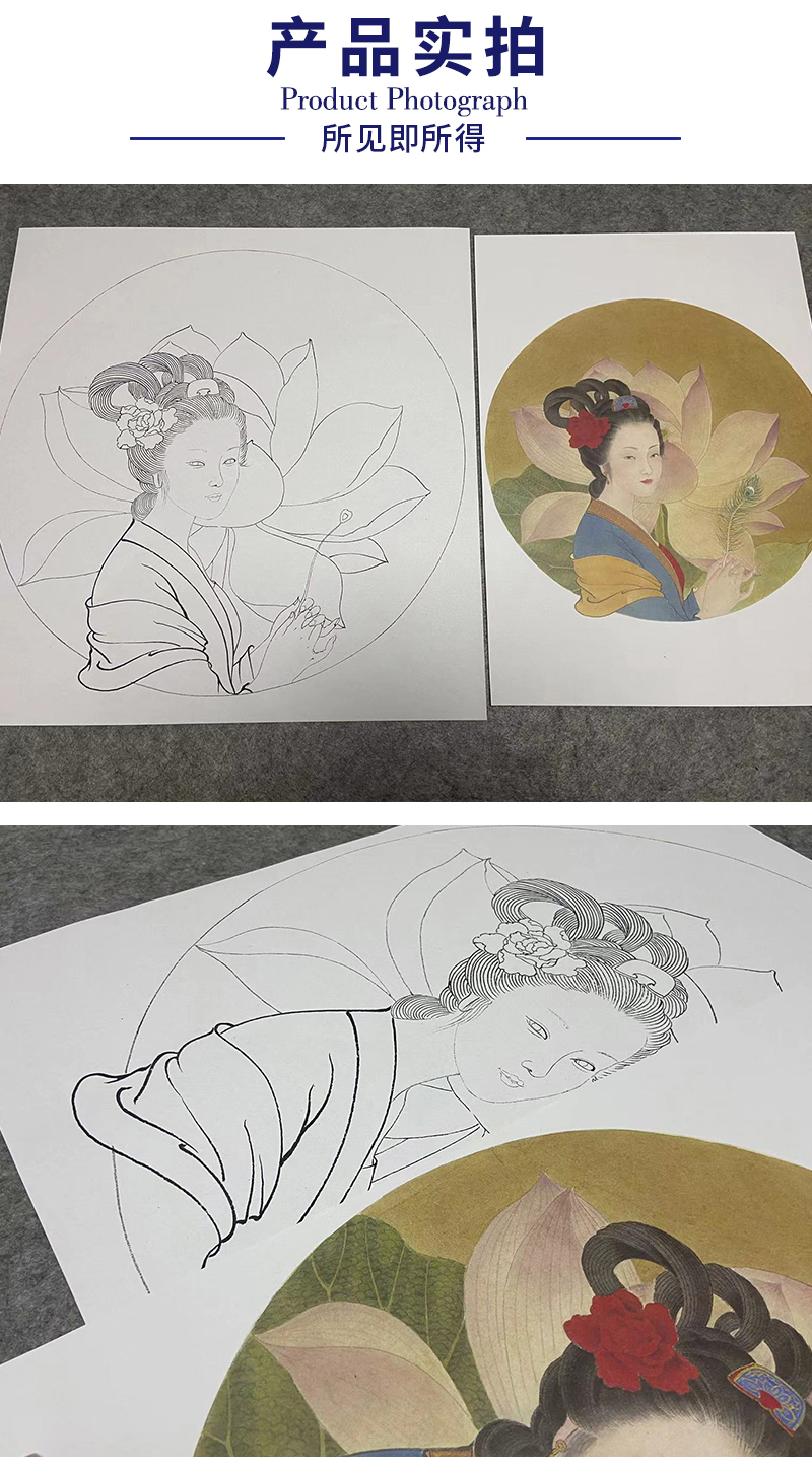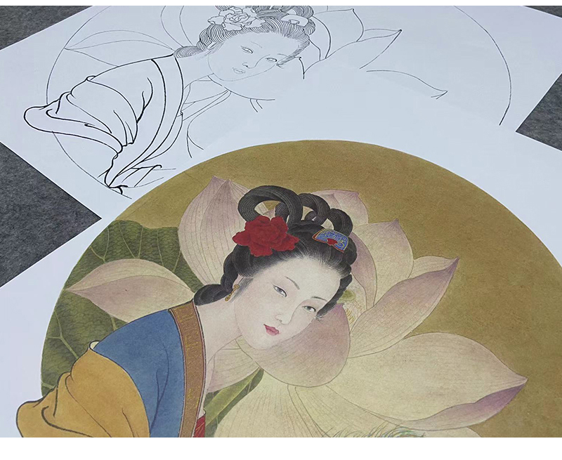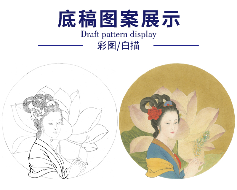 王后波工笔画白描底稿《荷花娇欲语》临摹勾线高清打印稿HB01