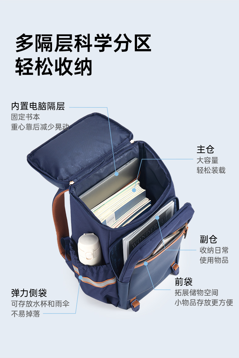 【大嘴书包3.0】卡拉羊初高中生6维减负防下坠大嘴书包大容量双肩背包梦想家CX5174/L
