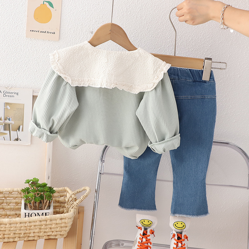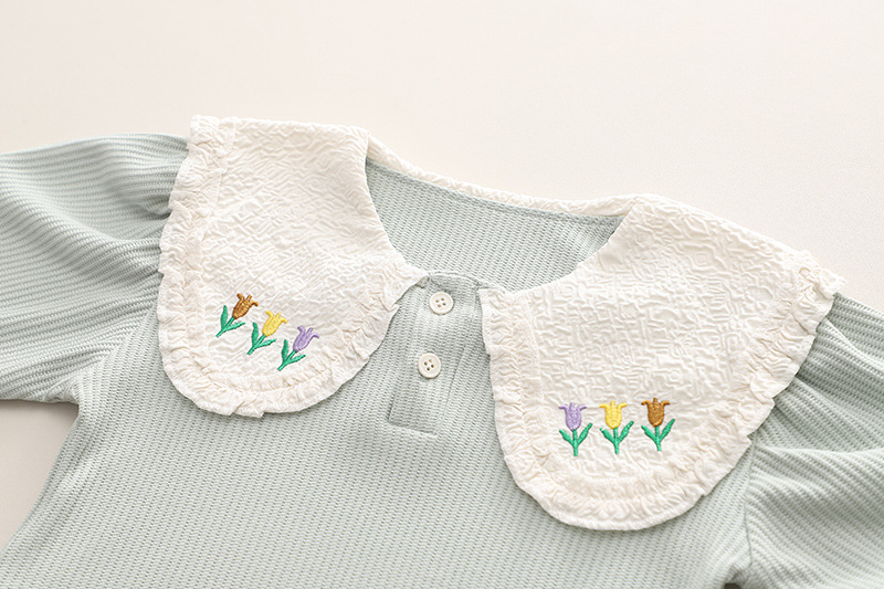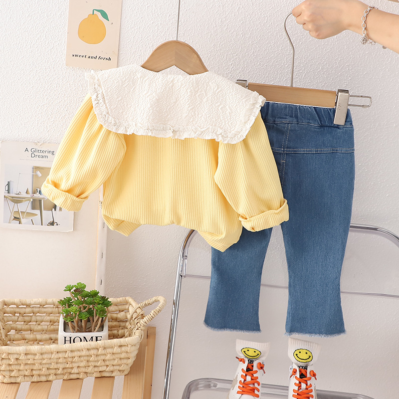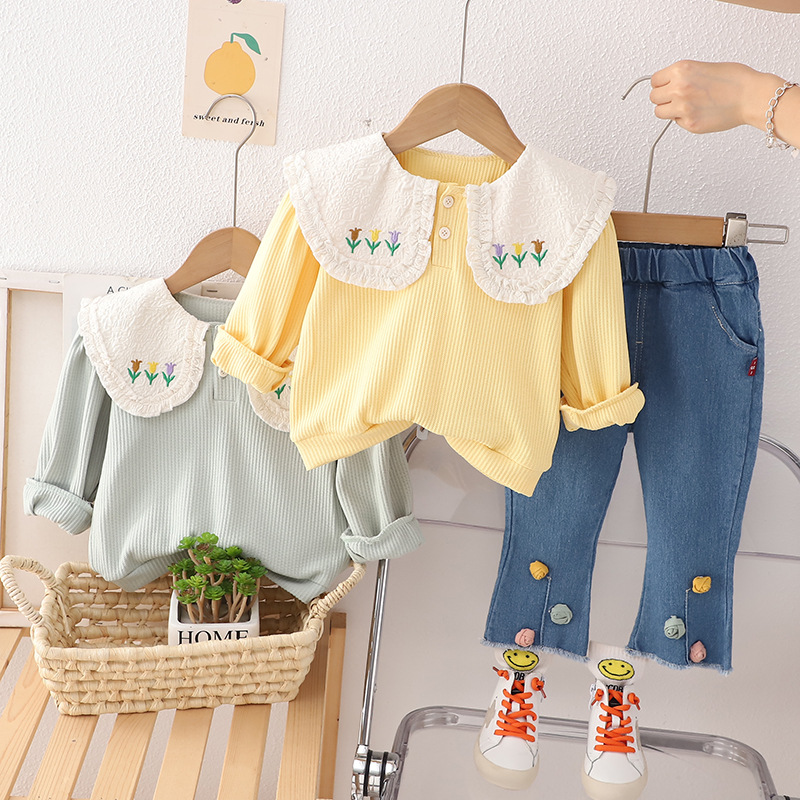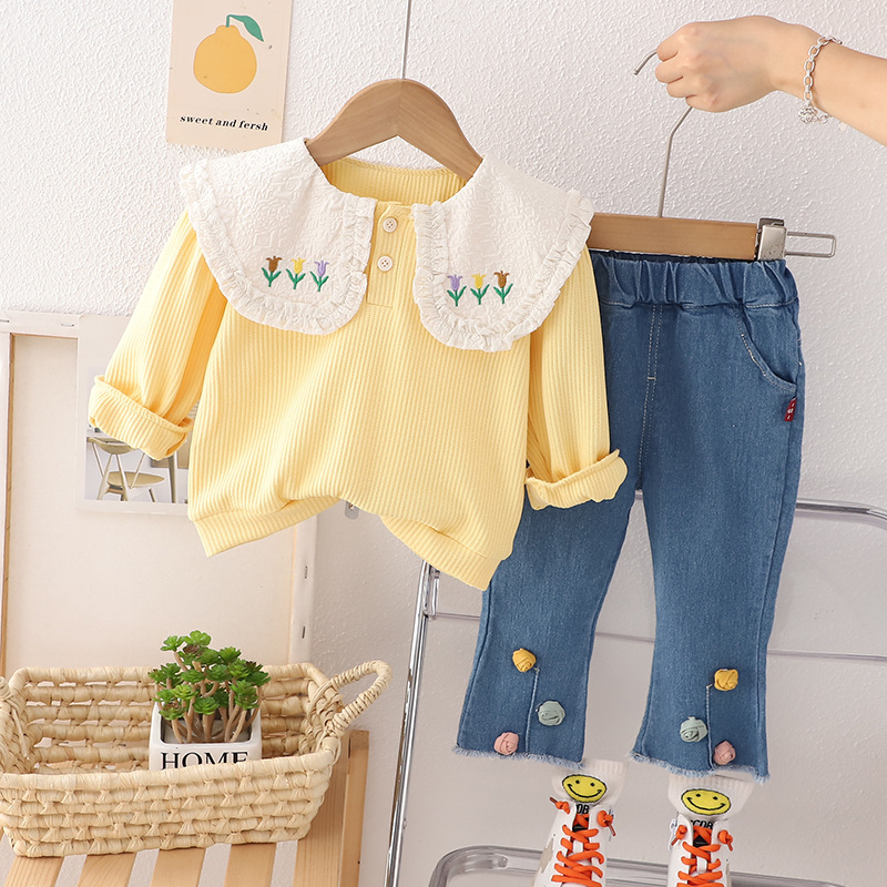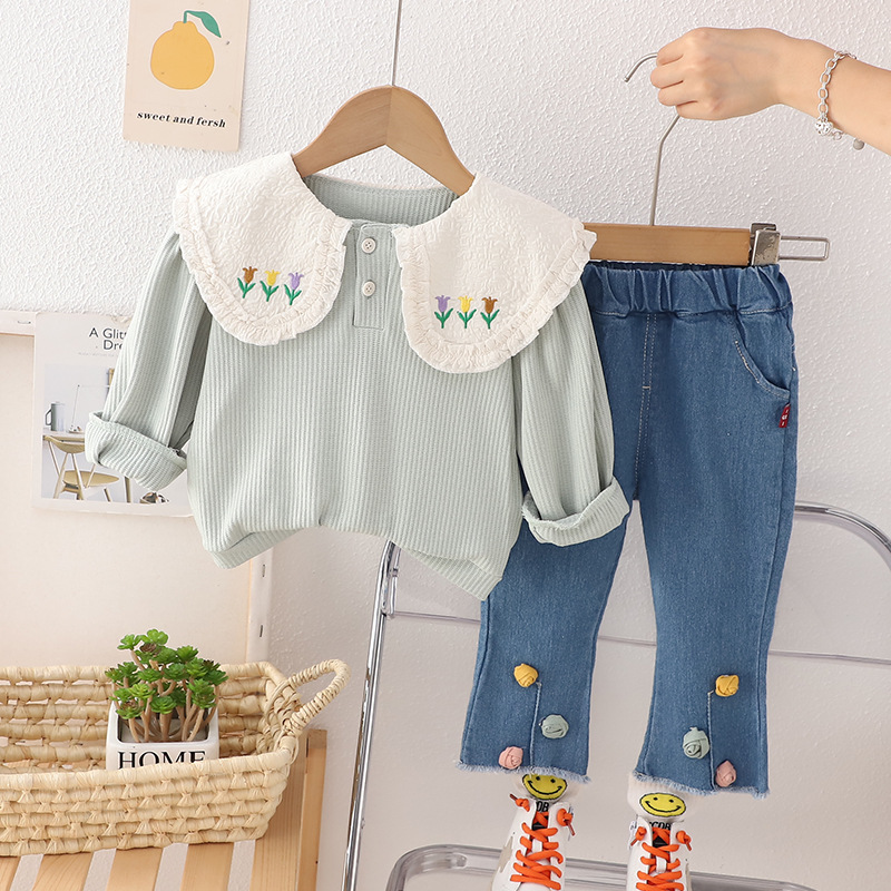【小公主必备套装】时尚小花领子设计,外出更有气质,女宝宝秋装套装,0-1-2-3岁适用,萌呆可爱潮范十足-QQ