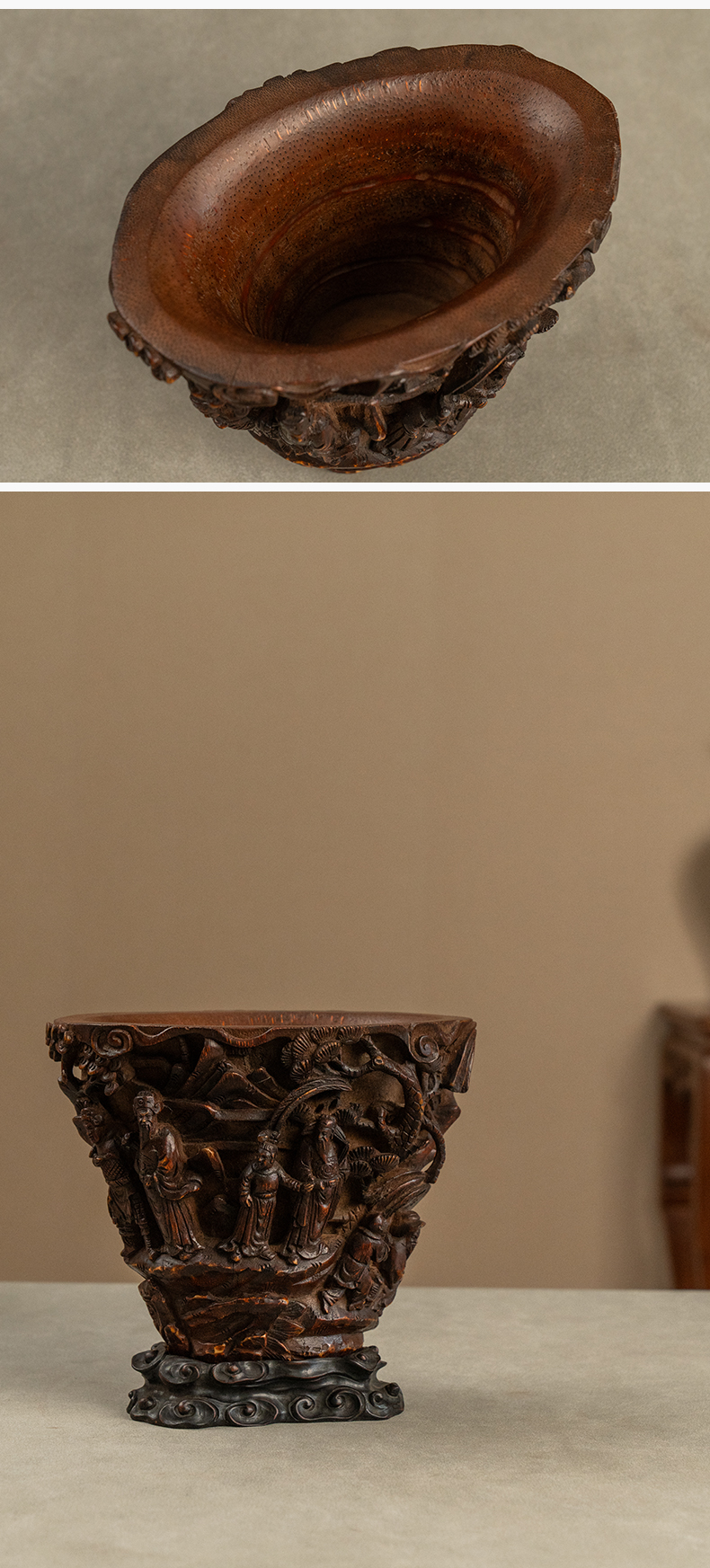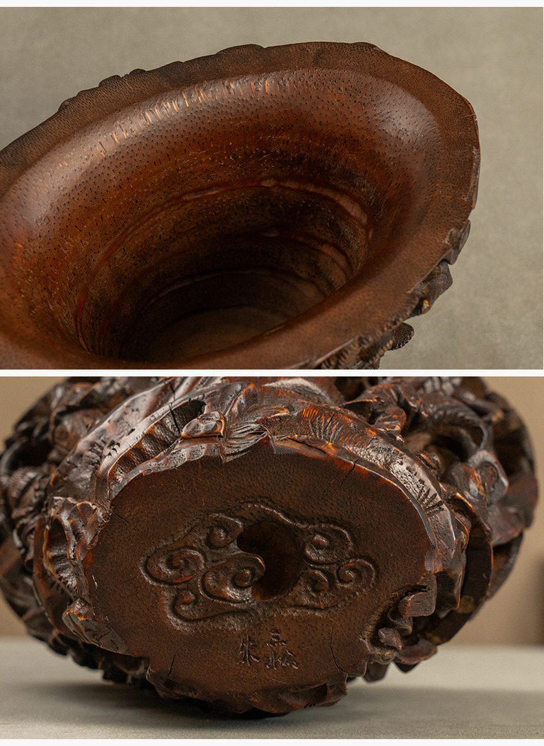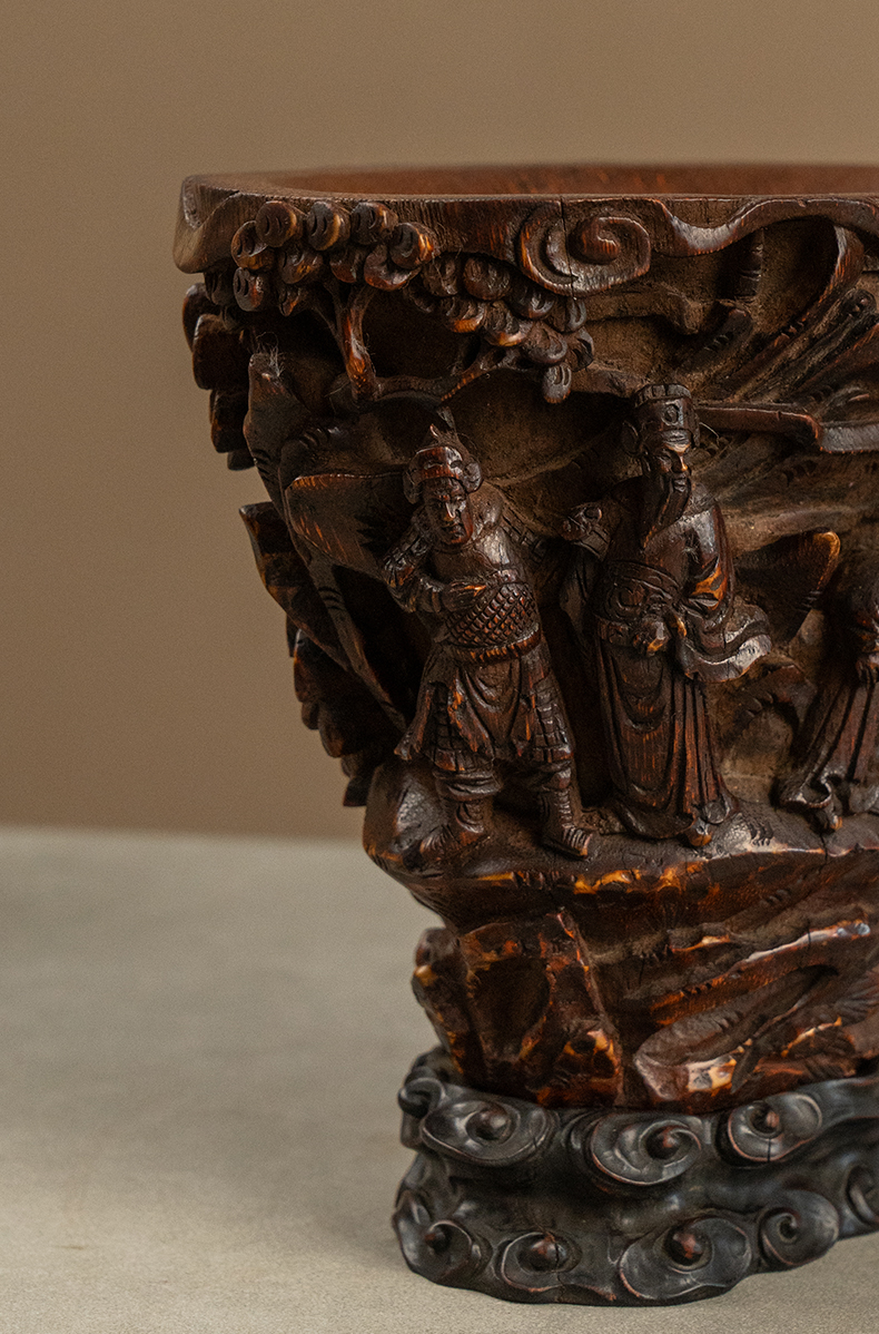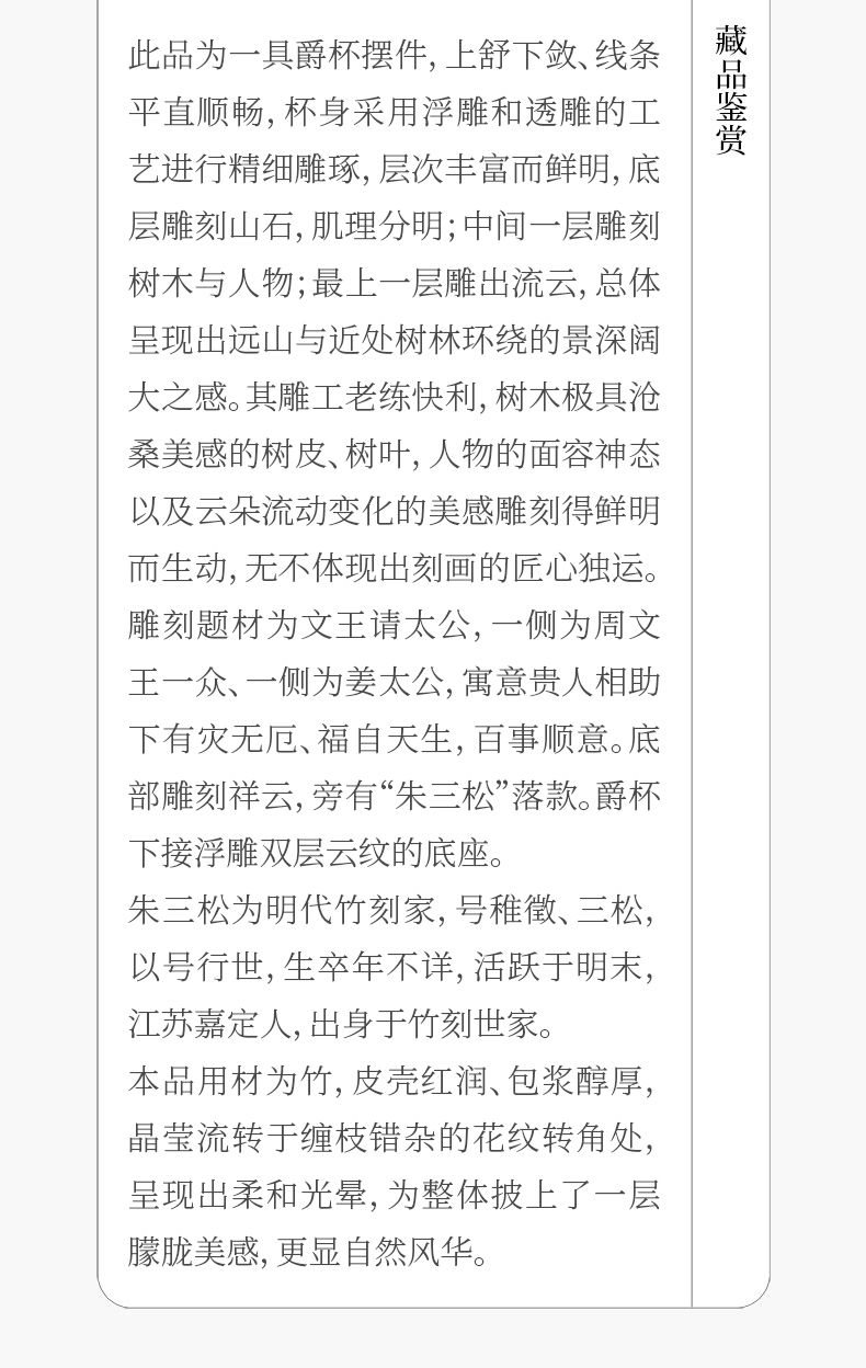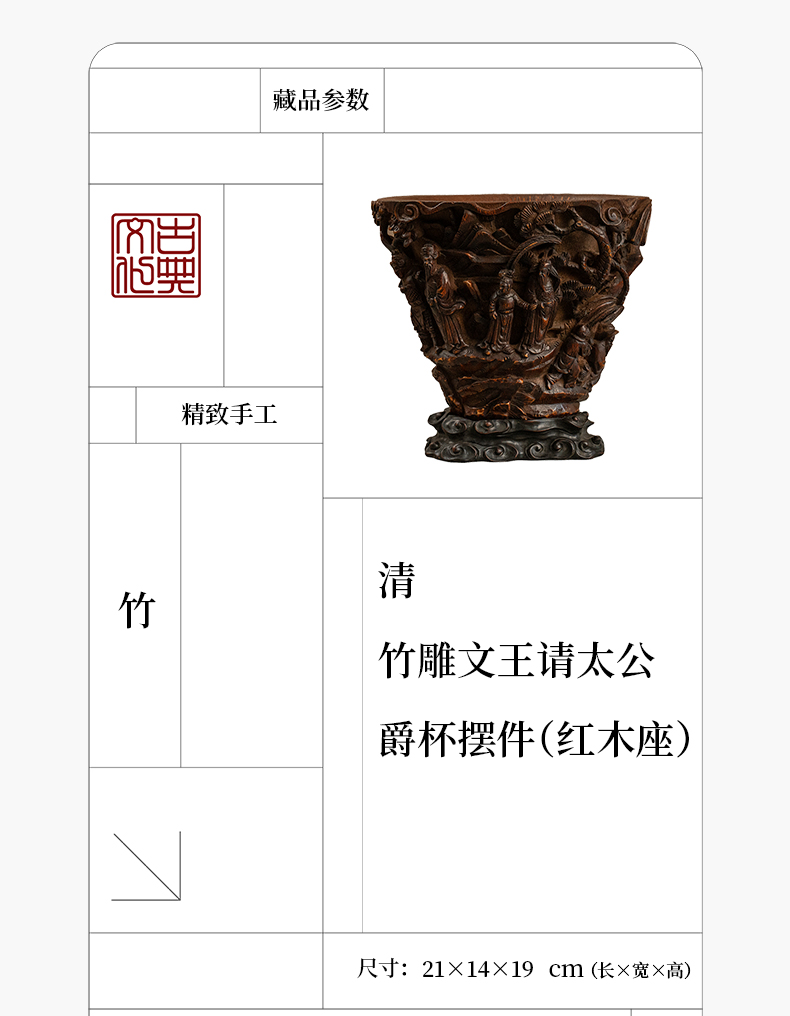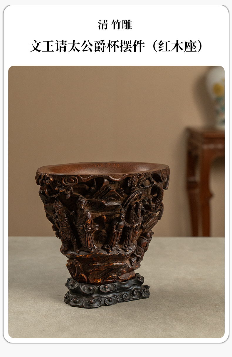 清 竹雕文王请太公爵杯摆件(红木座)