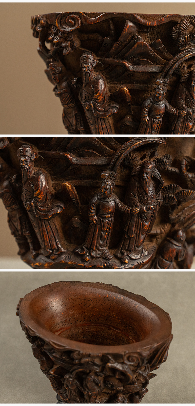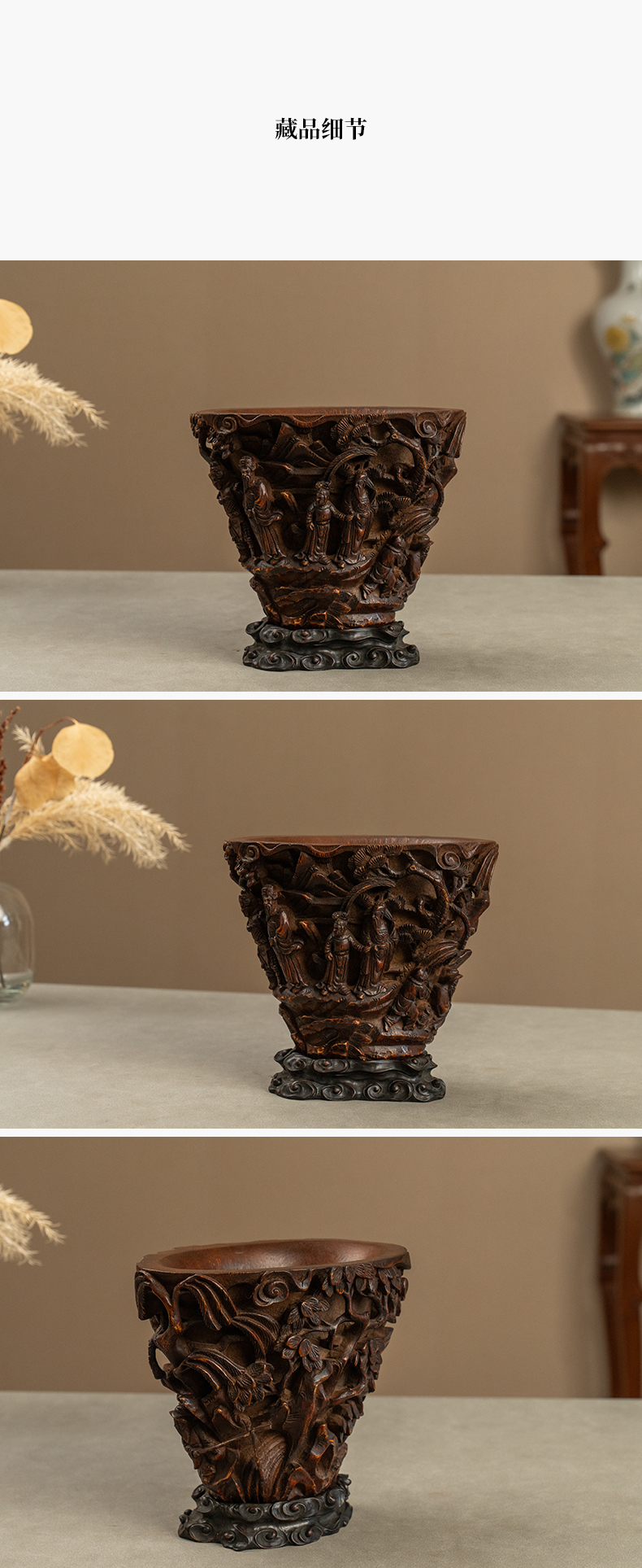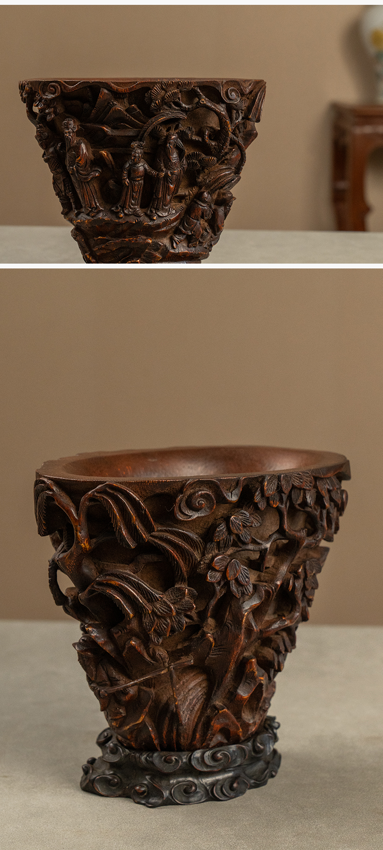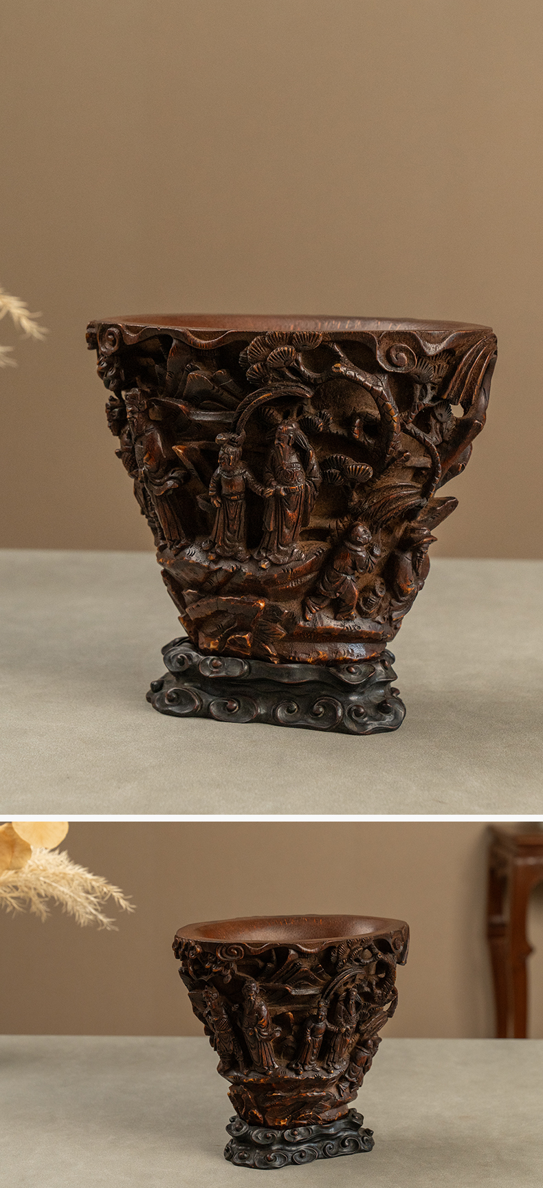 清 竹雕文王请太公爵杯摆件(红木座)