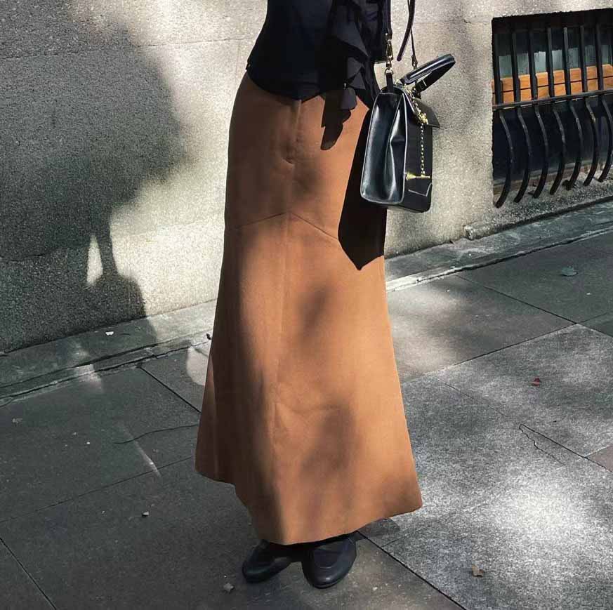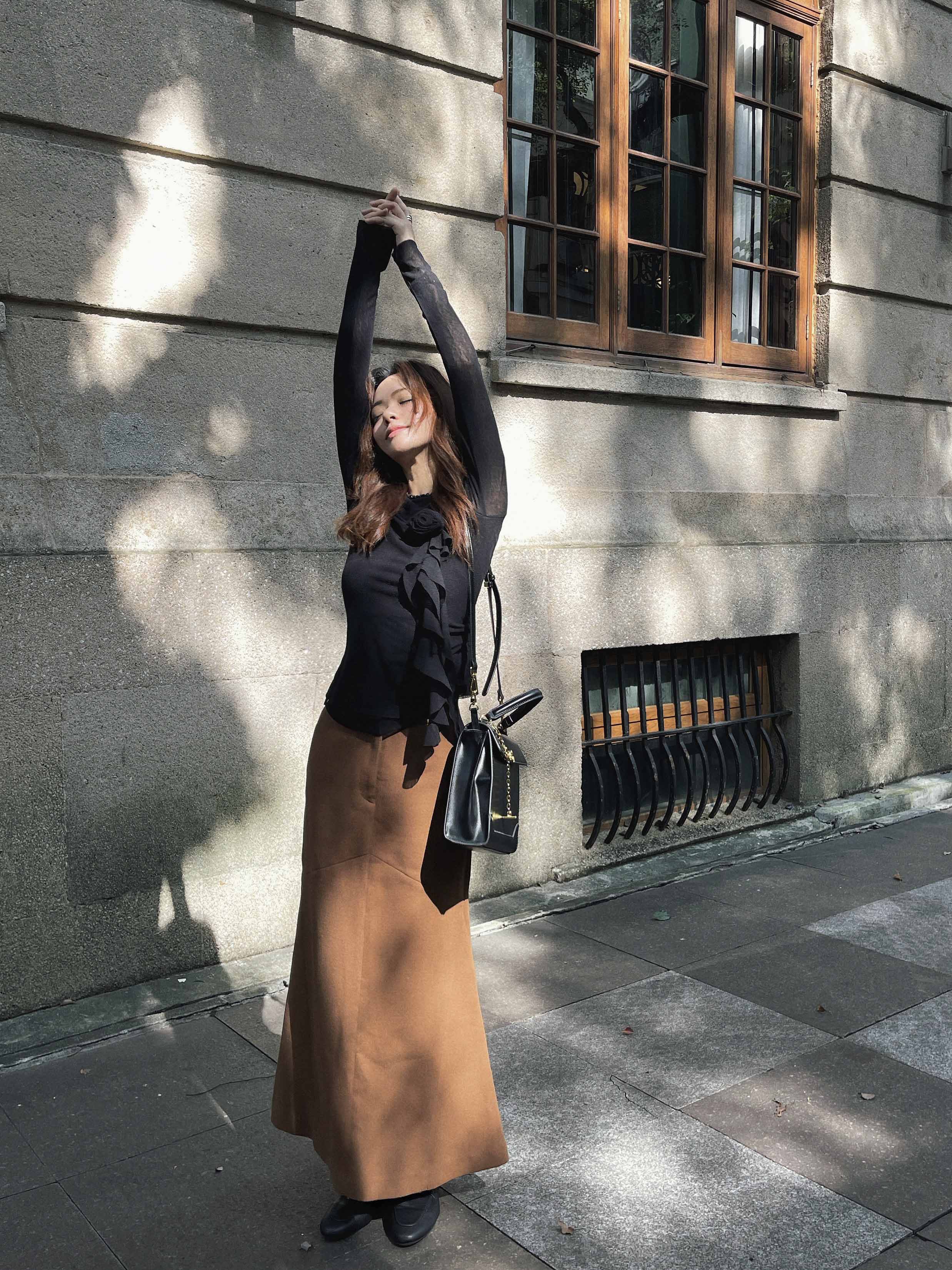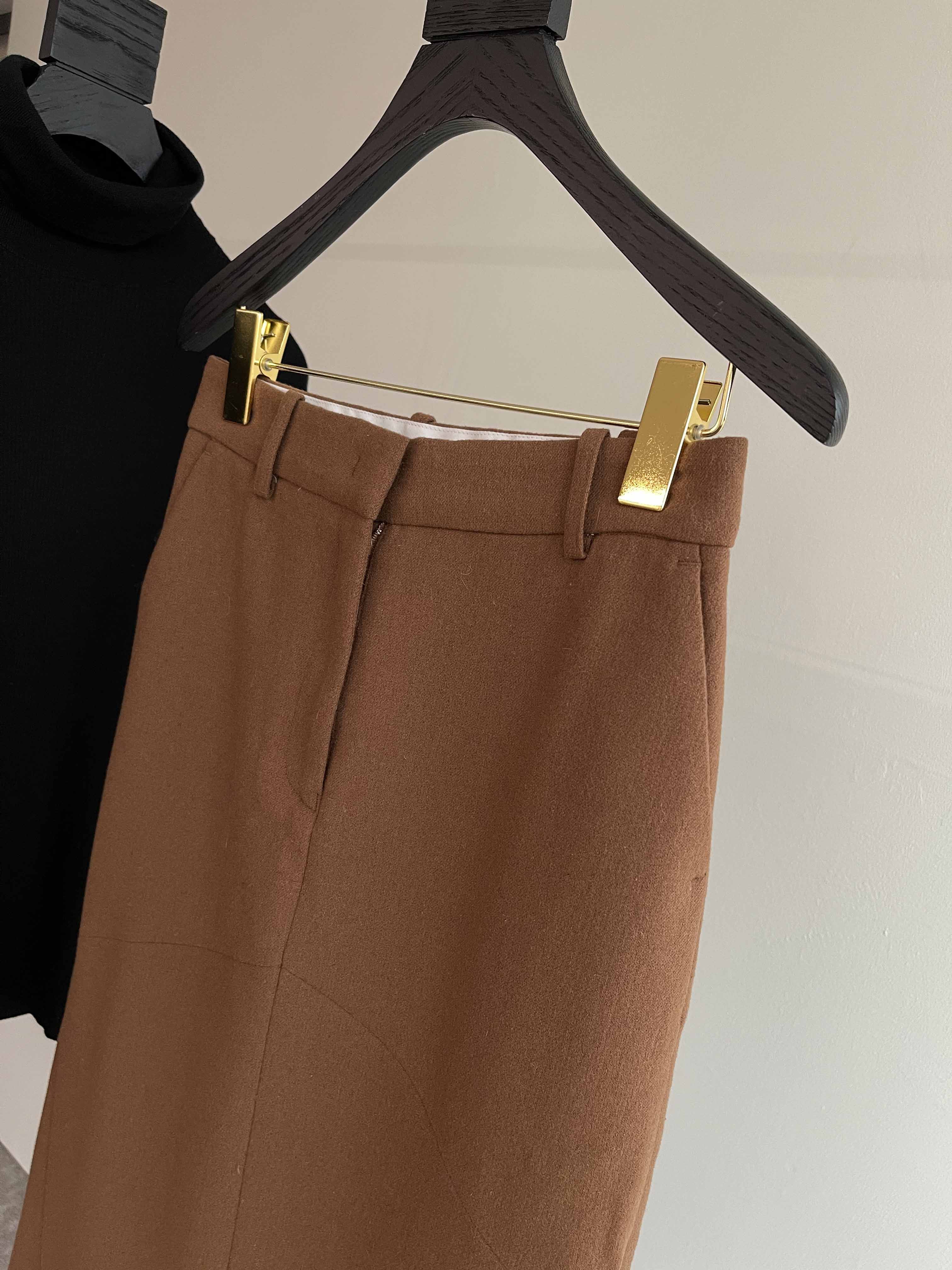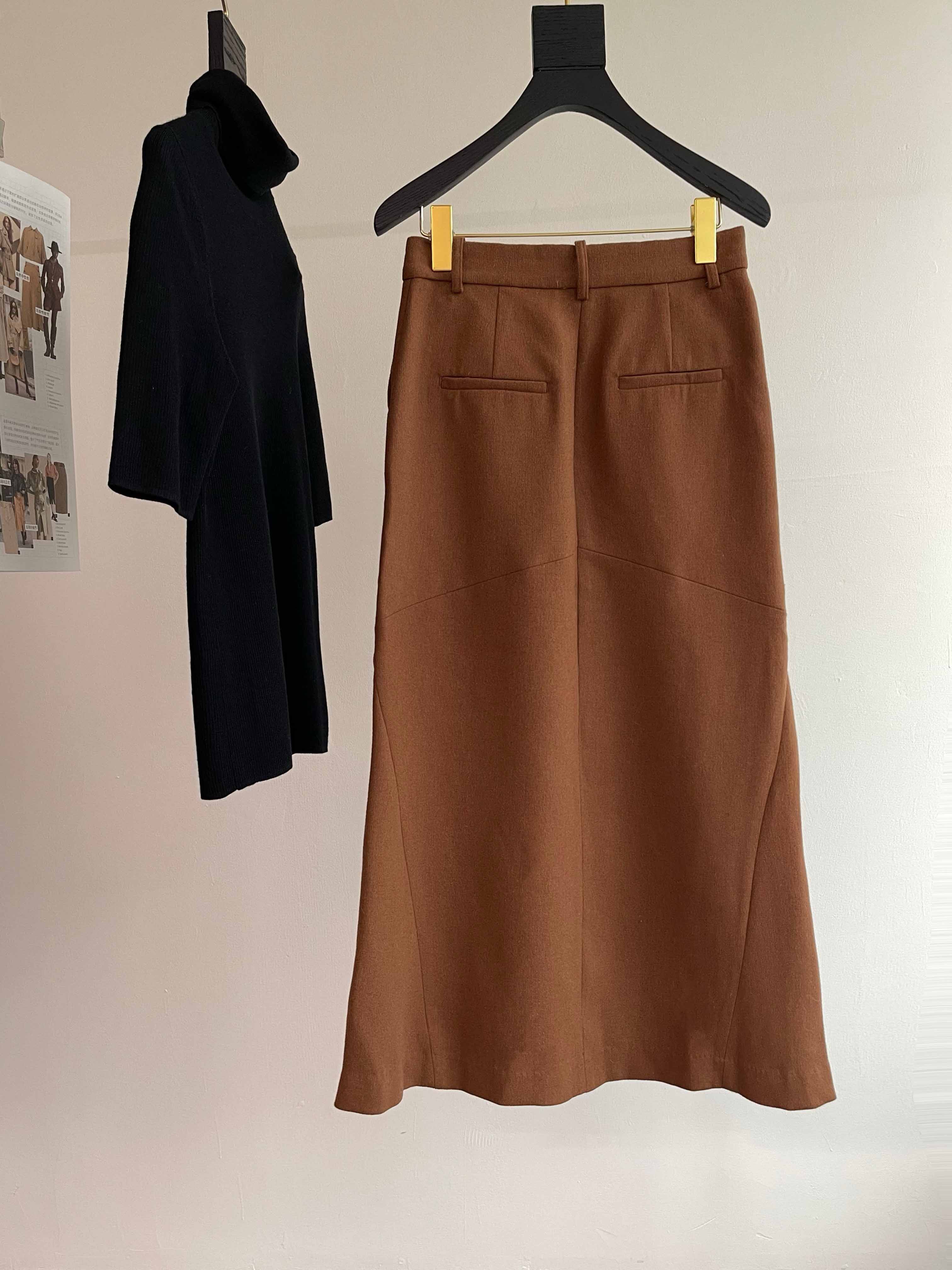 秋冬氛围感拉满~咖色轻鱼尾羊毛呢料半裙,真的超显气质