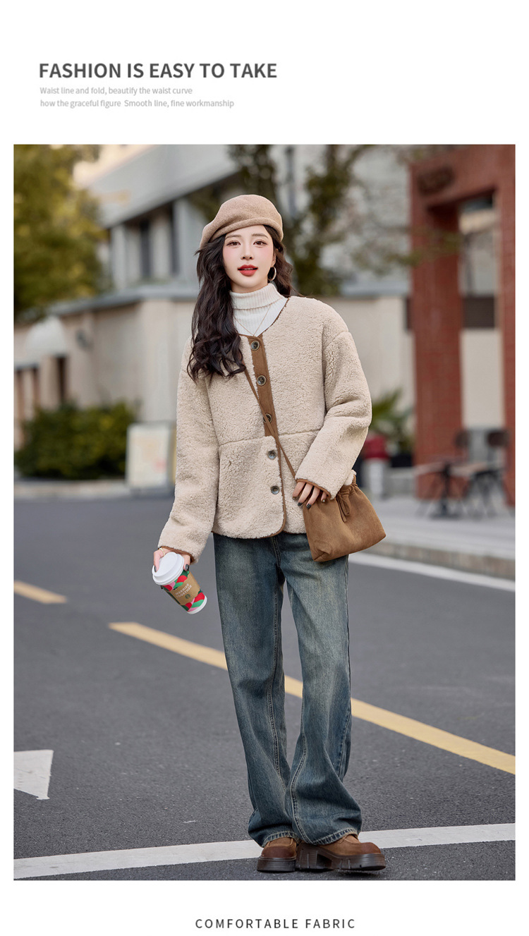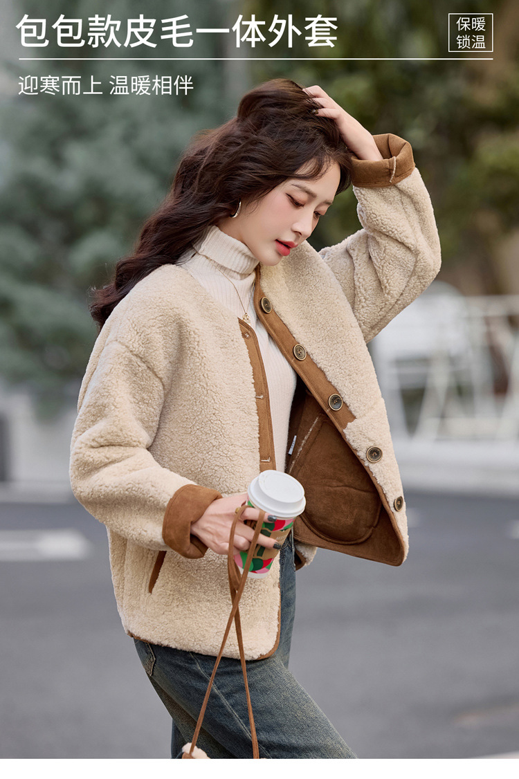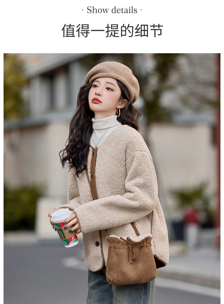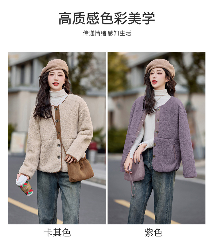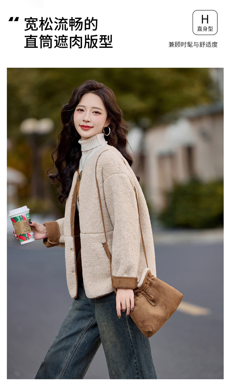 HR-YBX3551韩版加厚保暖羊羔毛外套女2024秋冬款气质百搭摇粒绒开衫毛毛上衣