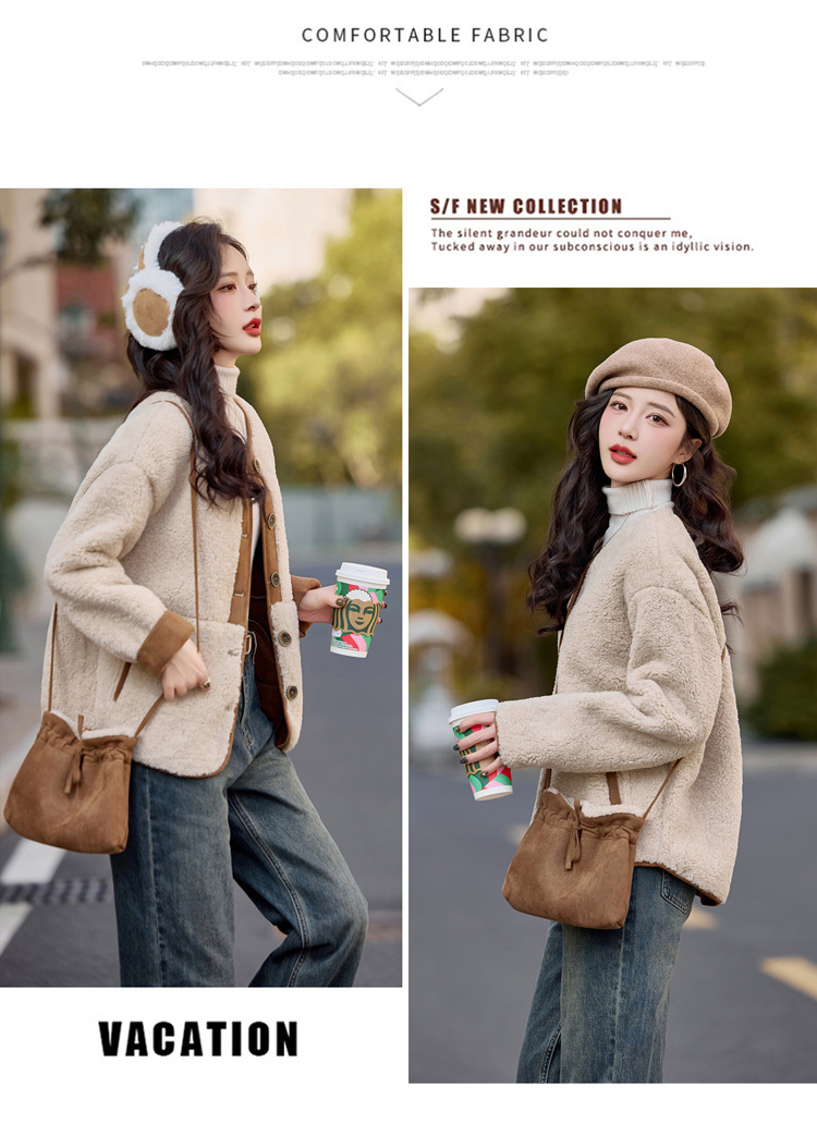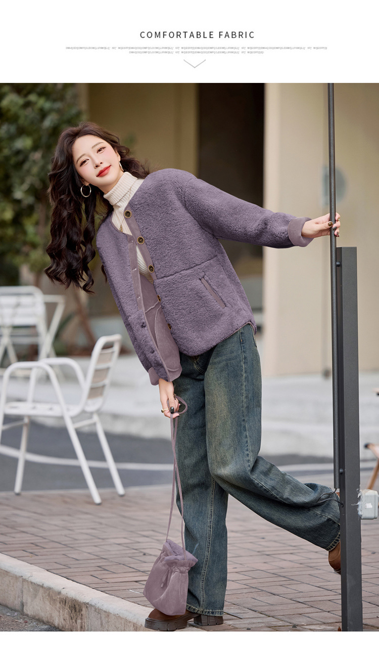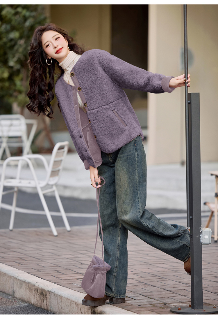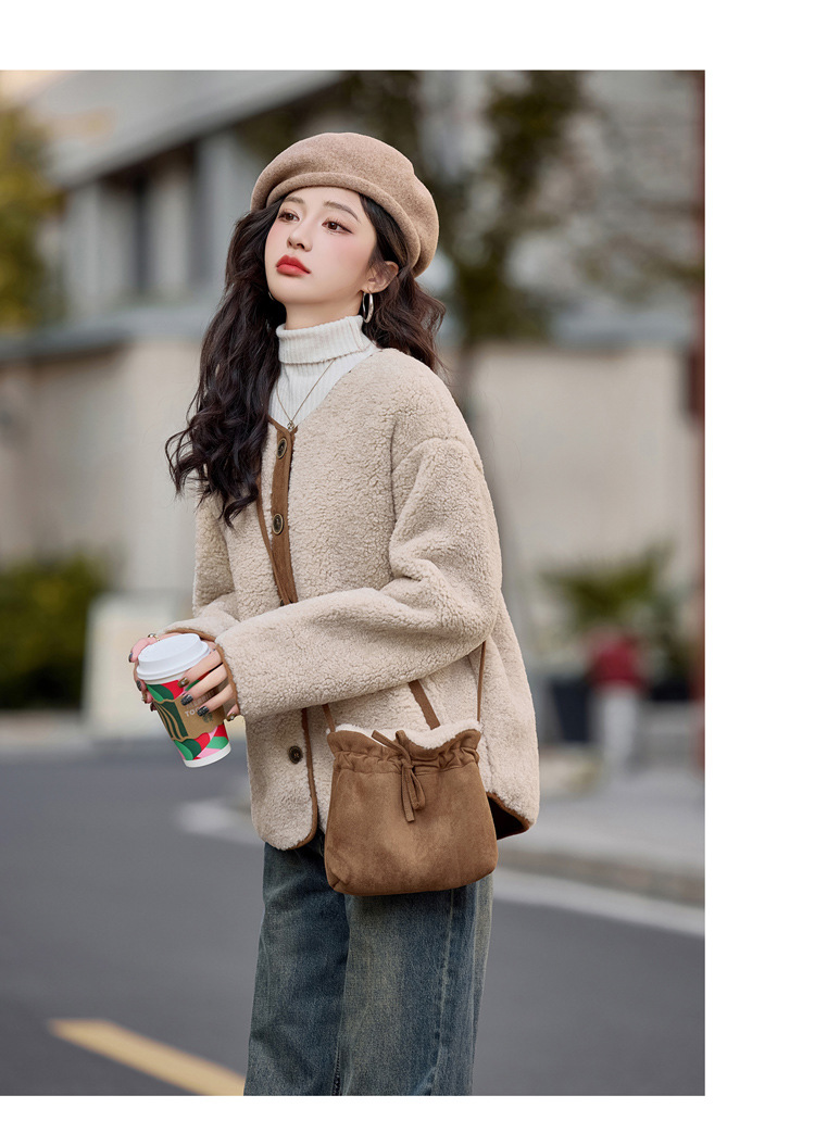 HR-YBX3551韩版加厚保暖羊羔毛外套女2024秋冬款气质百搭摇粒绒开衫毛毛上衣