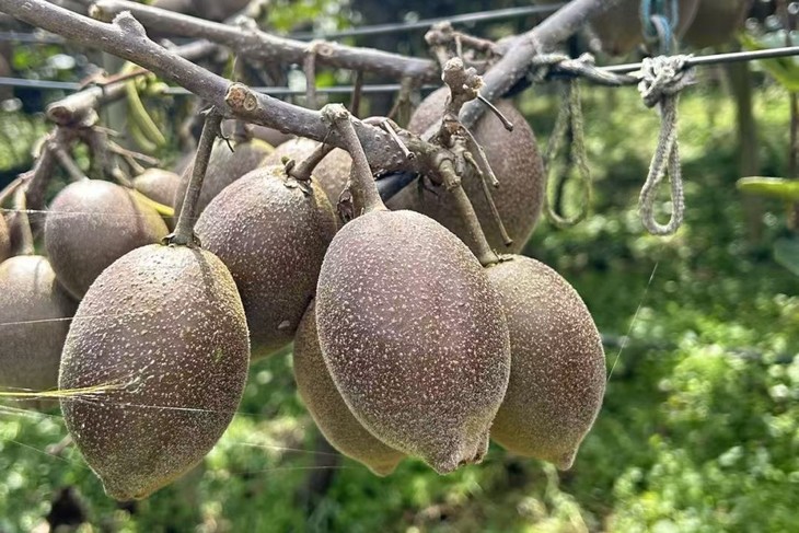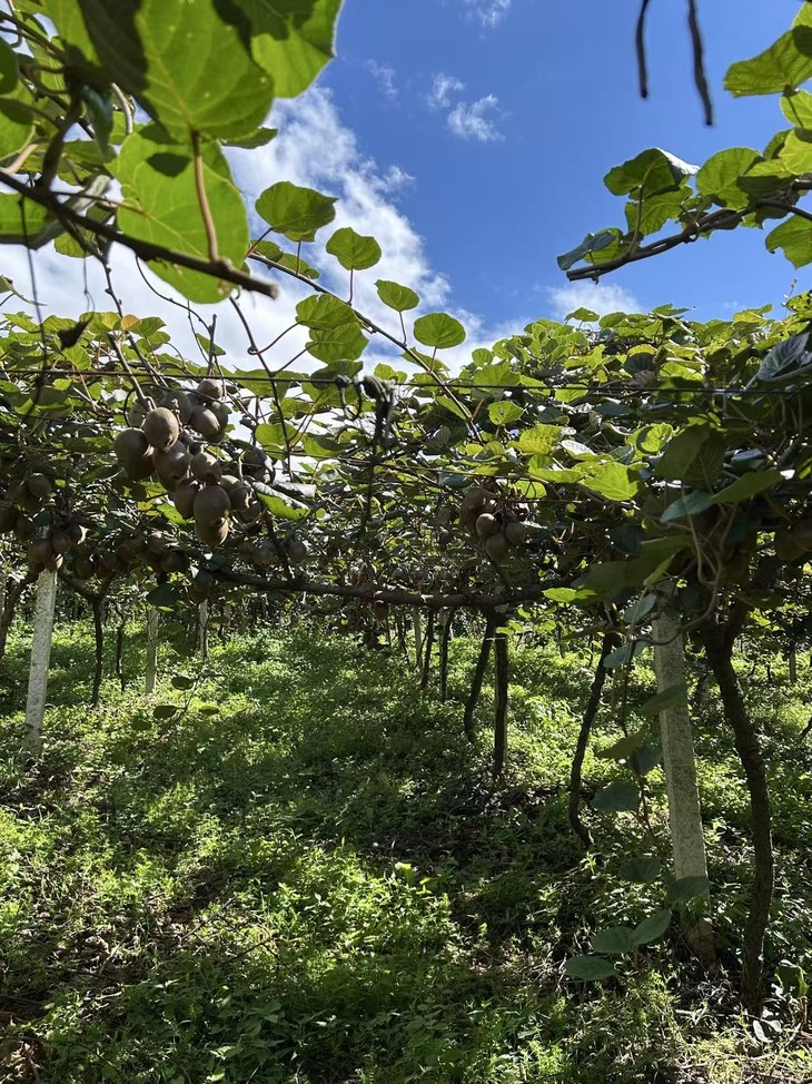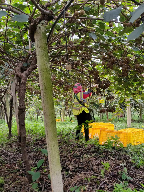 果园周边生长着成片10米以上的高大树群,犹如天然屏障,为藤蔓上的果实遮风挡雨,让每一颗猕猴桃都在自然呵护中安稳生长。