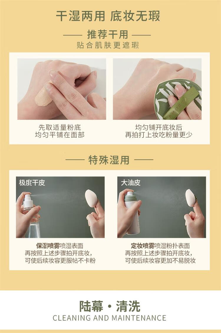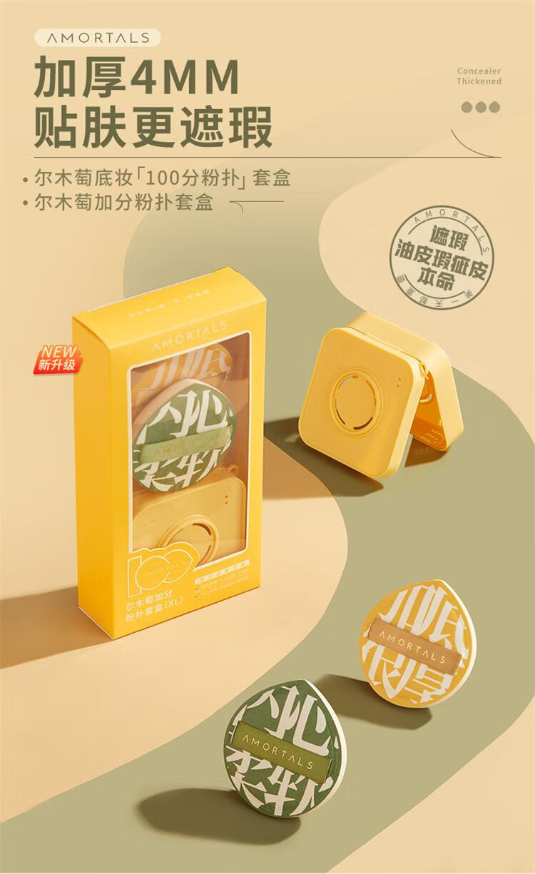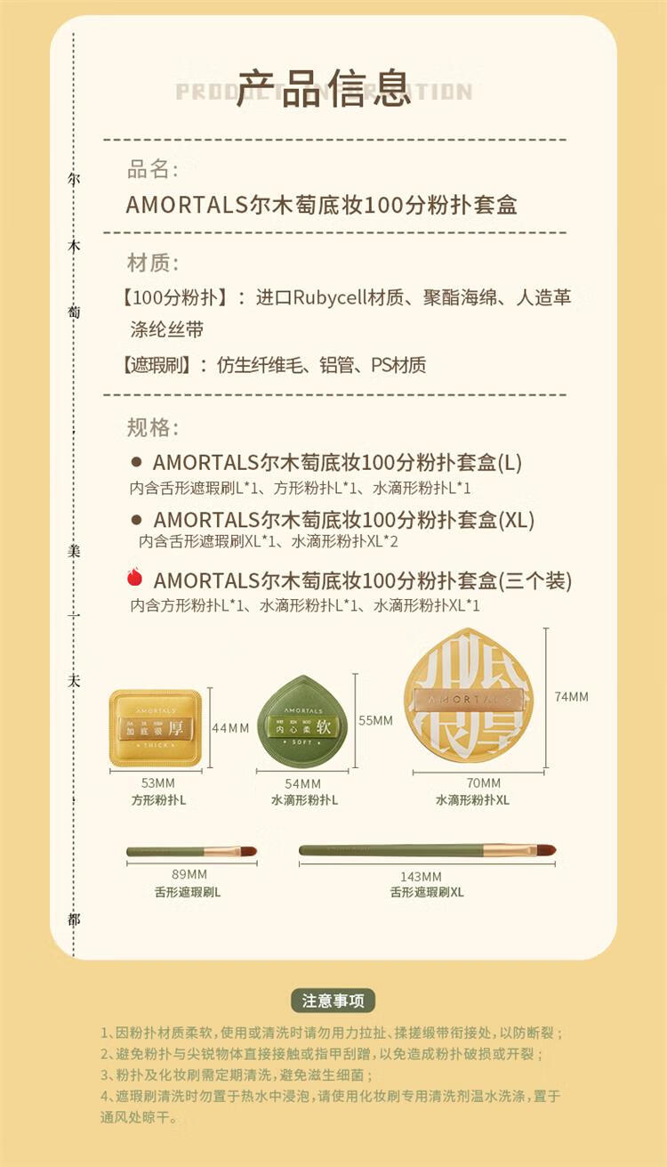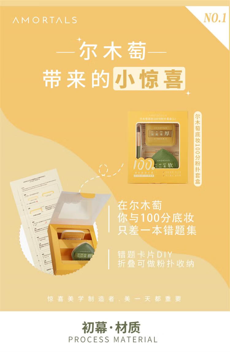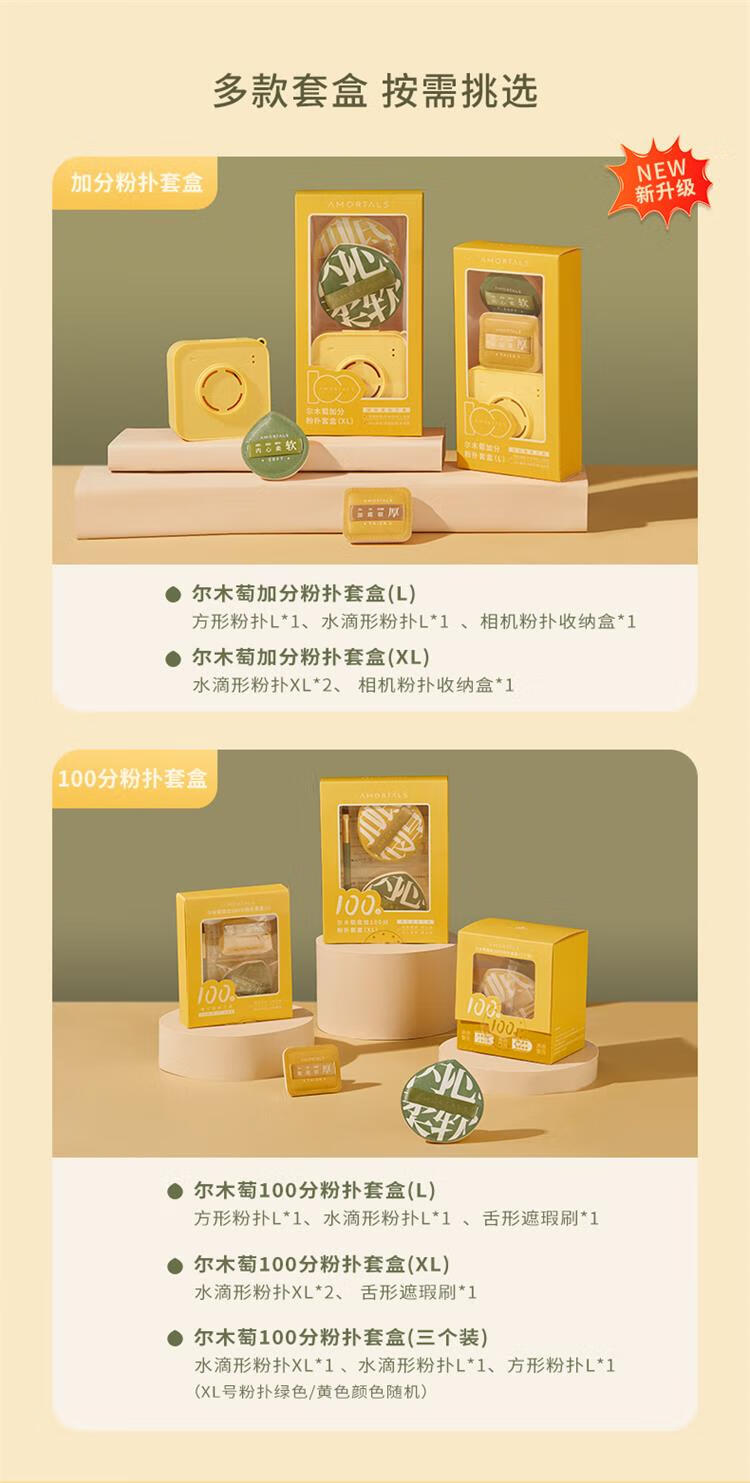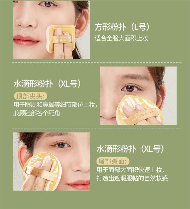尔木萄气垫粉扑美妆蛋 组合送相机粉扑收纳盒(舌形遮瑕刷*1+100分XL粉扑*2)不吃粉底液