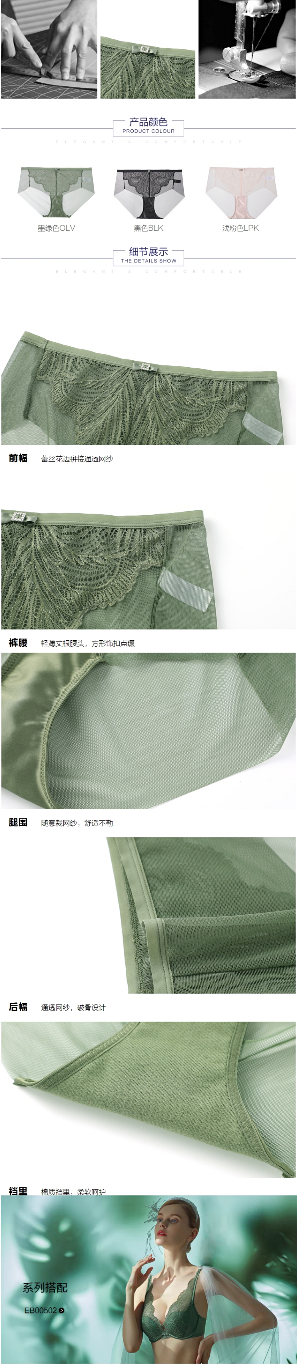安莉芳薄款性感通透纯棉底裆内裤女士网纱无痕中腰三角裤E200502