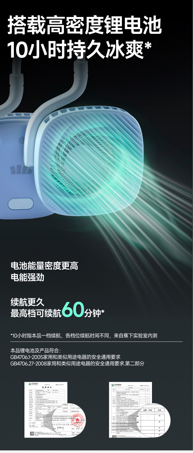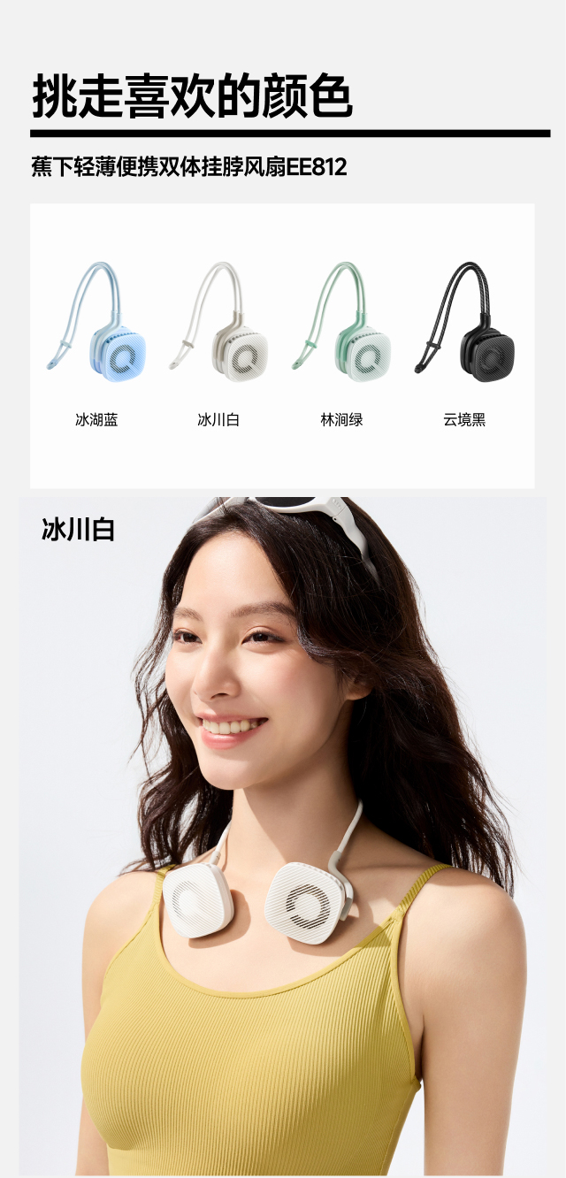 【25年新品】蕉下轻薄便携双体挂脖风扇EE812 超长续航迷你静音降温神器挂脖小空调
