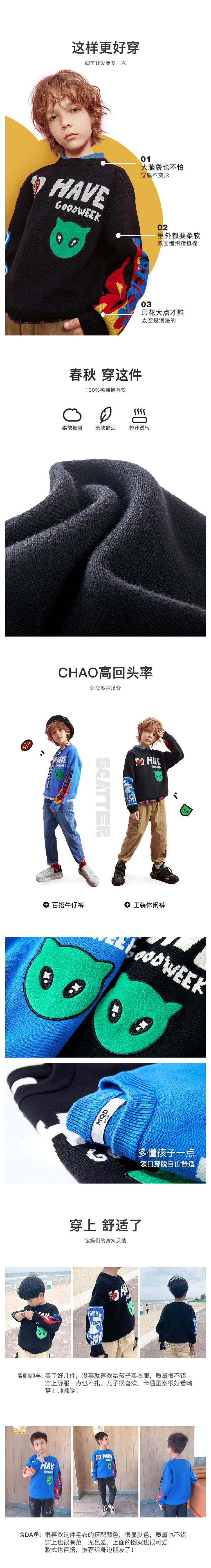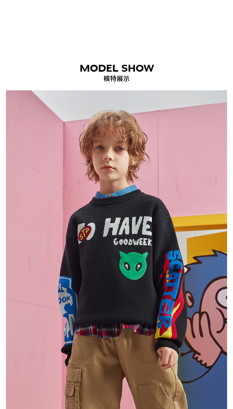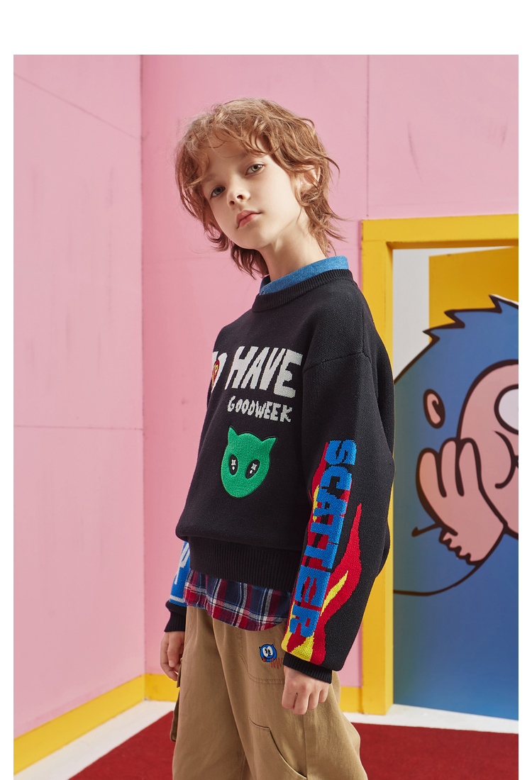 【激情12小时抢购】MQD-男童毛衣卡通纯棉虎年童装春秋新款儿童韩版百搭针织套头衫潮