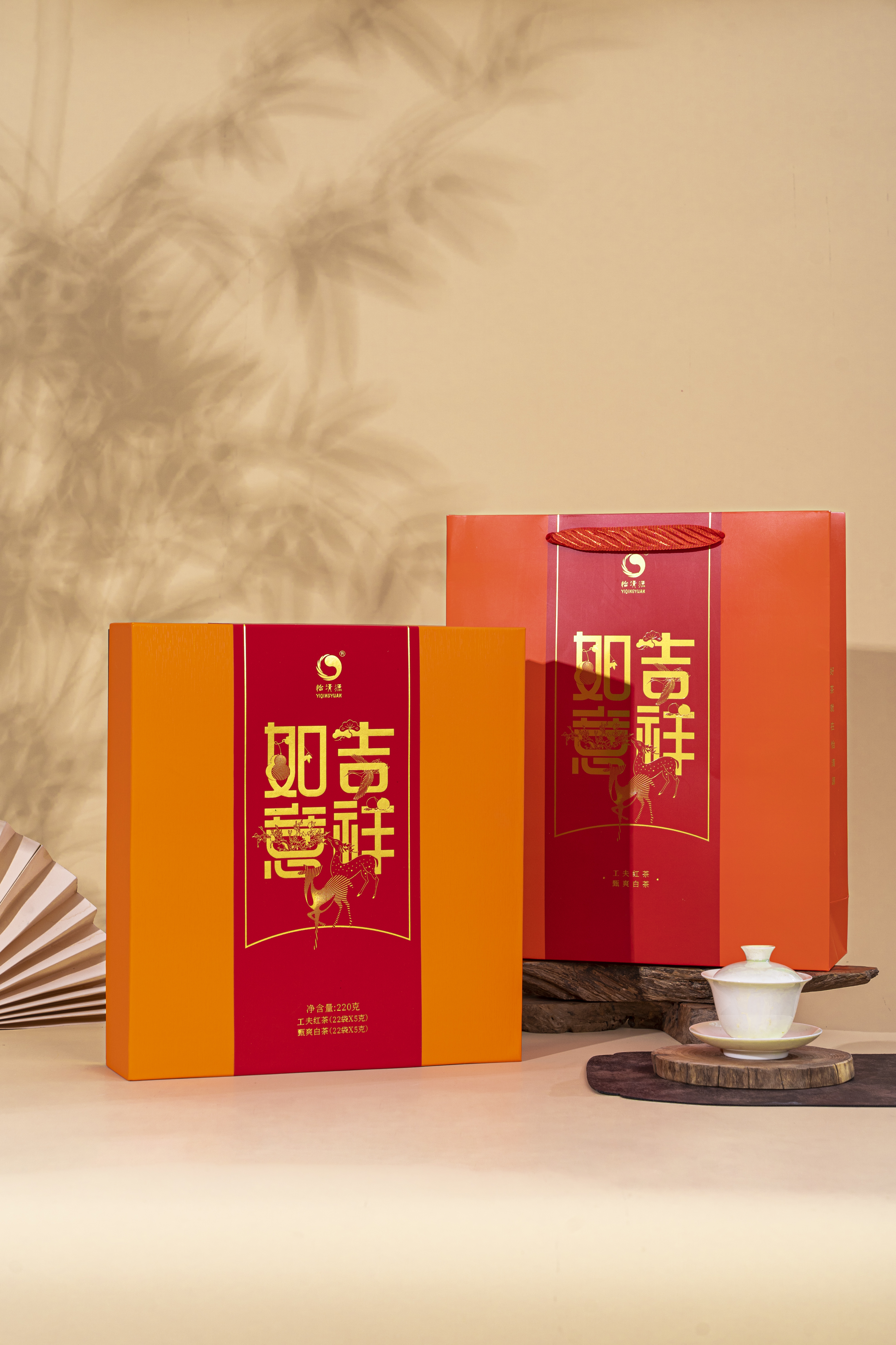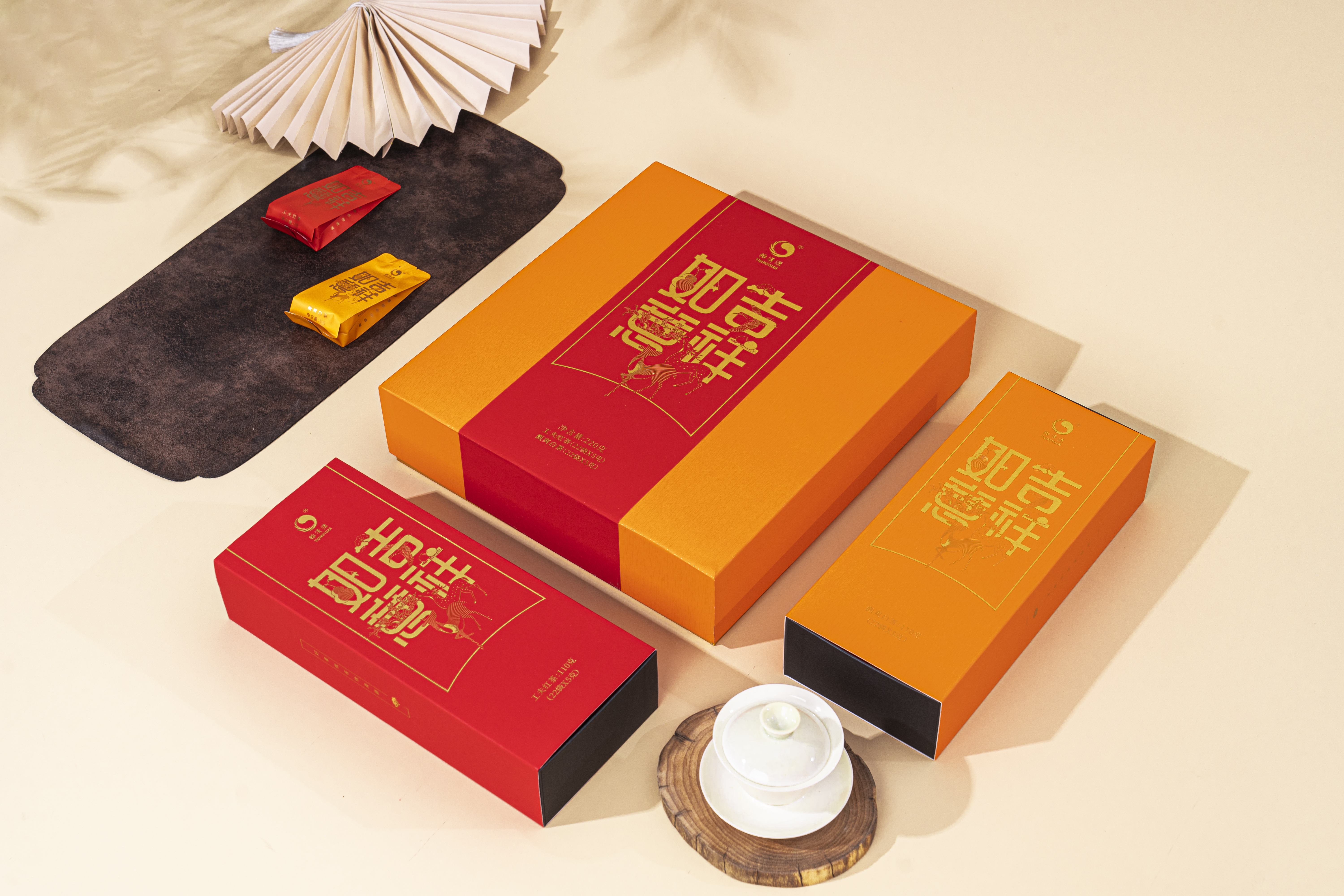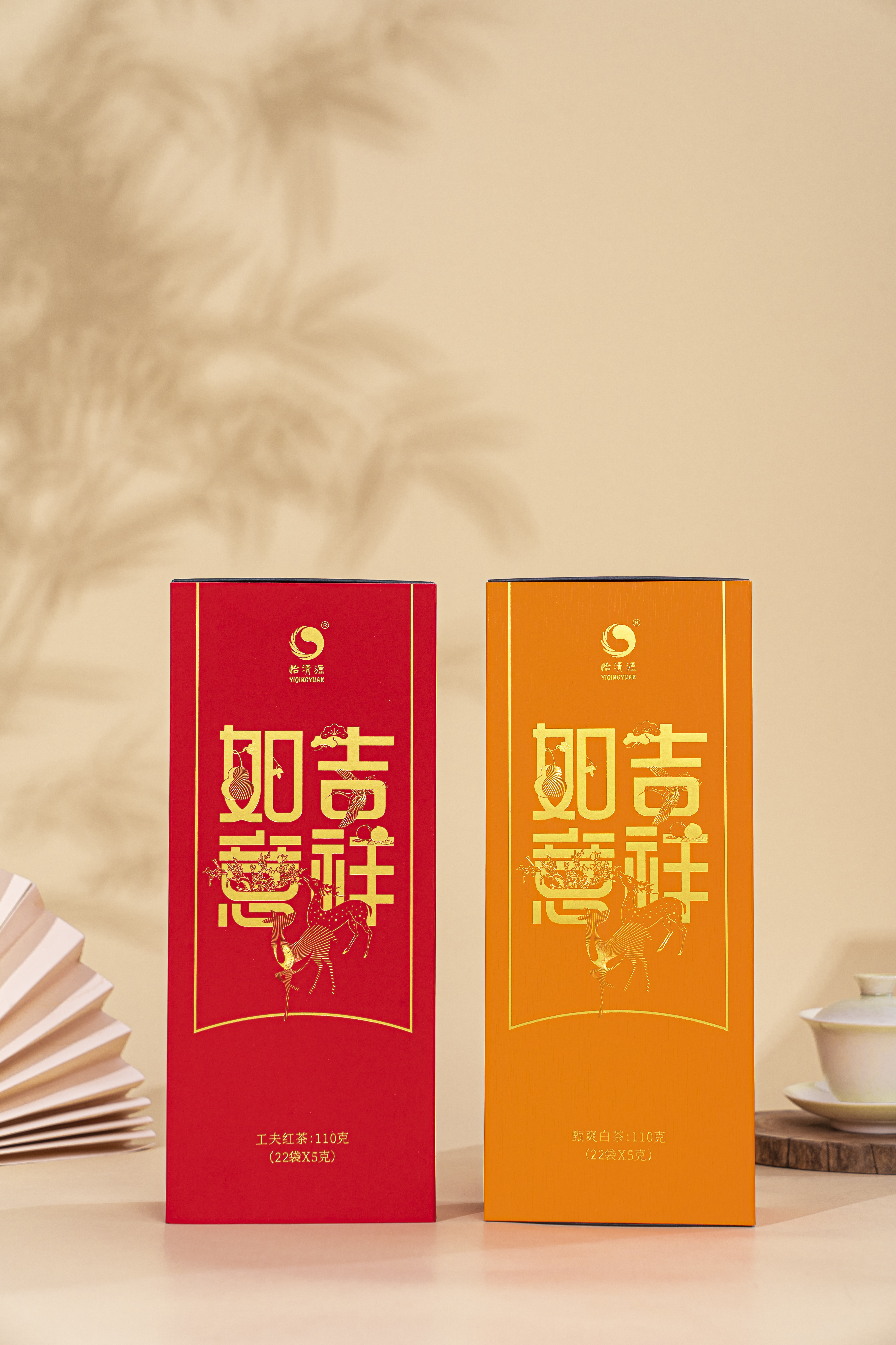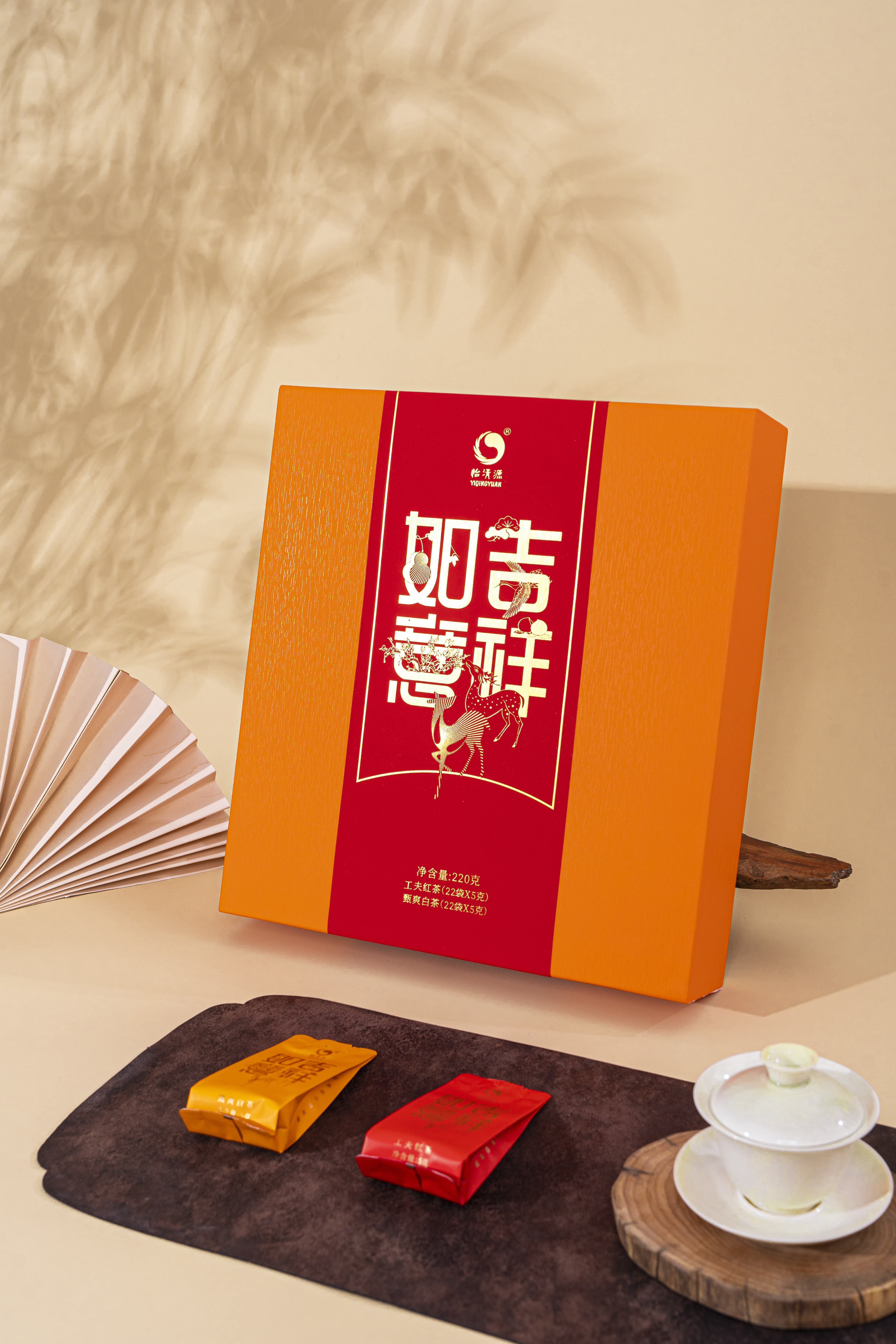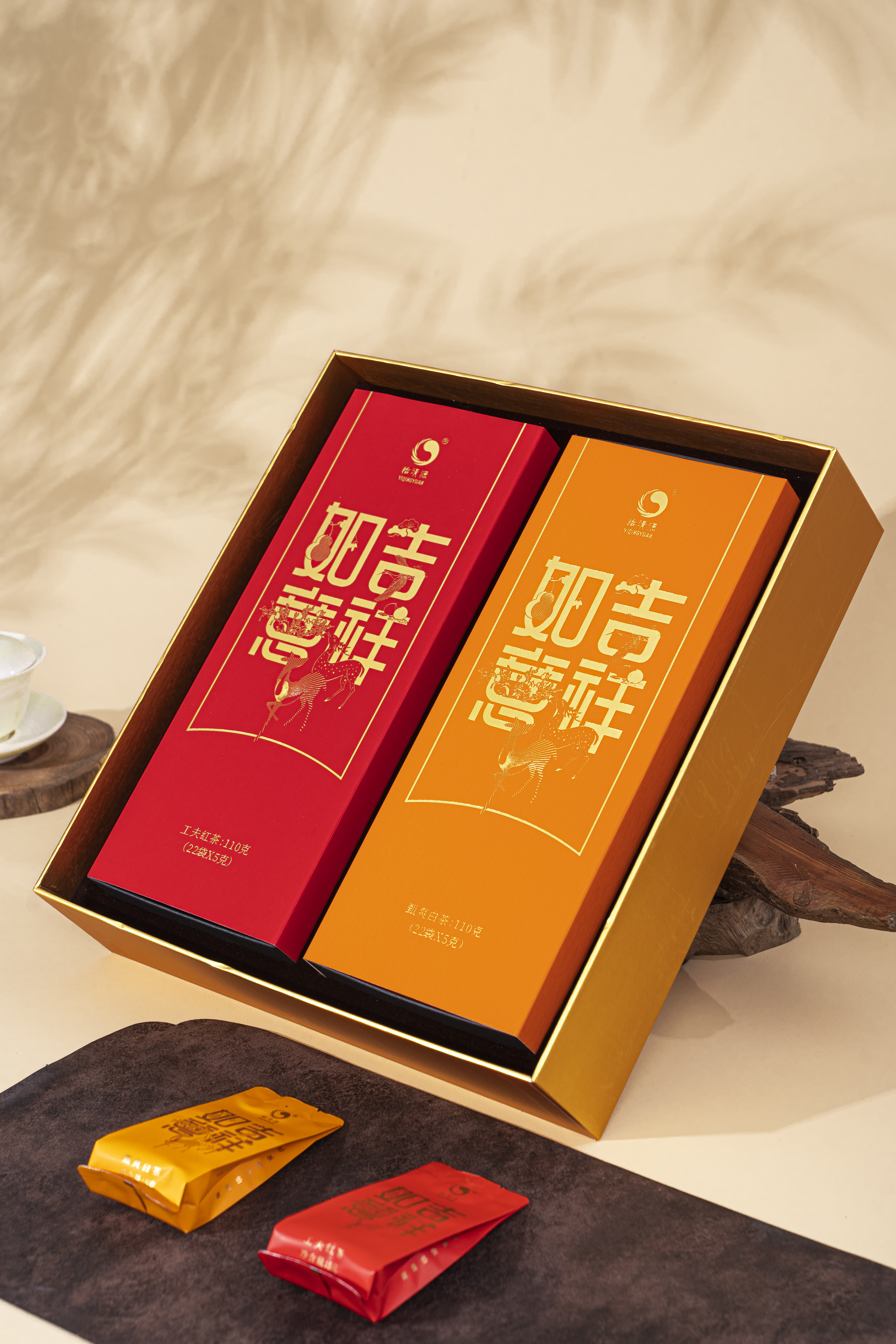 【吉祥如意】茗茶组合搭配有工夫红茶与甄爽白茶,红茶采用湖红工夫非遗工艺制作,芽叶细嫩、金毫显露;白茶精选黄金茶白牡丹原料,厚叶银心、毫香明显。