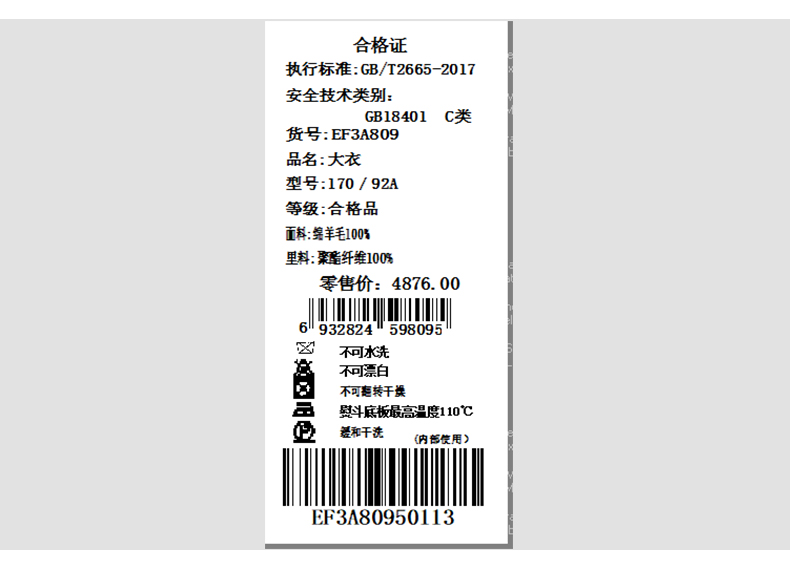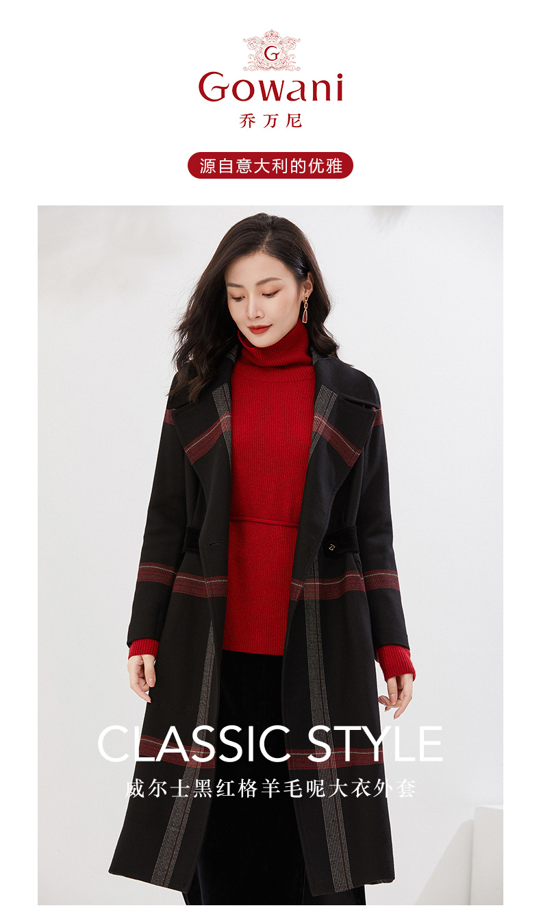 【100%绵羊毛】乔万尼新款羊毛呢大衣英伦风中长款EF3A809